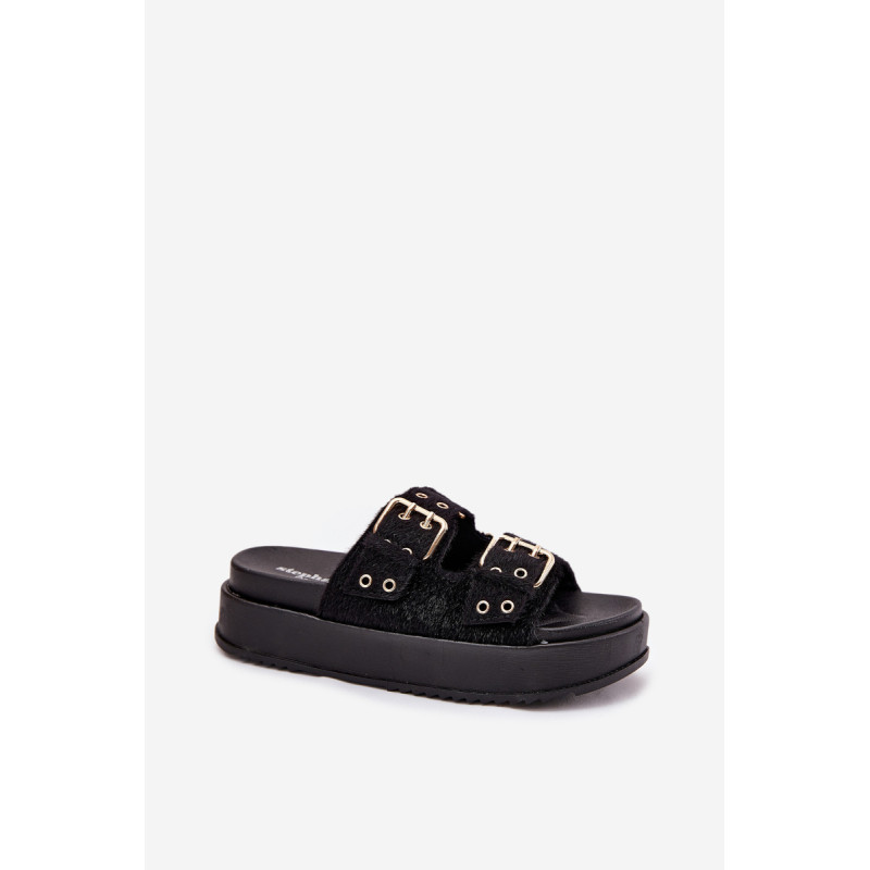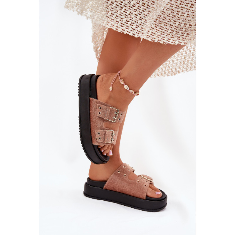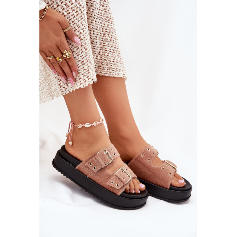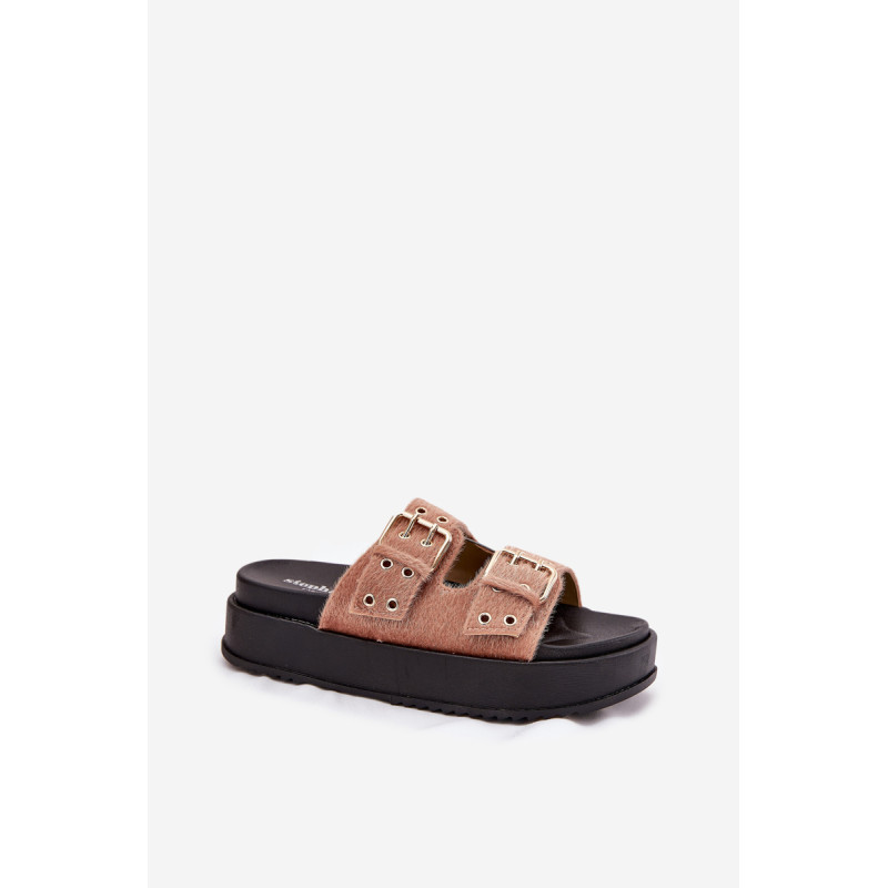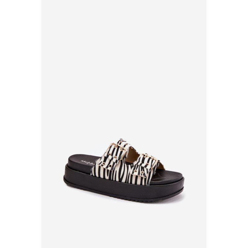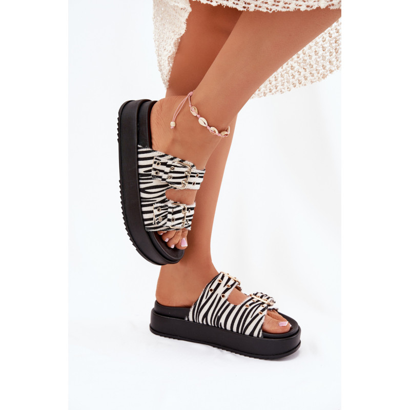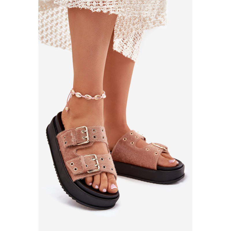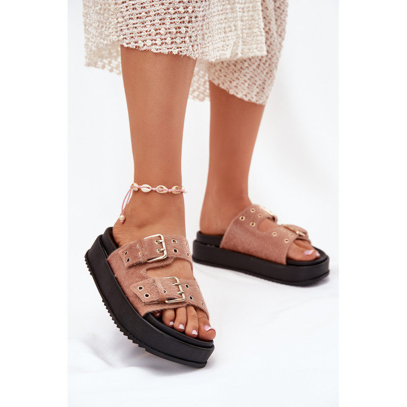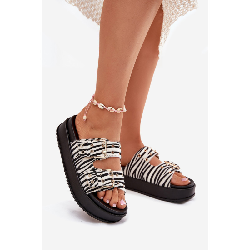Moteriški platforminiai šlepetės yra stilingas pasiūlymas šiltoms dienoms. Šis modelis išsiskiria reguliuojamomis juostelėmis su auksiniais sagtimis, užtikrinančiomis puikų prigludimą prie pėdos. Puikiai tinka vasaros įvaizdžiams, jie sujungia komfortą su elegantišku įvaizdžiu, suteikdami kiekvienam aprangai madingą charakterį. Renkantis dydį, vadovaukitės dydžių lentele.