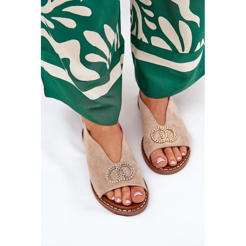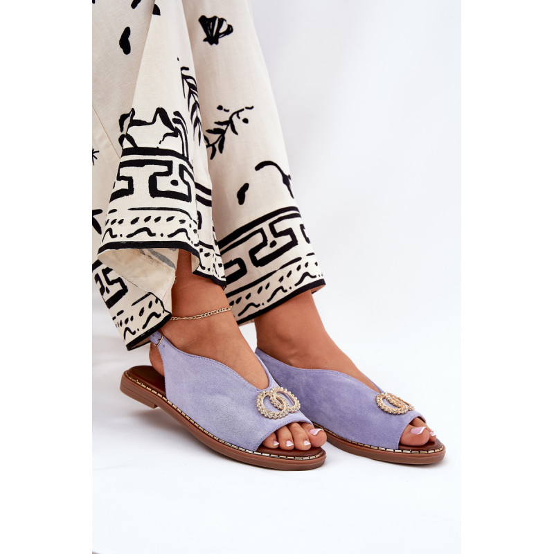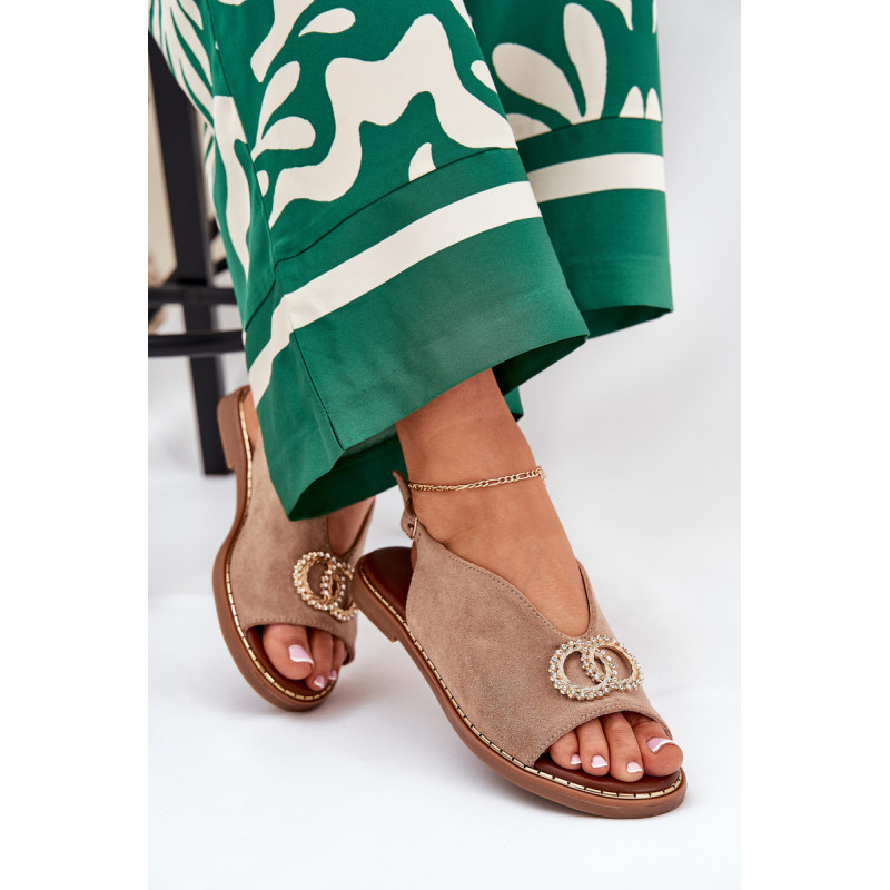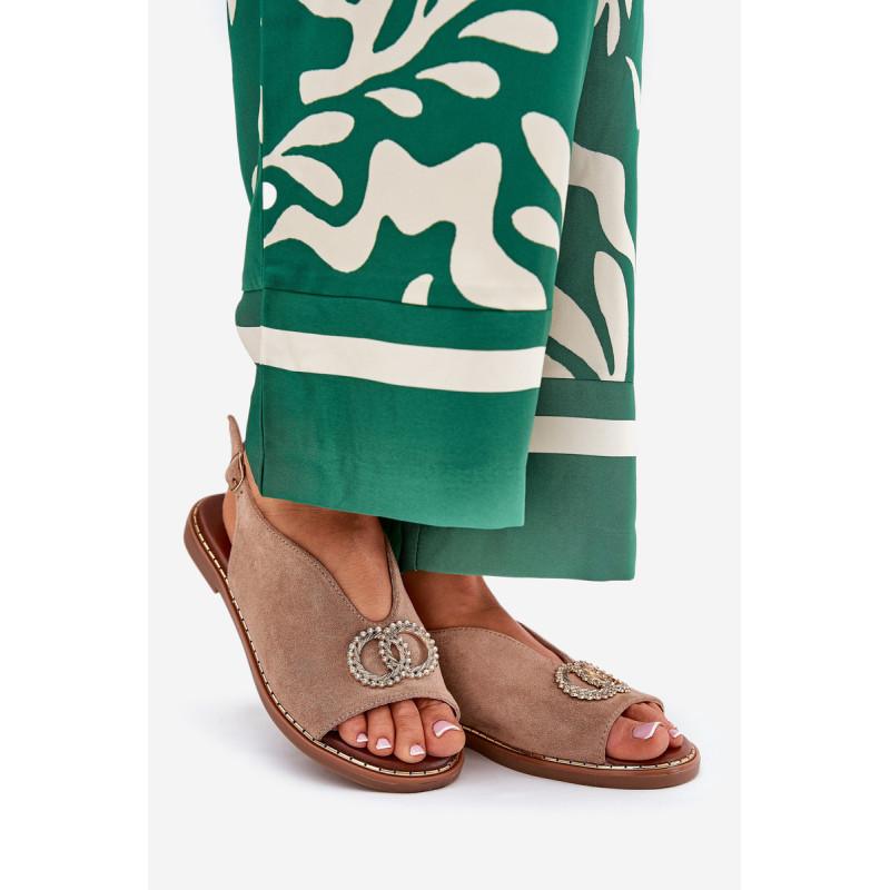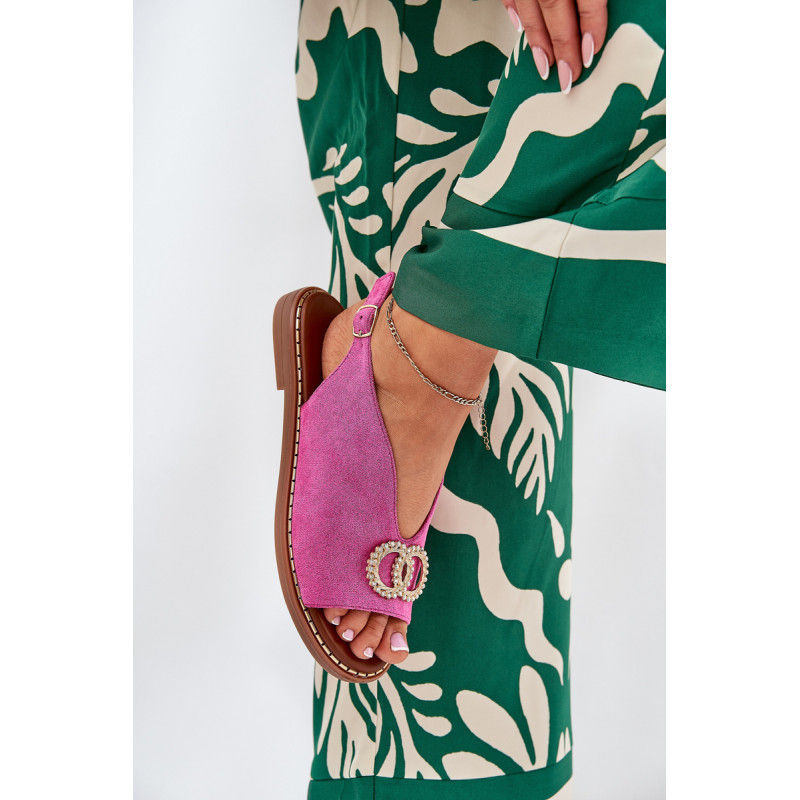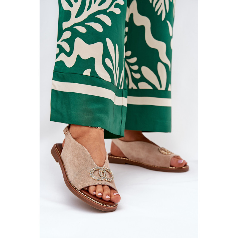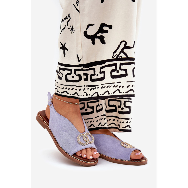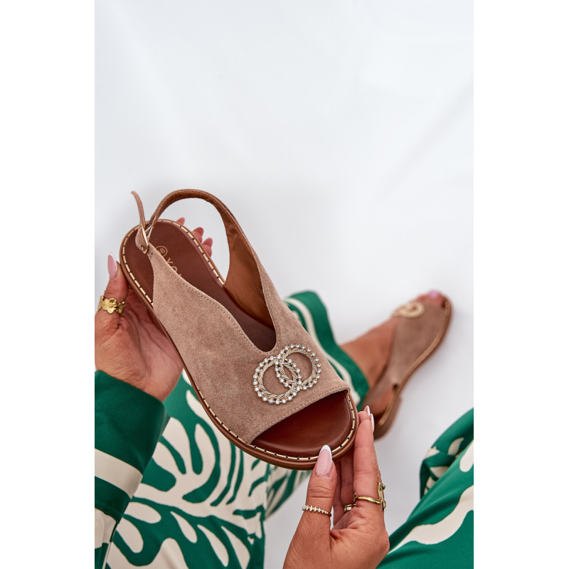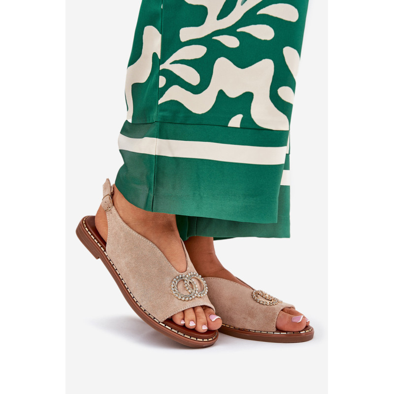 Ekologiškos zomšinės moterų sandalai yra elegantiškas pasirinkimas šiltoms dienoms. Įrengti ant plokščio kulno, jie užtikrina komfortą ir stabilumą. Uždaryti reguliuojamu dirželiu su sagtimi, leidžiančiu tobulai priglusti prie pėdos. Priekyje yra dekoracija, kuri prideda subtilios elegancijos, todėl jie puikiai tinka tiek kasdieniam, tiek formalesniam stiliui. Renkantis dydį, vadovaukitės dydžių lentele.