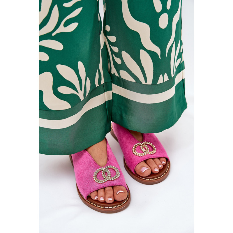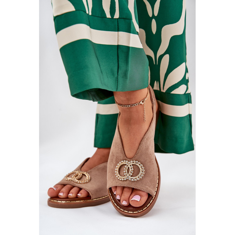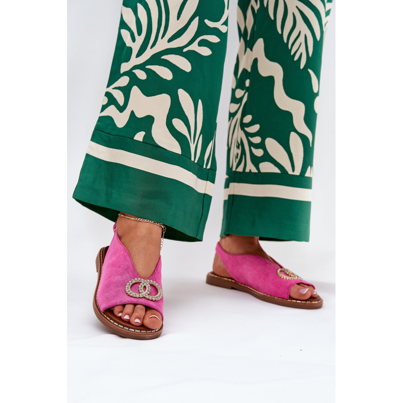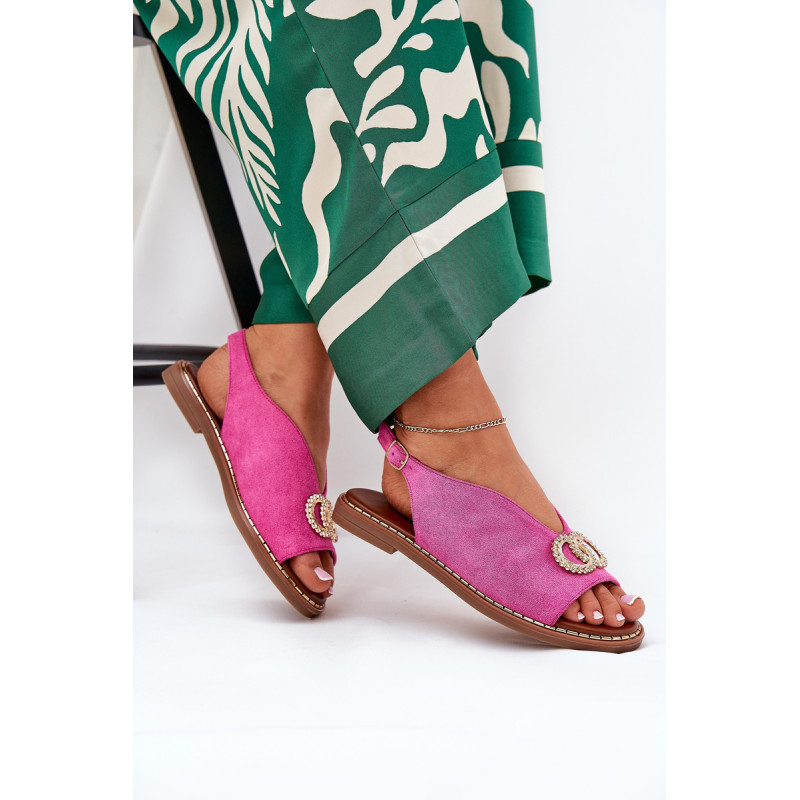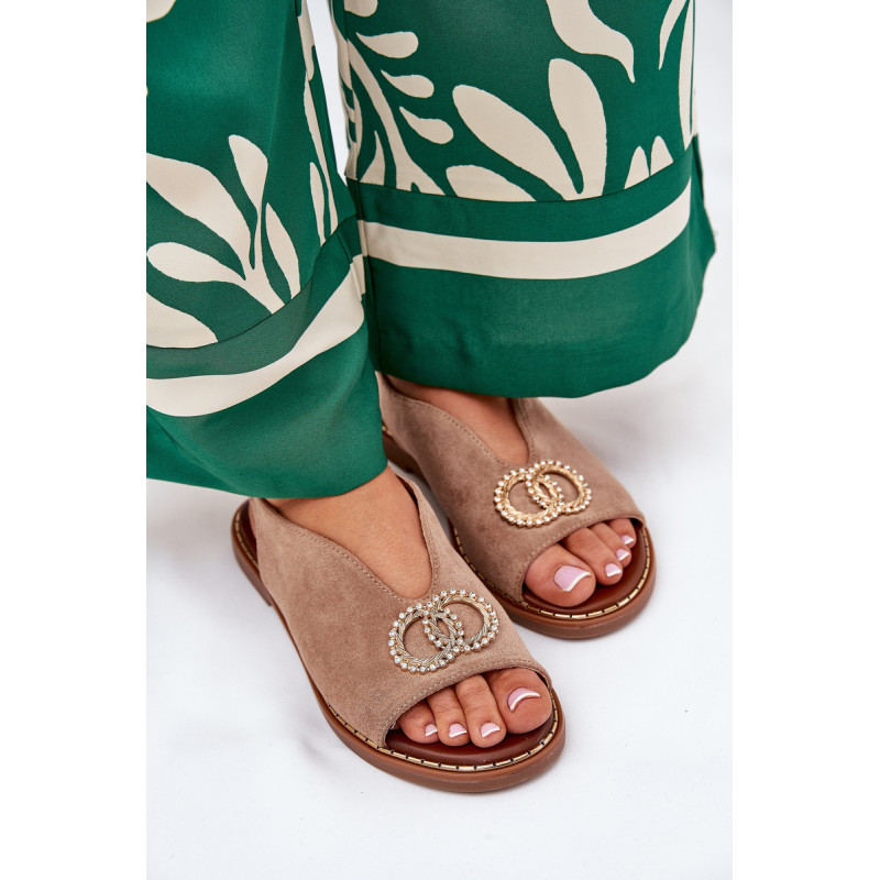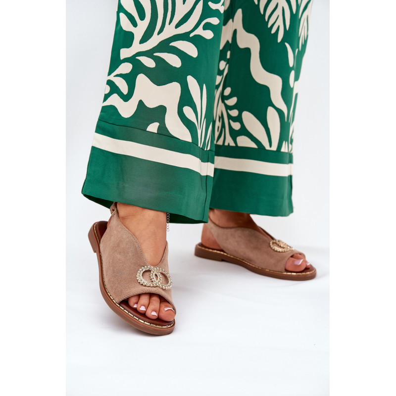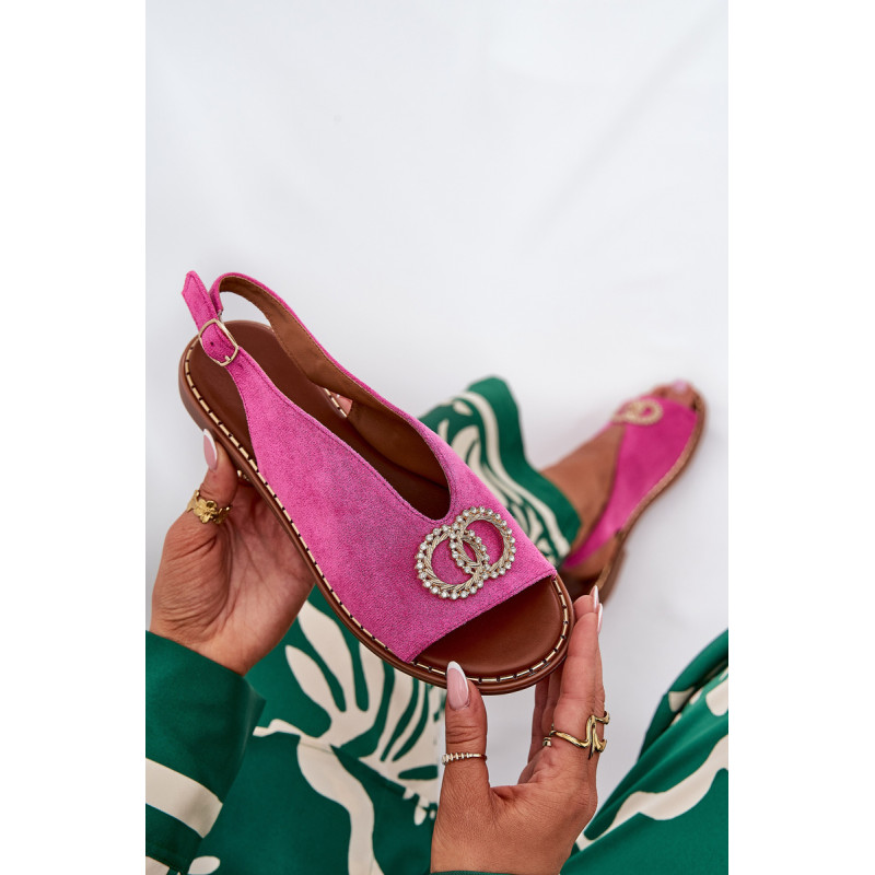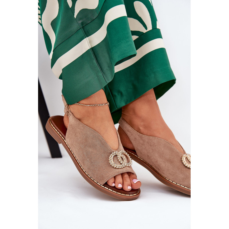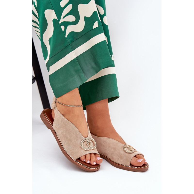 Ekologiškos zomšinės moterų sandalai yra elegantiškas pasirinkimas šiltoms dienoms. Įrengti ant plokščio kulno, jie užtikrina komfortą ir stabilumą. Uždaryti reguliuojamu dirželiu su sagtimi, leidžiančiu tobulai priglusti prie pėdos. Priekyje yra dekoracija, kuri prideda subtilios elegancijos, todėl jie puikiai tinka tiek kasdieniam, tiek formalesniam stiliui. Renkantis dydį, vadovaukitės dydžių lentele.