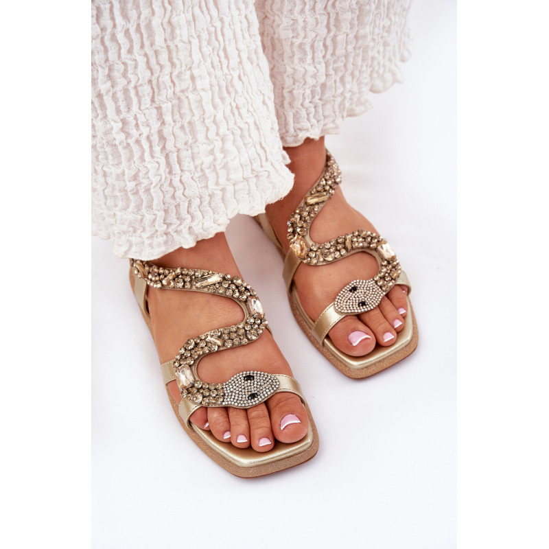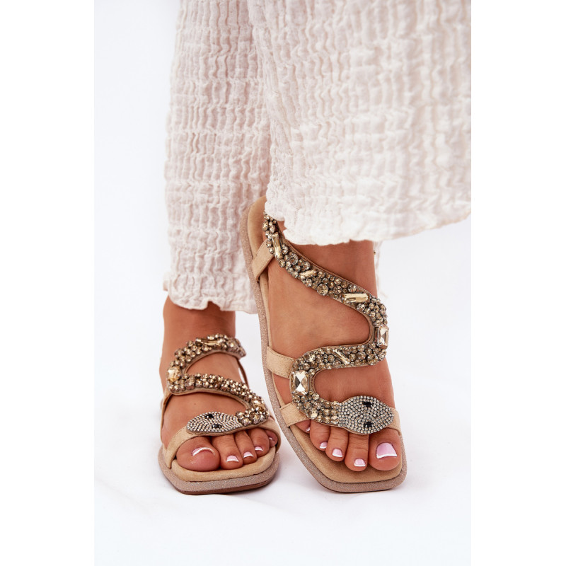Moteriški sandalai, pagaminti iš ekologiškos odos, yra idealus pasirinkimas vasaros dienoms. Plokščias padas, papuoštas blizgučiais, suteikia jiems subtilų blizgesį, o unikalūs kristalai, formuojantys gyvatės formą, suteikia jiems išskirtinį charakterį. Šie sandalai bus puikus akcentas vasaros stiliams, derinantys eleganciją su madingu, originaliu įvaizdžiu. Renkantis dydį, vadovaukitės dydžių lentele.