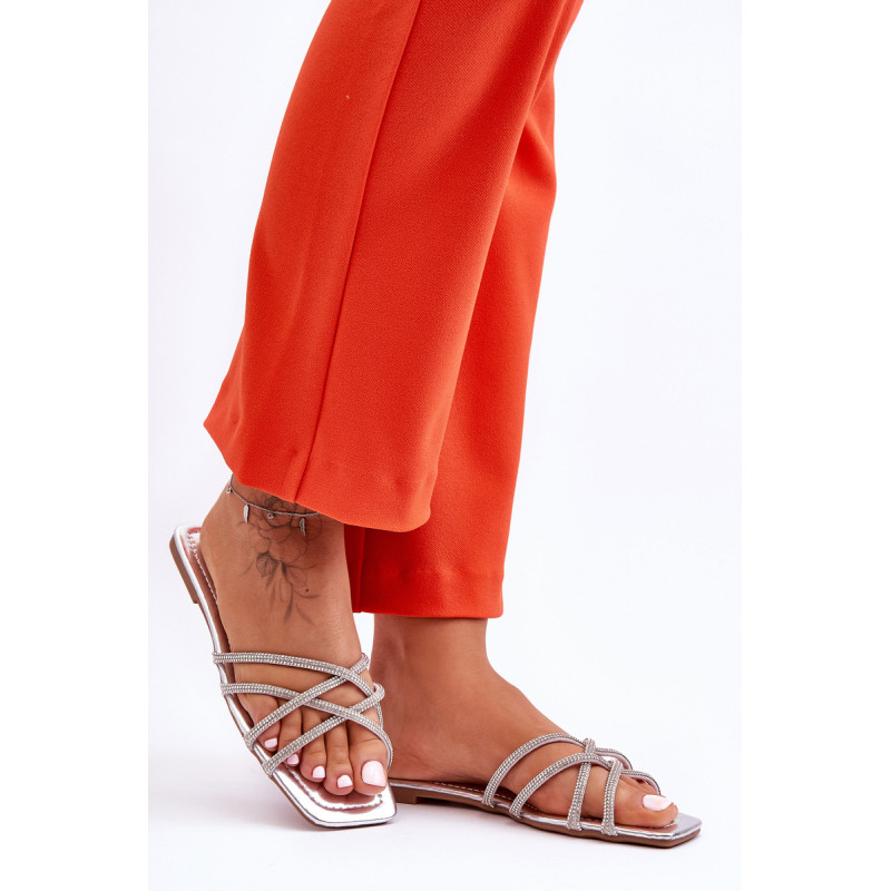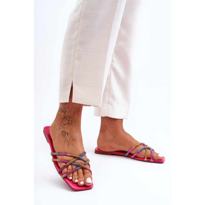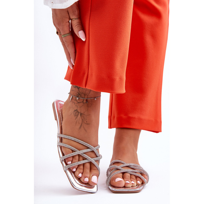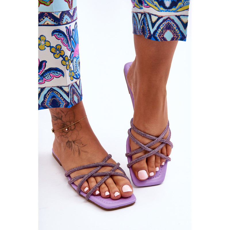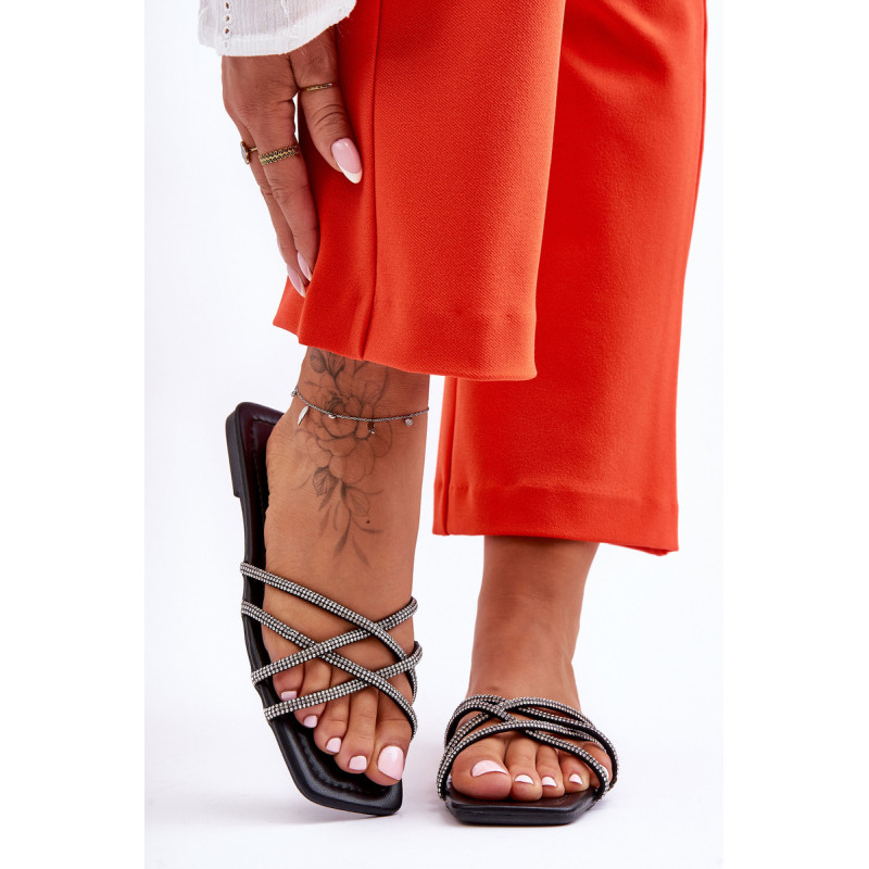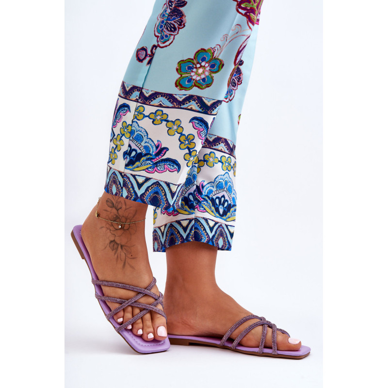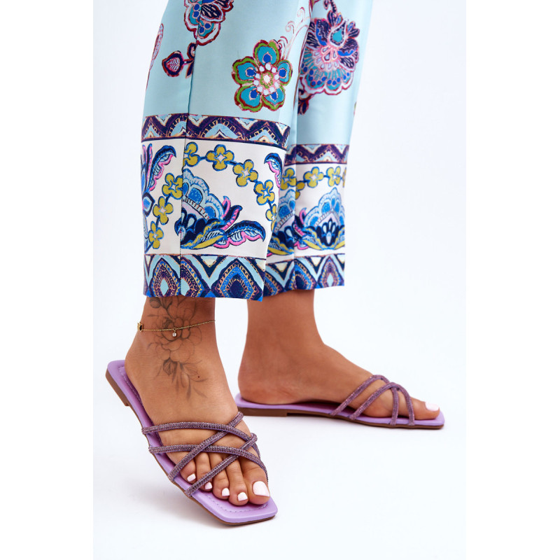 Šių elegantiškų moteriškų sandalų viršutinė dalis yra pagaminta iš audinio. Priekyje esantys dirželiai persipina ir dekoruoti kalnų krištolo akmenį imituojančiomis smeigėmis. Sandalai turi minkštą ir patogų vidpadį iš eko odos. Ši avalynė puikiai tiks prie daugelio vasaros drabužių! Jūs juos būtinai turite turėti! Rinkdamiesi dydį, žiūrėkite dydžių lentelę.