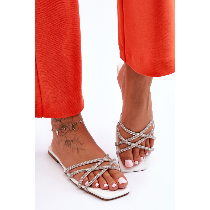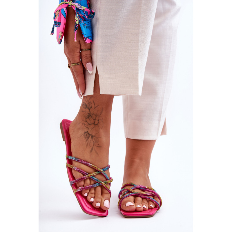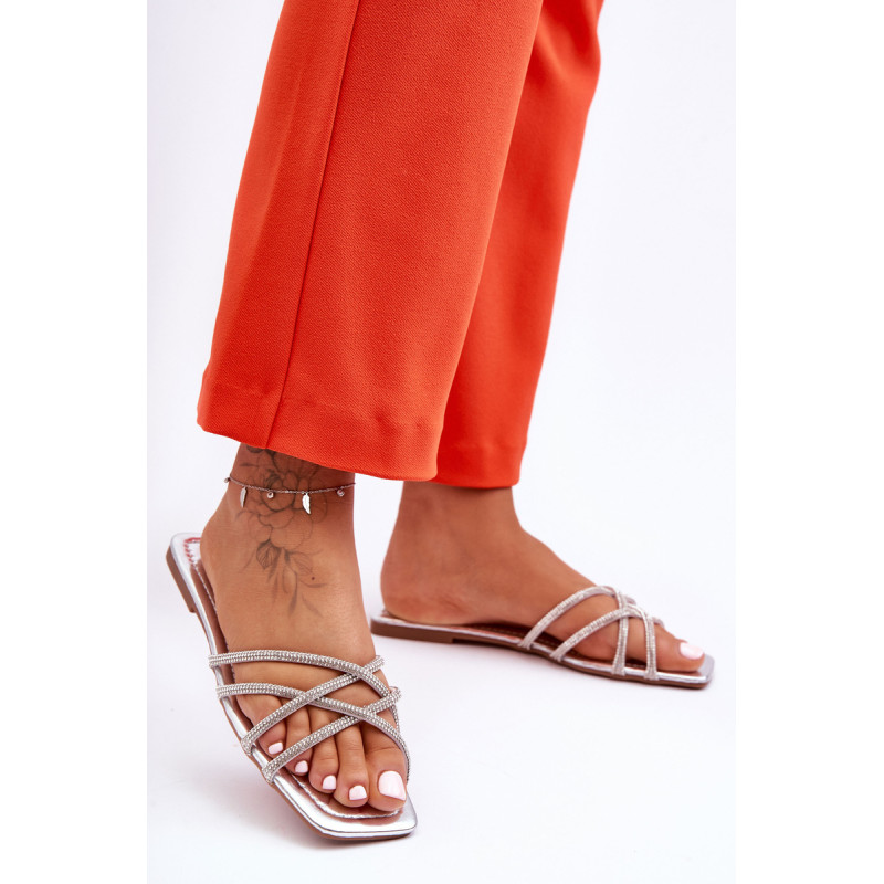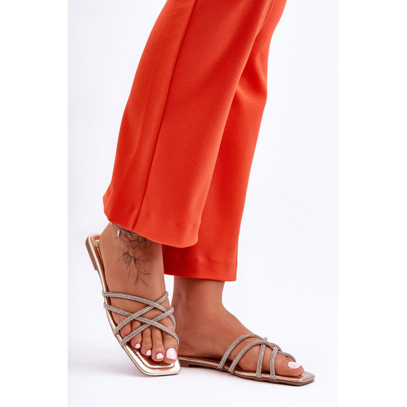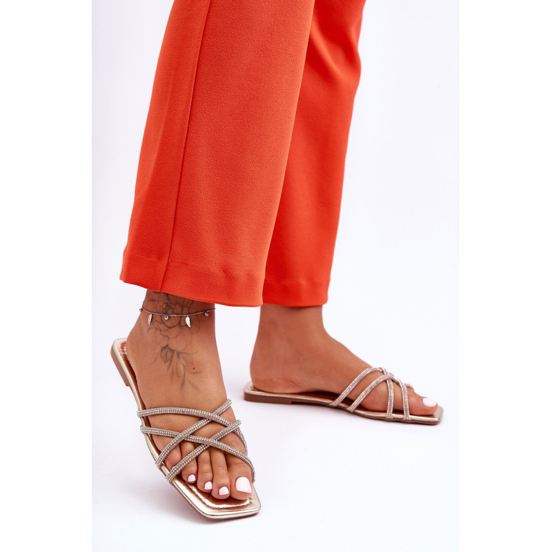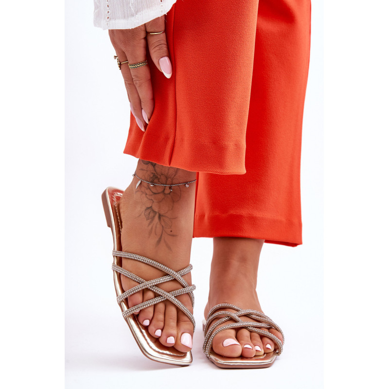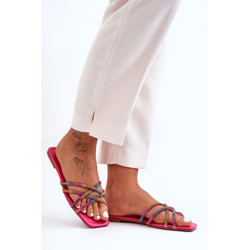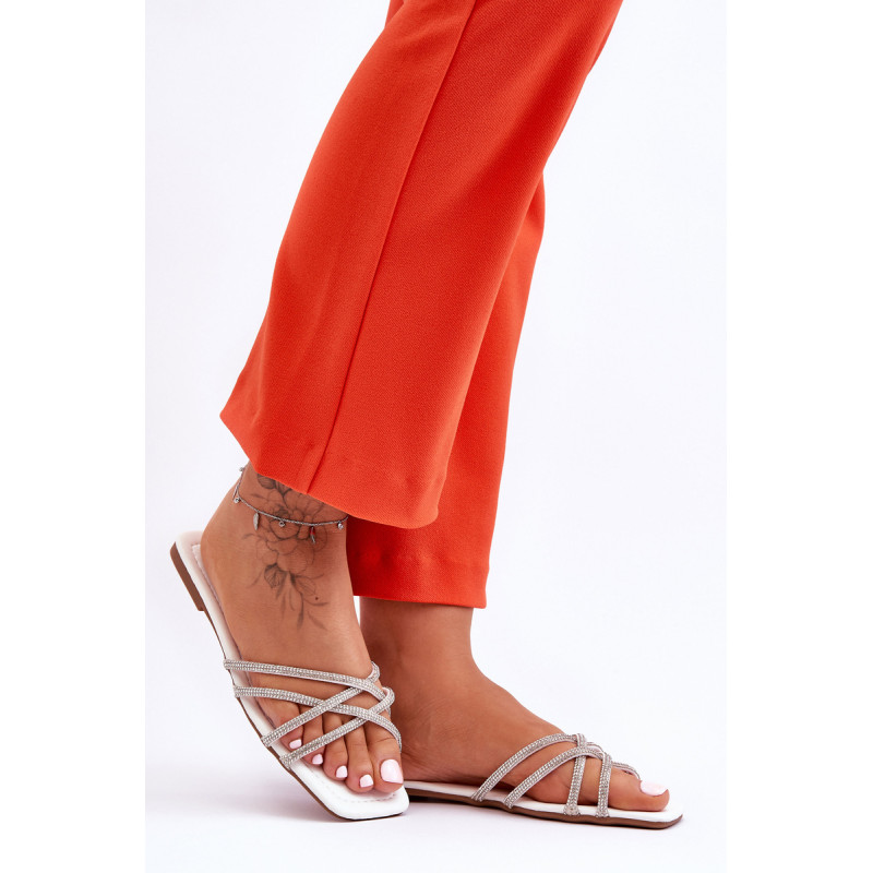 Šių elegantiškų moteriškų sandalų viršutinė dalis yra pagaminta iš audinio. Priekyje esantys dirželiai persipina ir dekoruoti kalnų krištolo akmenį imituojančiomis smeigėmis. Sandalai turi minkštą ir patogų vidpadį iš eko odos. Ši avalynė puikiai tiks prie daugelio vasaros drabužių! Jūs juos būtinai turite turėti! Rinkdamiesi dydį, žiūrėkite dydžių lentelę.