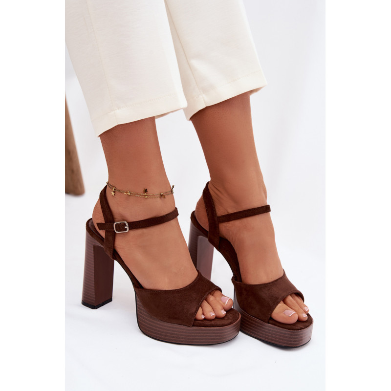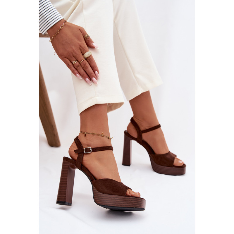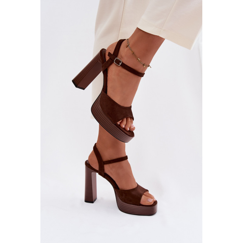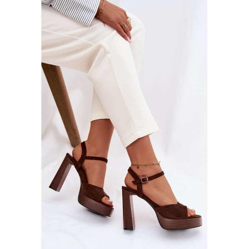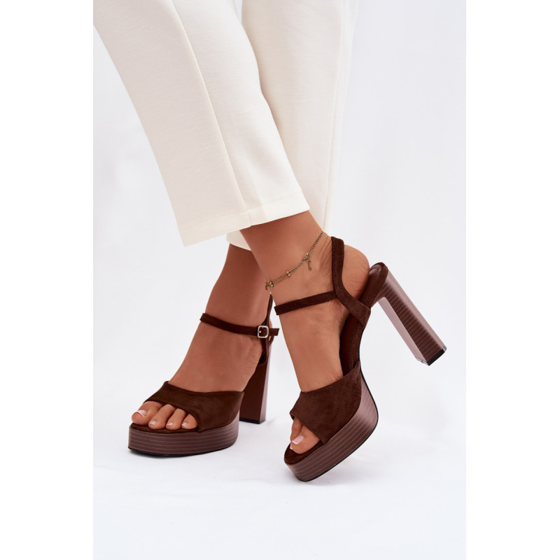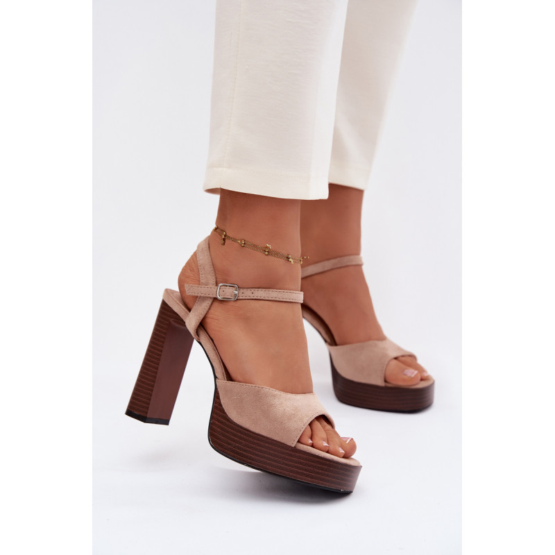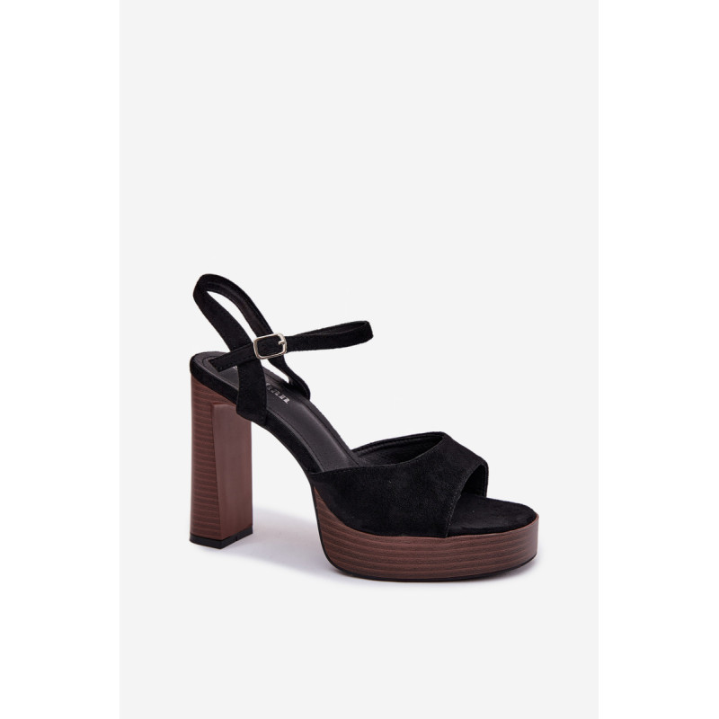 Moteriškos sandalai pagaminti iš ekologiško zomšos. Modelis yra ant aukšto kulno, formos stulpo ir platformos, kas užtikrina stabilumą ir patogumą, o kartu gražiai lieknina siluetą. Reguliuojamas dirželis su sagtimi leidžia idealiai pritaikyti sandalą prie pėdos. Šis modelis puikiai tinka vakarėliams, šventėms ir vakarinėms išvykoms. Renkantis dydį, vadovaukitės dydžių lentele.
