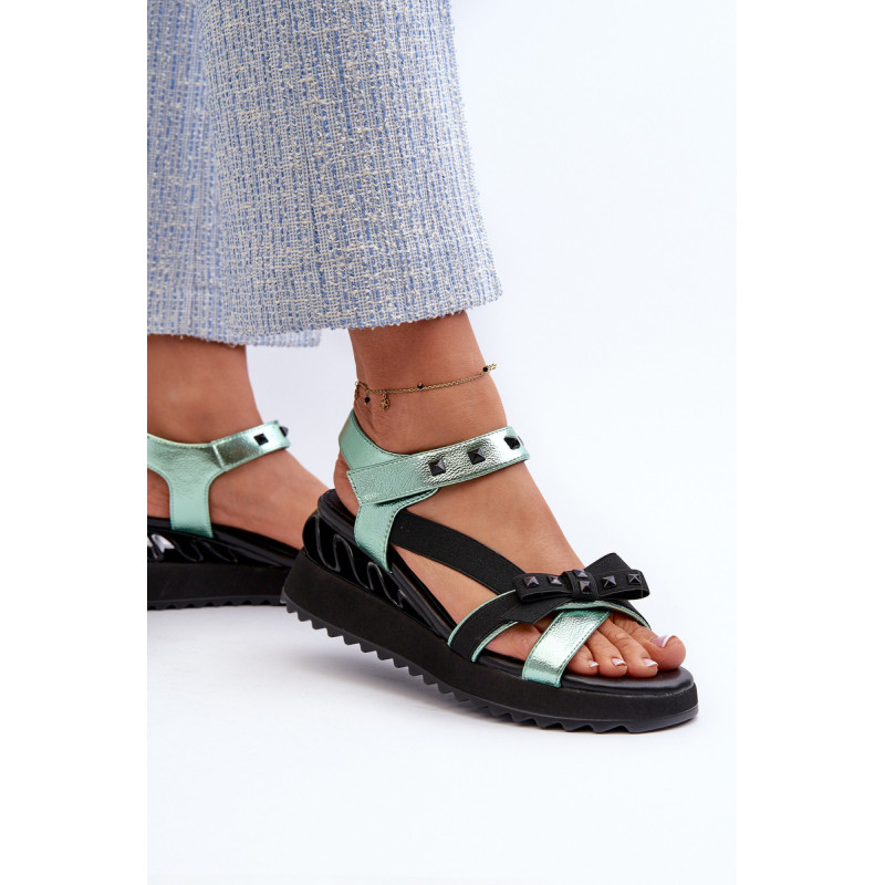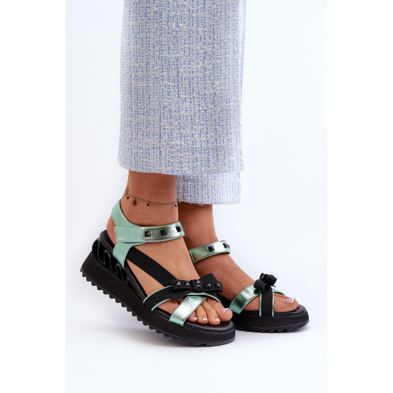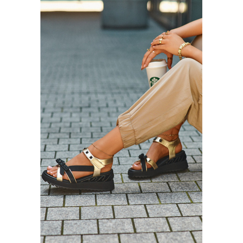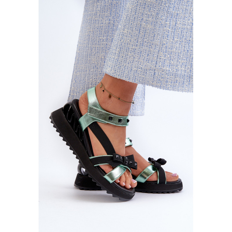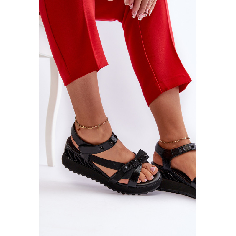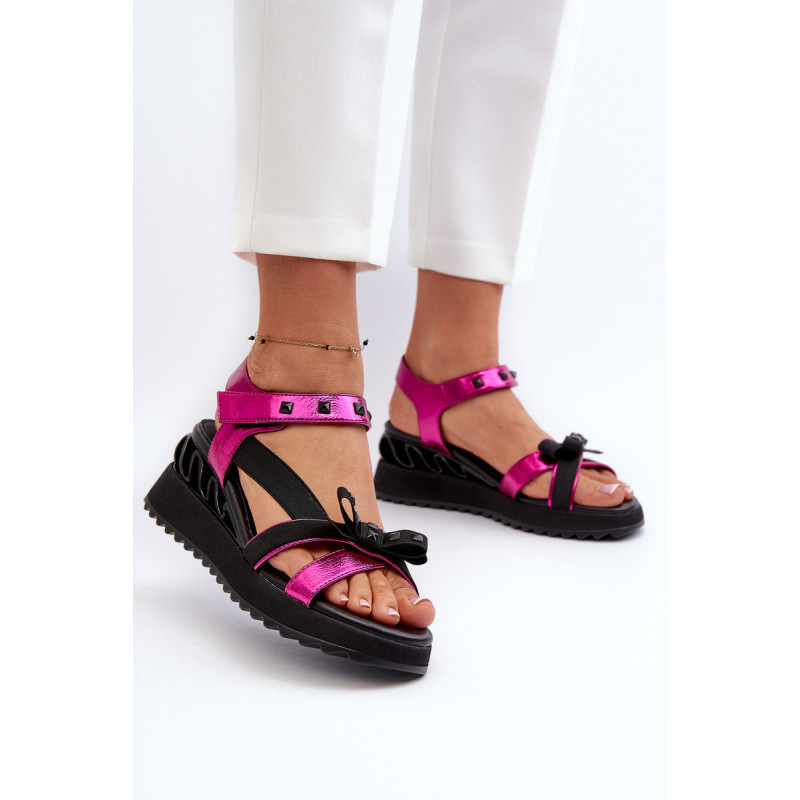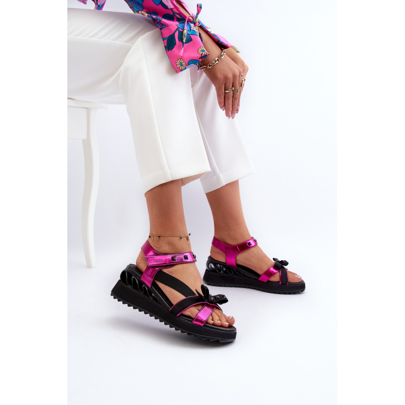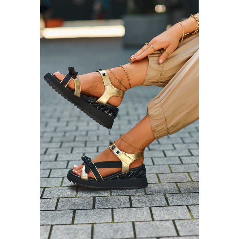 Itin stilingi moteriški sandalai ant platformos su pleištu kulnu. Praktiškas Velcro užsegimas užtikrina greitą ir patogų prigludimą prie pėdos. Lankas priekyje suteikia jiems žavesio ir subtilumo. Šis modelis tikrai pritrauks dėmesį! Rinkdamiesi dydį, žiūrėkite dydžių lentelę.