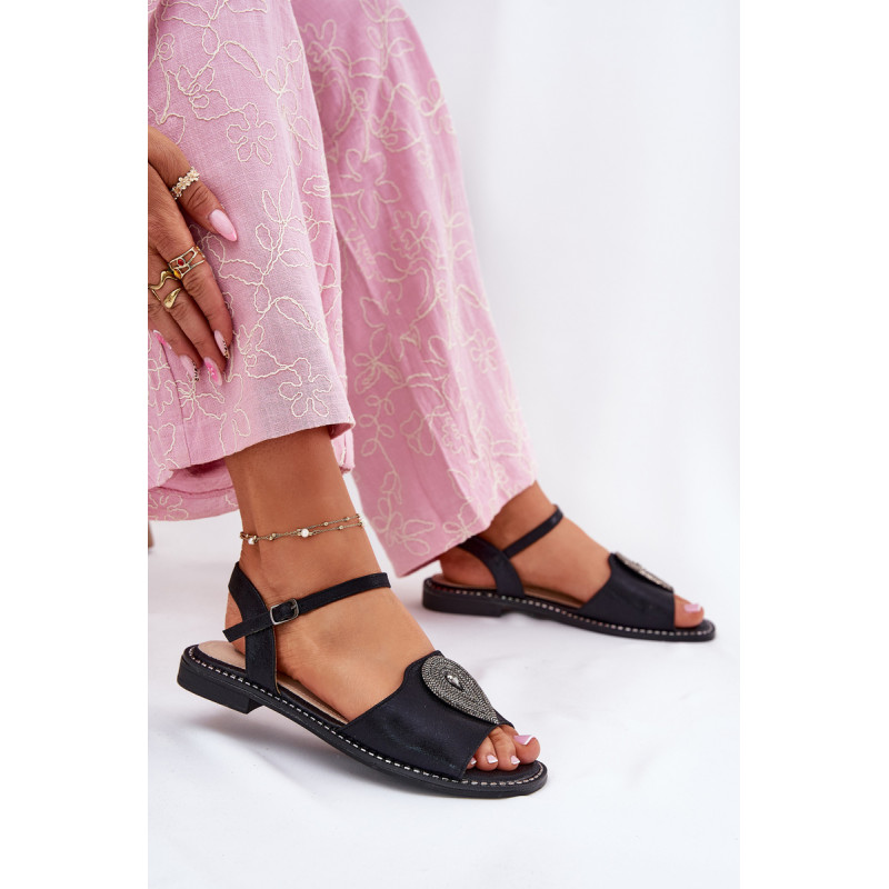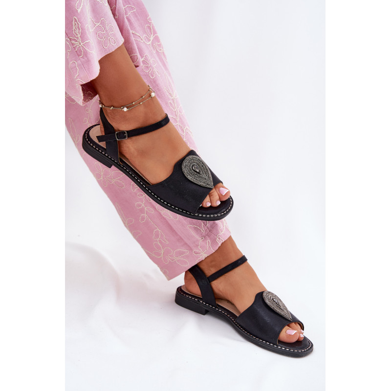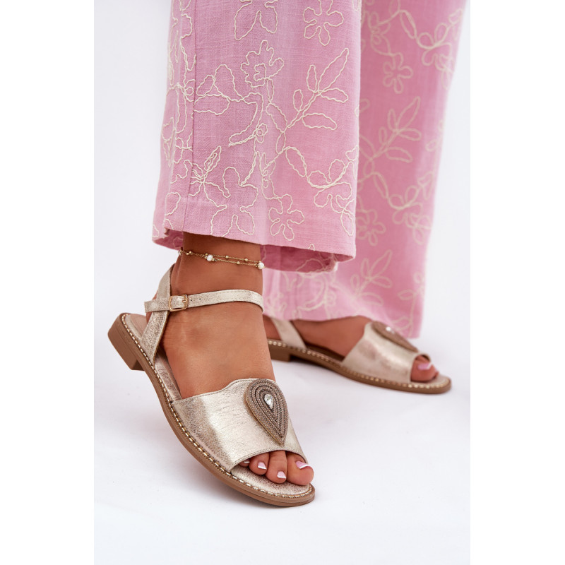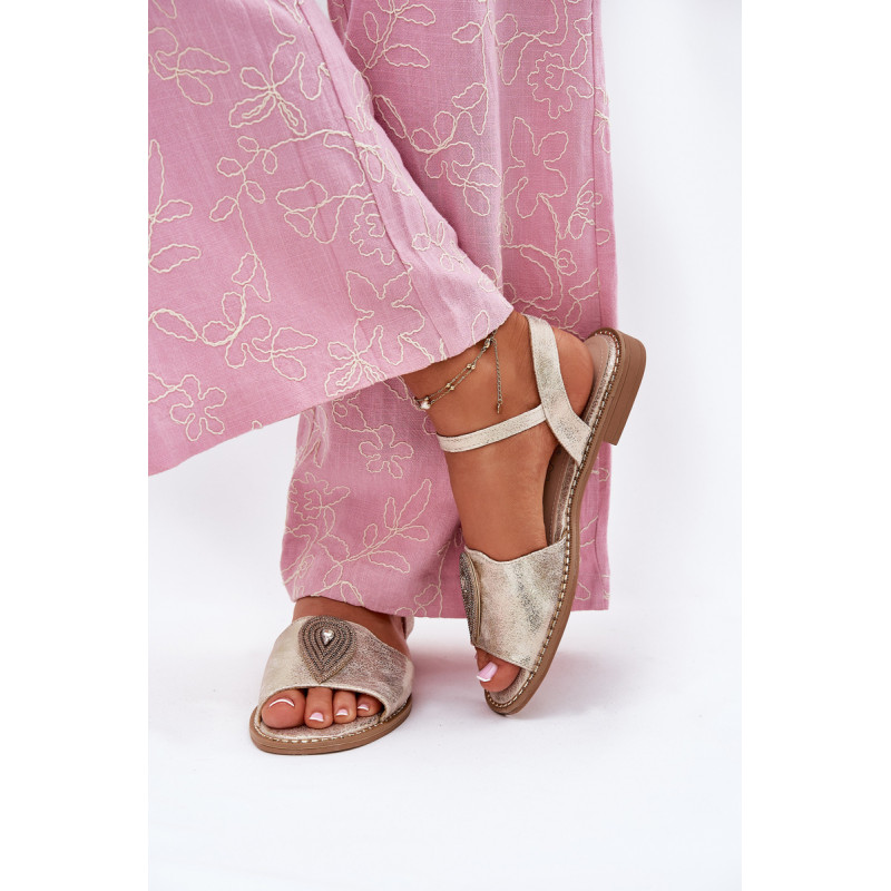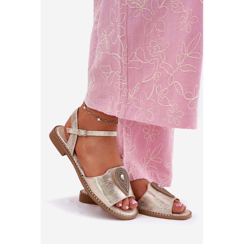 Šios moteriškos sandalai iš ekologiškos odos yra puikus pasirinkimas karštoms dienoms. Jos suteikia komfortą ir stabilumą dėl plokščio kulno. Priekinė dalis puošia dekoratyvinis elementas, kuris suteikia joms subtilaus žavesio. Natūralios odos padas užtikrina, kad kiekvienas žingsnis būtų patogus. Reguliuojama juosta su sagtimi leidžia tobulai pritaikyti prie pėdos. Šis modelis puikiai tinka daugeliui vasaros stilių, nuo kasdienių iki elegantiškesnių. Renkantis dydį, vadovaukitės dydžių lentele.