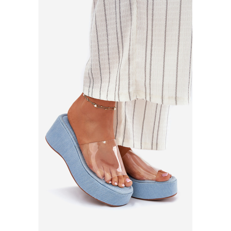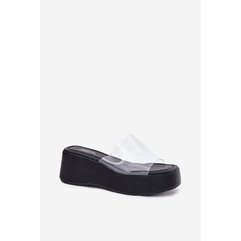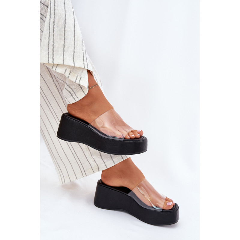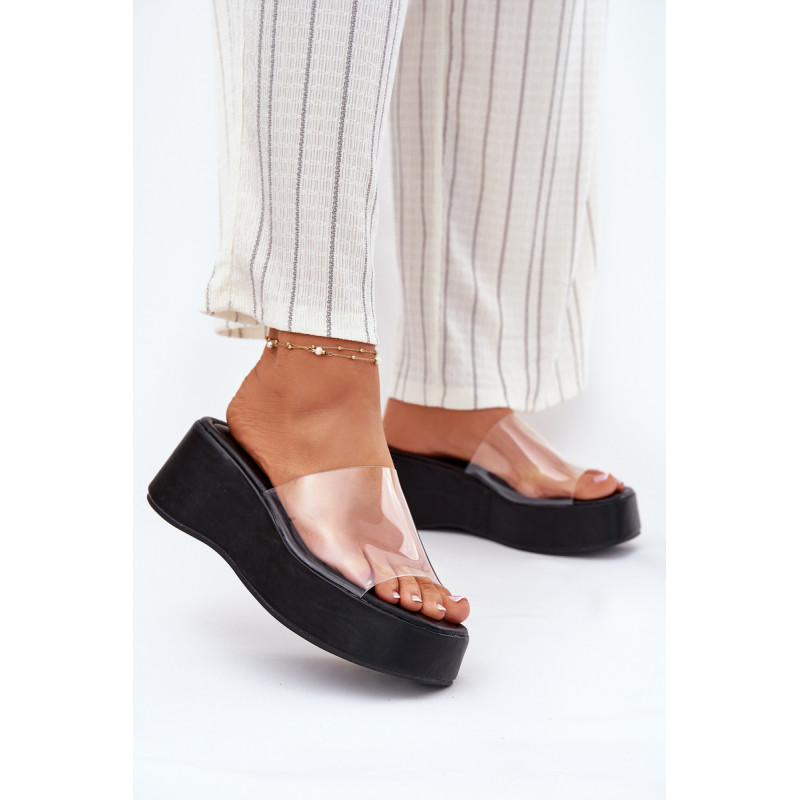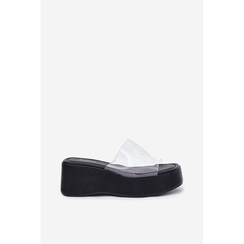 Moteriški šlepetės su skaidriu dirželiu yra modernaus stiliaus ir komforto derinys. Šis modelis yra sumontuotas ant platformos, kuri subtiliai pailgina siluetą, tuo pačiu užtikrindama stabilumą vaikštant. Minkšta vidpadis garantuoja komfortą net ir ilgai dėvint. Šios šlepetės puikiai papildys tiek kasdienius, tiek elegantiškesnius vasaros įvaizdžius. Renkantis dydį, vadovaukitės dydžių lentele.