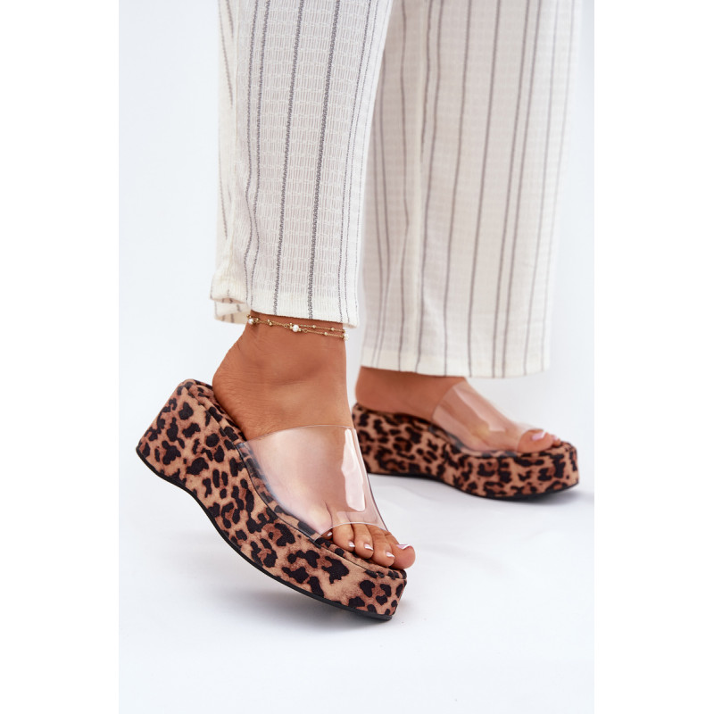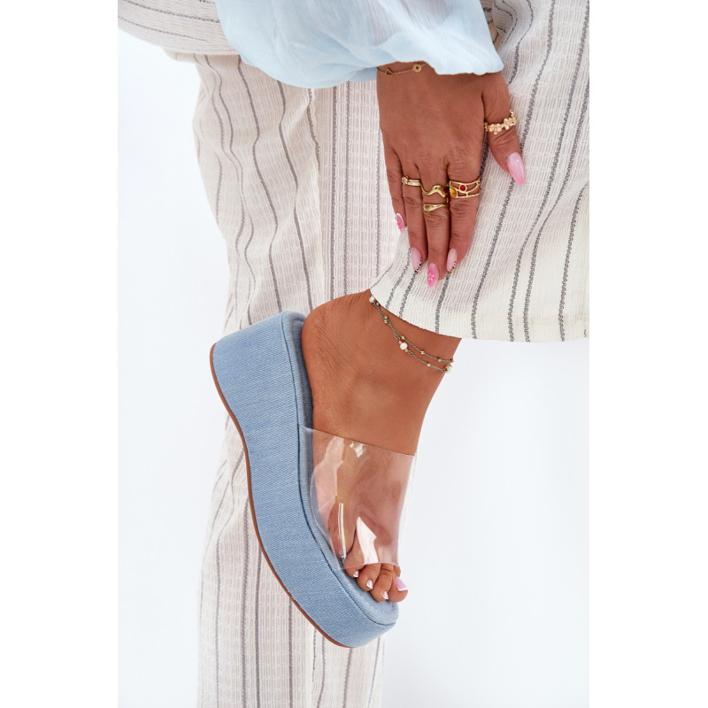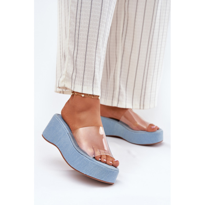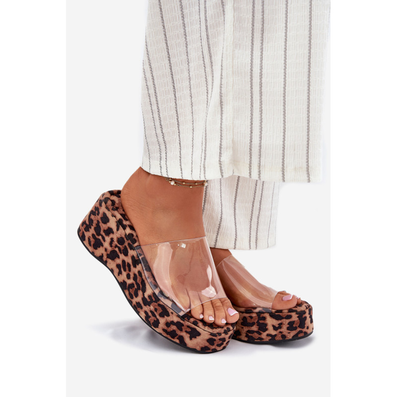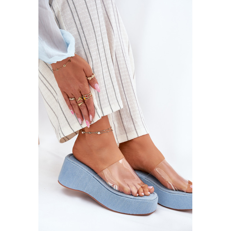 Moteriški šlepetės su skaidriu dirželiu yra modernaus stiliaus ir komforto derinys. Šis modelis yra sumontuotas ant platformos, kuri subtiliai pailgina siluetą, tuo pačiu užtikrindama stabilumą vaikštant. Minkšta vidpadis garantuoja komfortą net ir ilgai dėvint. Šios šlepetės puikiai papildys tiek kasdienius, tiek elegantiškesnius vasaros įvaizdžius. Renkantis dydį, vadovaukitės dydžių lentele.