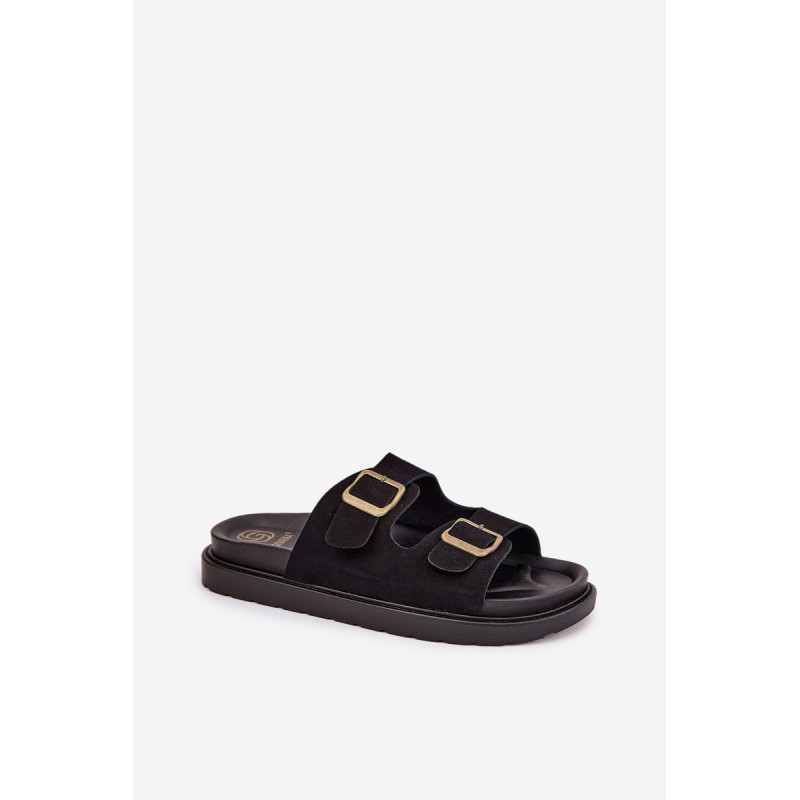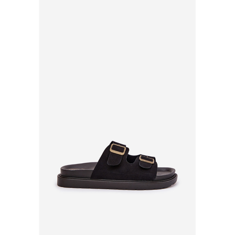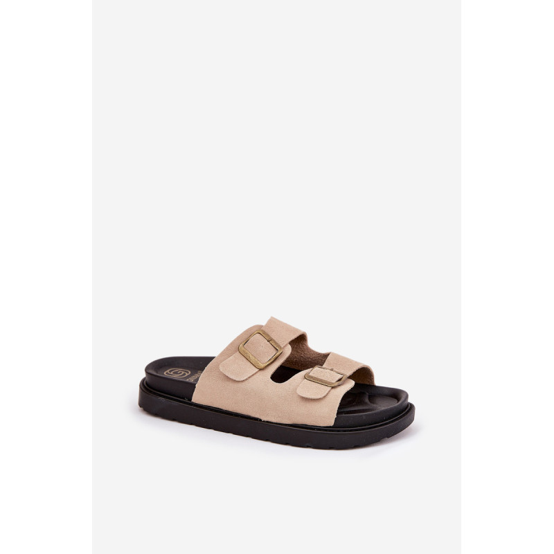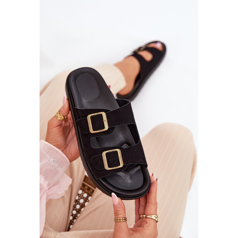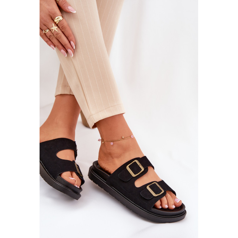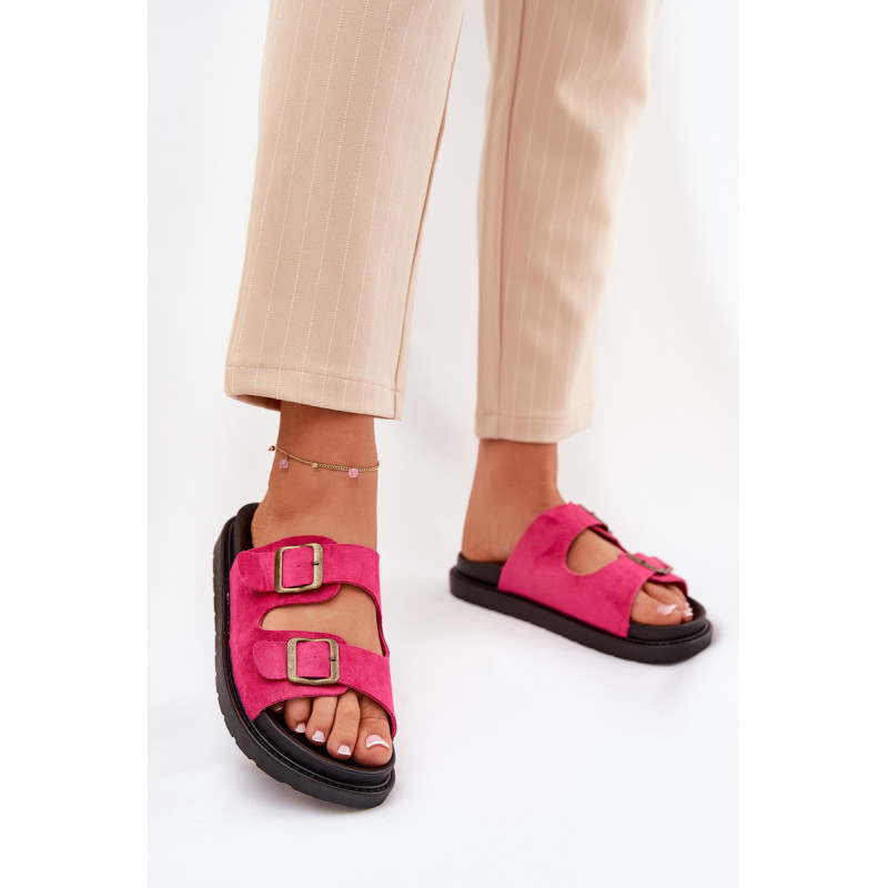 Stilingi šlepetės, pagamintos iš ekologiškos zomšos. Įmontuoti ant platformos, kuri sujungia komfortą su madinga išvaizda. Dirželiai su sagtimis užtikrina tobulą pritaikymą, o profiliuota vidpadis garantuoja patogumą visą dieną. Šios šlepetės bus puikus pasirinkimas vasaros dienoms, tinkamos tiek suknelėms, tiek kelnių. Renkantis dydį, vadovaukitės dydžių lentele.