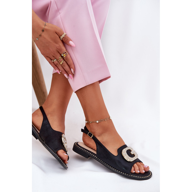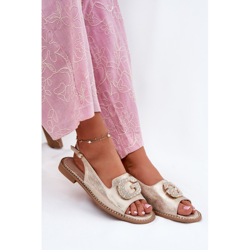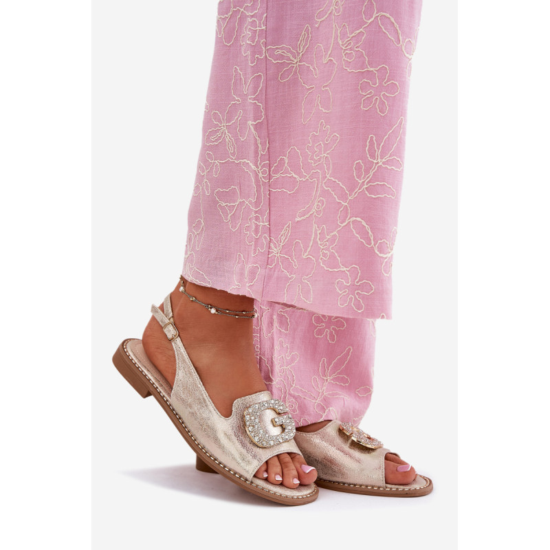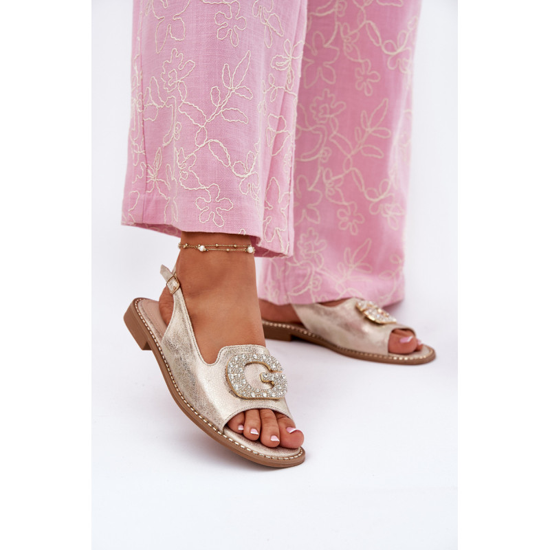 Moteriški sandalai, pagaminti iš ekologinės odos, yra stilingas pasirinkimas karštoms dienoms. Ant plokščio kulno jie garantuoja komfortą ir stabilumą visą dieną. Priekinė dalis papuošta dekoratyviniu elementu, suteikiančiu jiems švelnaus žavesio. Natūralios odos padas užtikrina komfortą kiekviename žingsnyje. Dėl reguliuojamos sagties juostos juos galima puikiai pritaikyti prie pėdos. Renkantis dydį, vadovaukitės dydžių lentele.