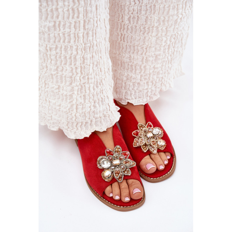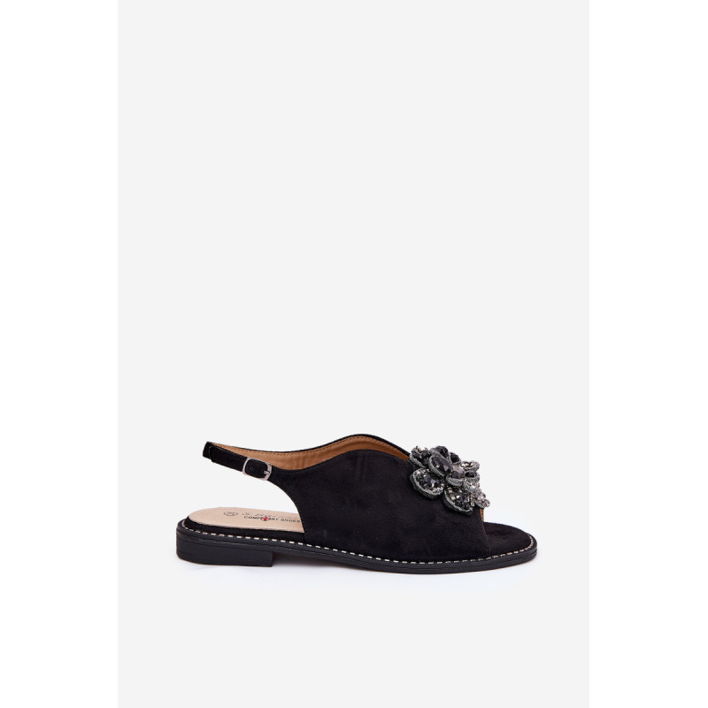 Moteriški sandalai iš S.Barski prekės ženklo, pagaminti iš ekologinio zomšo. Įrengti ant plokščio kulno, jie užtikrina komfortą visą dieną. Priekyje dekoratyvinė gėlė, kuri suteikia išskirtinį žavesį. Comfort Shoes padas užtikrina komfortą ir tinkamą amortizaciją visą dieną. Uždaryti su sagtimi ir reguliuojamu dirželiu, leidžiančiu puikiai pritaikyti prie pėdos. Elegantiškas modelis, kurį puikiai derinsite su įvairiomis stilistikomis. Renkantis dydį, vadovaukitės dydžių lentele.