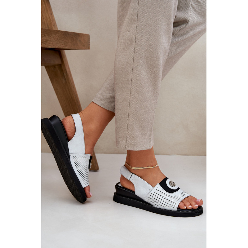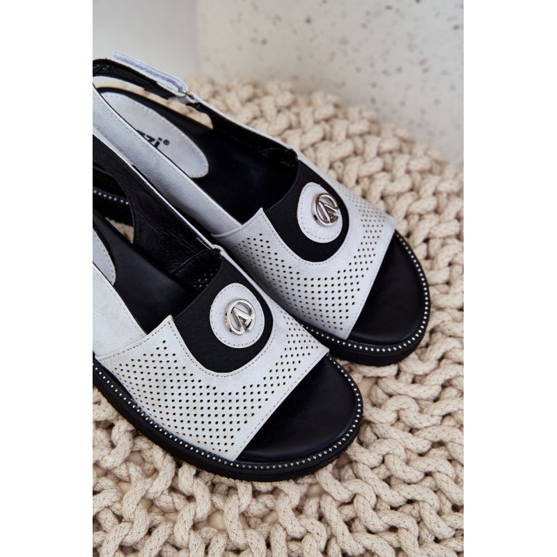 Jezzi prekės ženklo sandalai. Pagaminti iš ekologiškos odos, tai elegantiška pasiūlymas šiltoms dienoms. Įrengti ant platformos, jie užtikrina komfortą ir stabilumą. Uždaryti su velcro, leidžia lengvai prisitaikyti prie pėdos. Mažas dekoratyvinis akcentas priekyje prideda subtilaus žavesio, pabrėždamas jų elegantišką charakterį. Šie sandalai bus puikus pasirinkimas vasaros stiliams, derinant komfortą su madinga išvaizda. Renkantis dydį, vadovaukitės dydžių lentele.