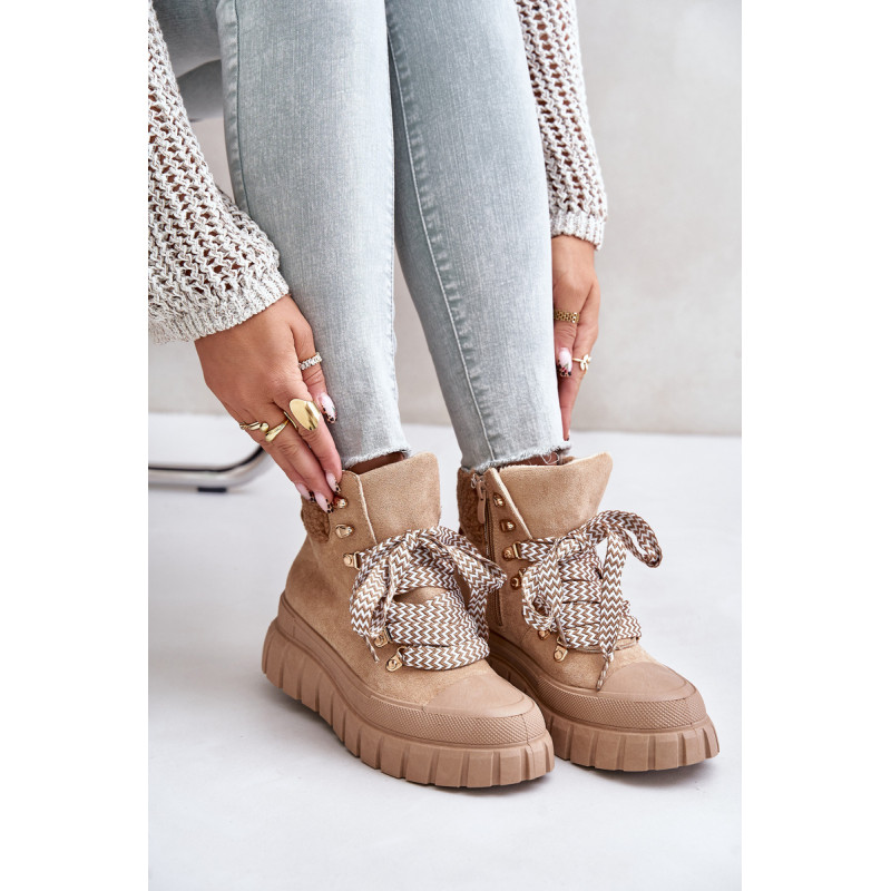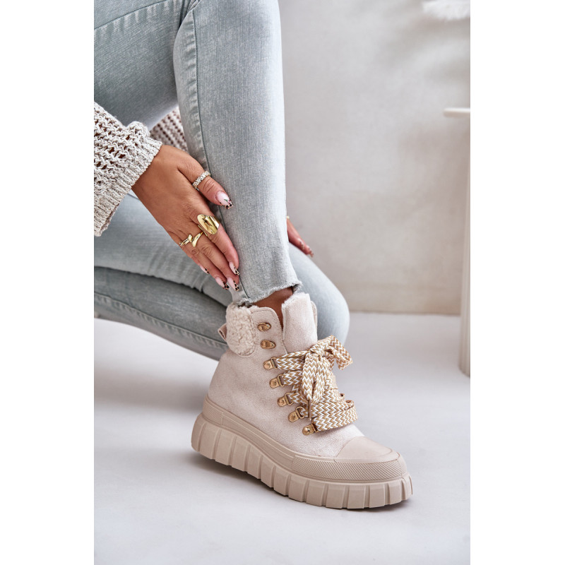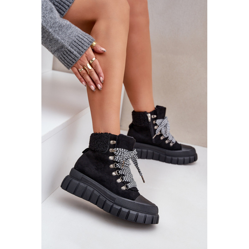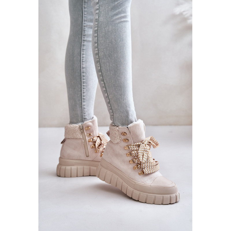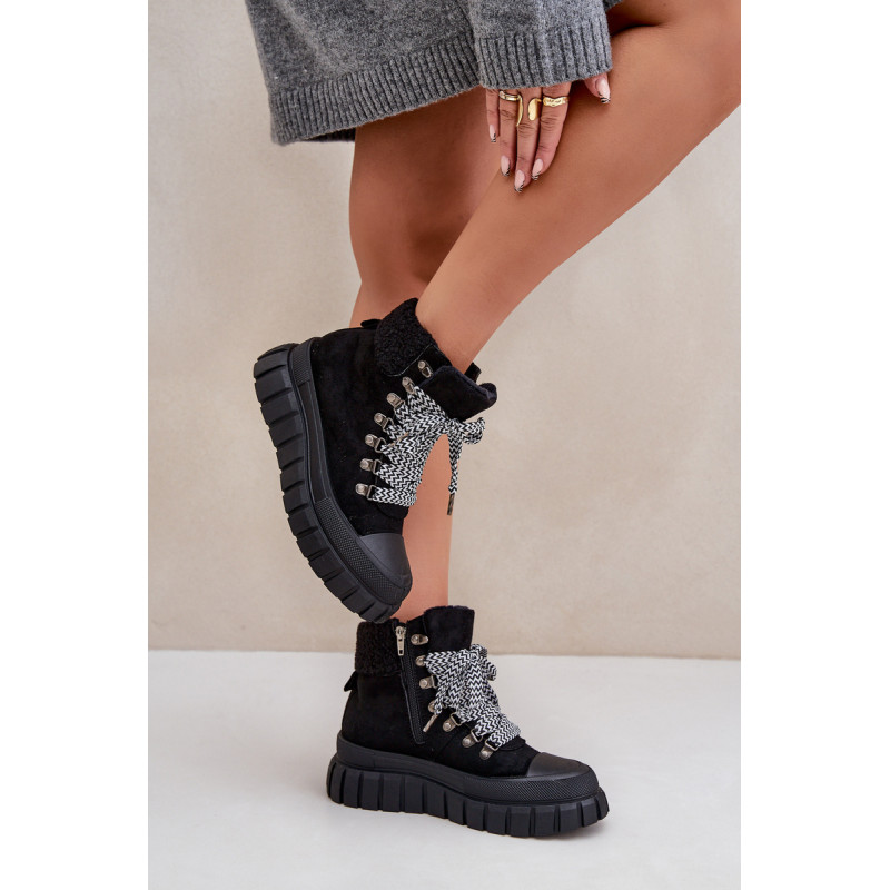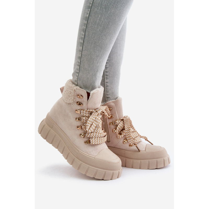 Moteriški batai iš ekologiškos zomšos. Pastatykite ant platformos, kuri puikiai izoliuoja nuo šaltos žemės. Šiame modelyje yra raišteliai ir papildomas užtrauktukas. Izoliuota avalynės vilna, suteikianti komfortą ir šilumą dėvint. Kailis koto viršuje. Ši avalynė ne tik stilinga, bet ir funkcionali. Idealiai tinka moterims, kurios vertina komfortą ir madingą išvaizdą. Rinkdamiesi dydį, žiūrėkite dydžių lentelę.