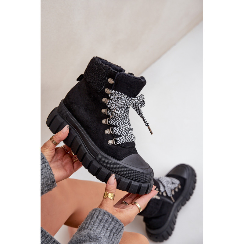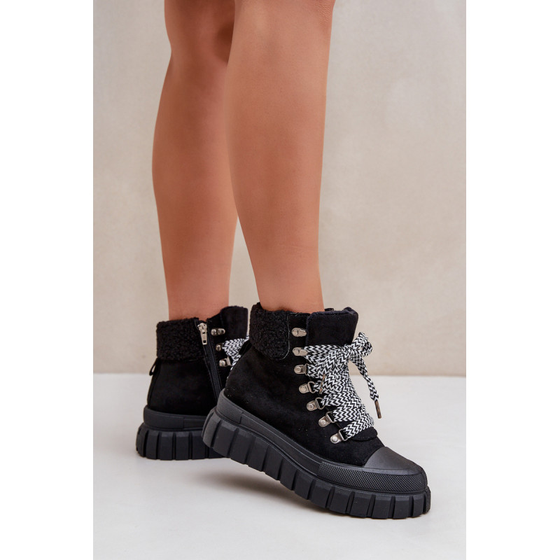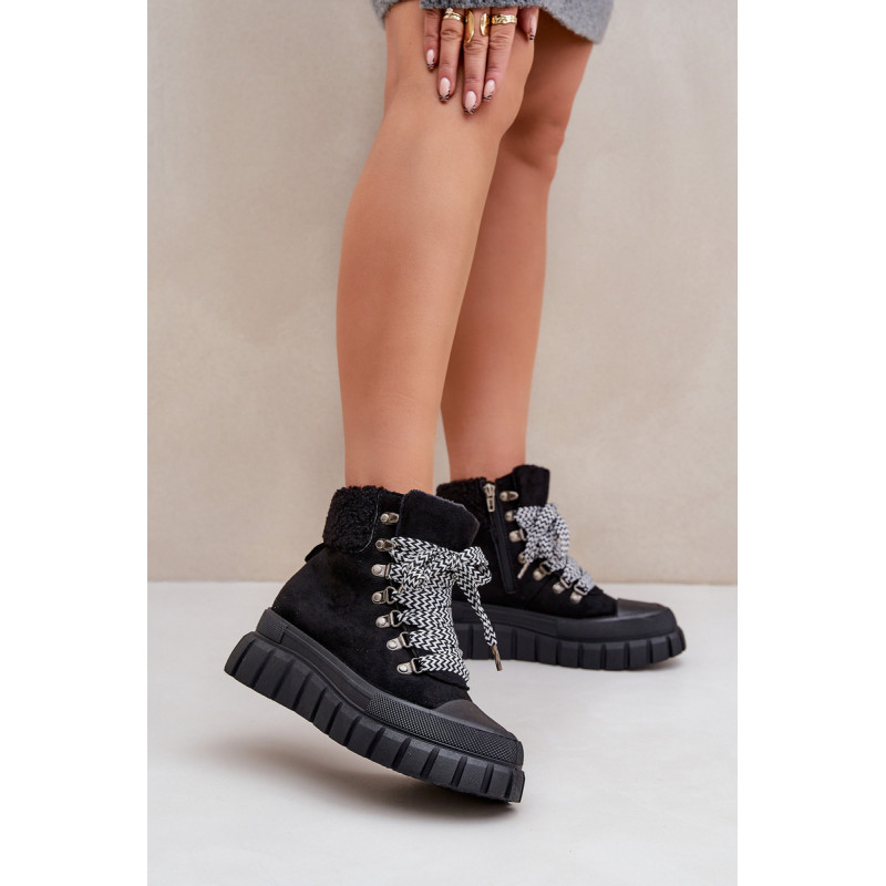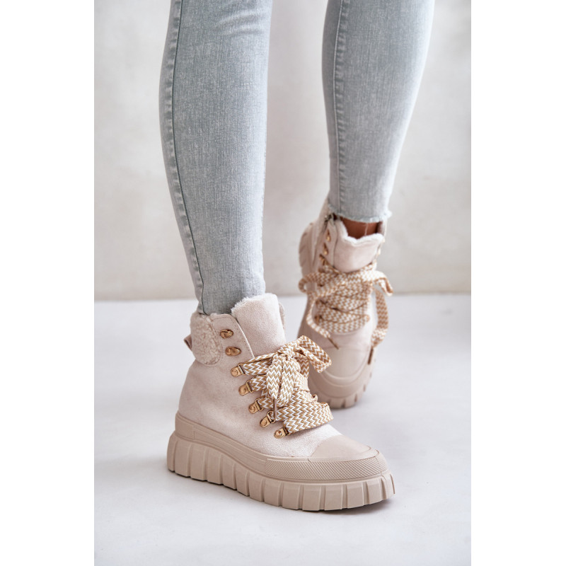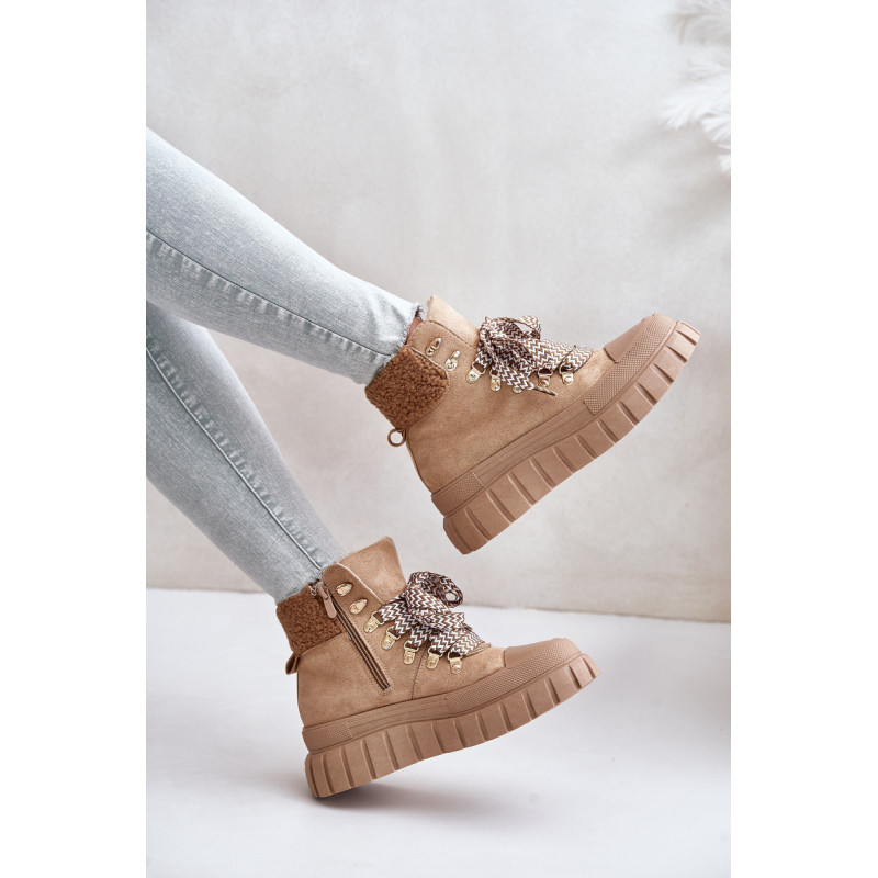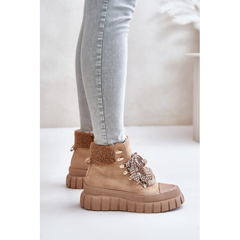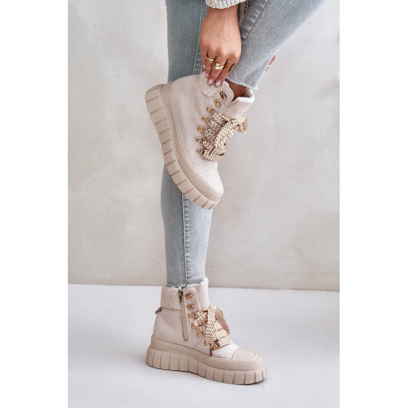 Moteriški batai iš ekologiškos zomšos. Pastatykite ant platformos, kuri puikiai izoliuoja nuo šaltos žemės. Šiame modelyje yra raišteliai ir papildomas užtrauktukas. Izoliuota avalynės vilna, suteikianti komfortą ir šilumą dėvint. Kailis koto viršuje. Ši avalynė ne tik stilinga, bet ir funkcionali. Idealiai tinka moterims, kurios vertina komfortą ir madingą išvaizdą. Rinkdamiesi dydį, žiūrėkite dydžių lentelę.