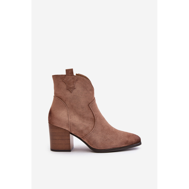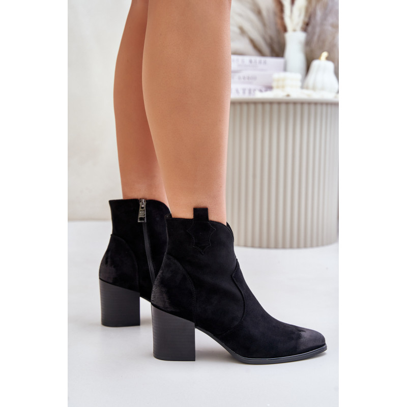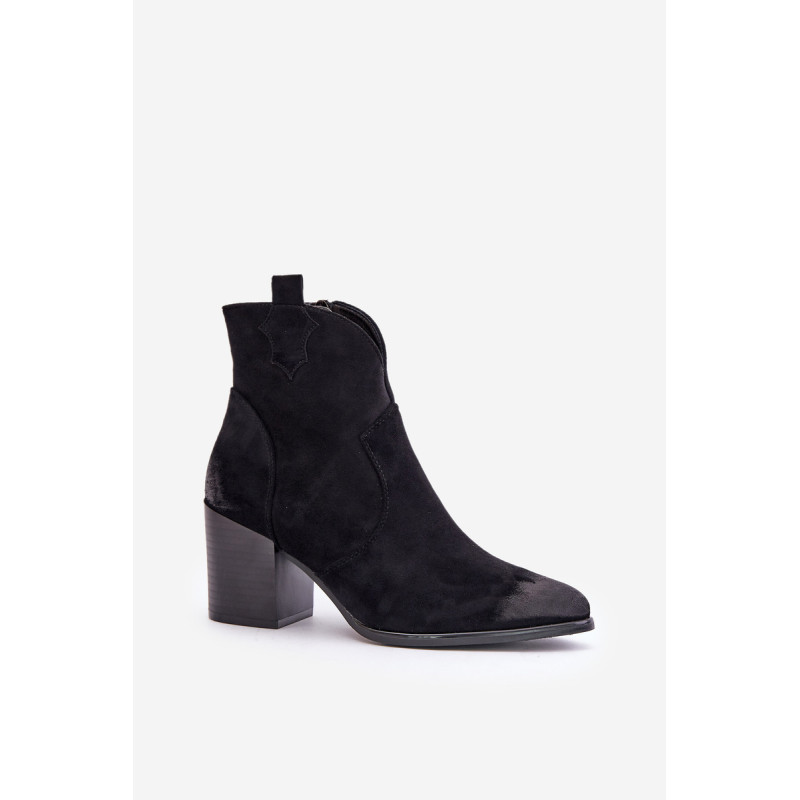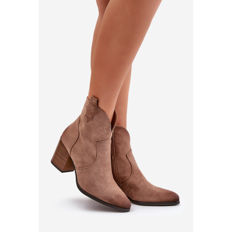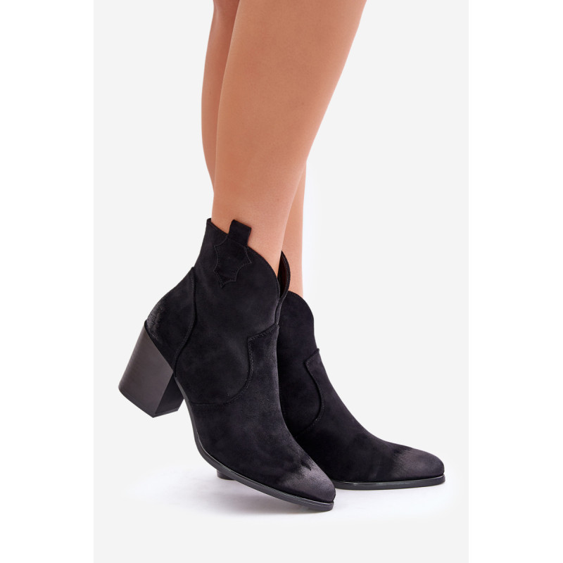 Kaubojiški batai iš ekologiškos zomšos yra madingas pasirinkimas vėsesnėmis dienomis, derinant vakarietišką stilių su elegancija. Užstatyti ant blokinio kulno, jie suteikia komforto ir subtilaus pakilimo. Modelis pasižymi smailiais, nelaimingais kojų pirštais, kurie suteikia charakterio. Užsegamas užtrauktuku, kad būtų patogu nešioti, o veltiniu išklotas vidus garantuoja šiluminį komfortą. Šie kaubojiški batai yra puikus pasirinkimas tiems, kurie vertina originalų stilių ir patogumą. Rinkdamiesi dydį žiūrėkite dydžių lentelę.