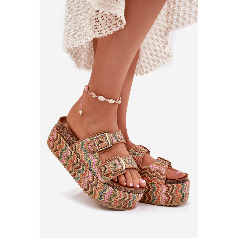 Moteriški sandalai su pynimu, pastatyti ant masyvios platformos, yra madingas ir patogus pasirinkimas šiltoms dienoms. Jie turi dvi reguliuojamas juostas su sagtimis, leidžiančiomis puikiai pritaikyti prie pėdos. Profilinė vidpadis užtikrina komfortą visą dieną. Puikiai tinka vasaros stiliams, derina funkcionalumą su šiuolaikiniu įvaizdžiu. Renkantis dydį, vadovaukitės dydžių lentele.