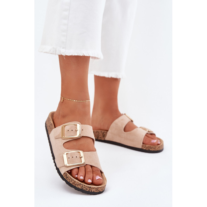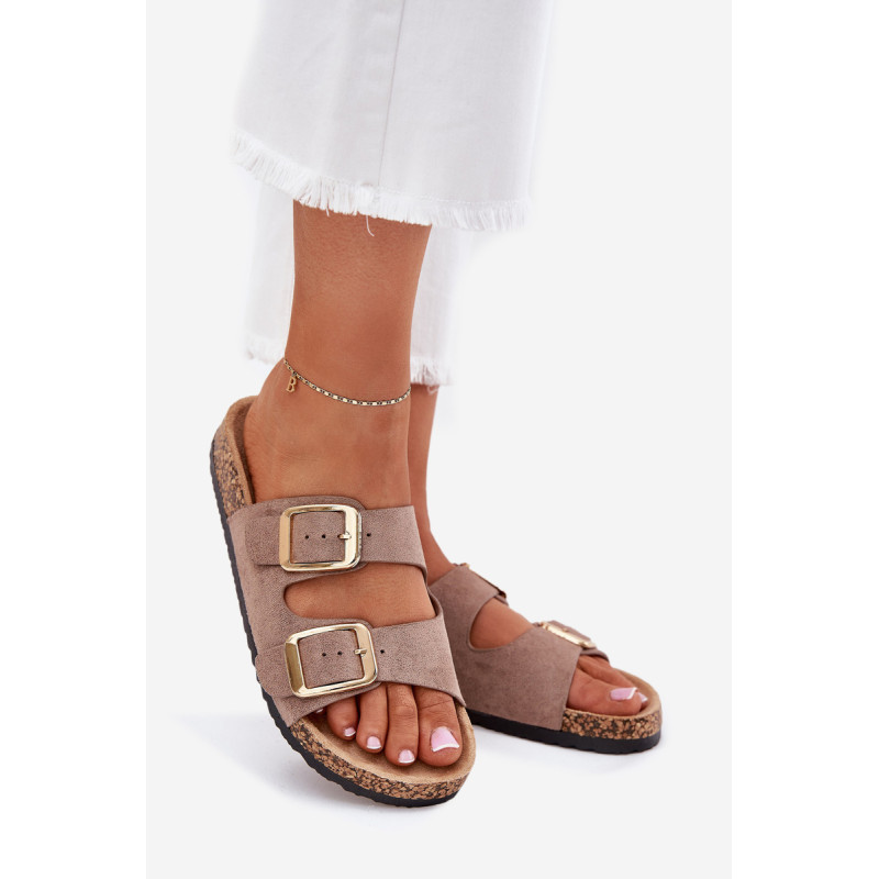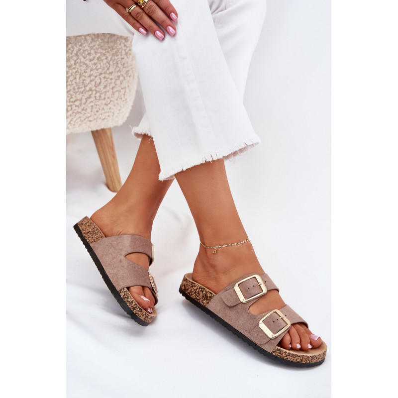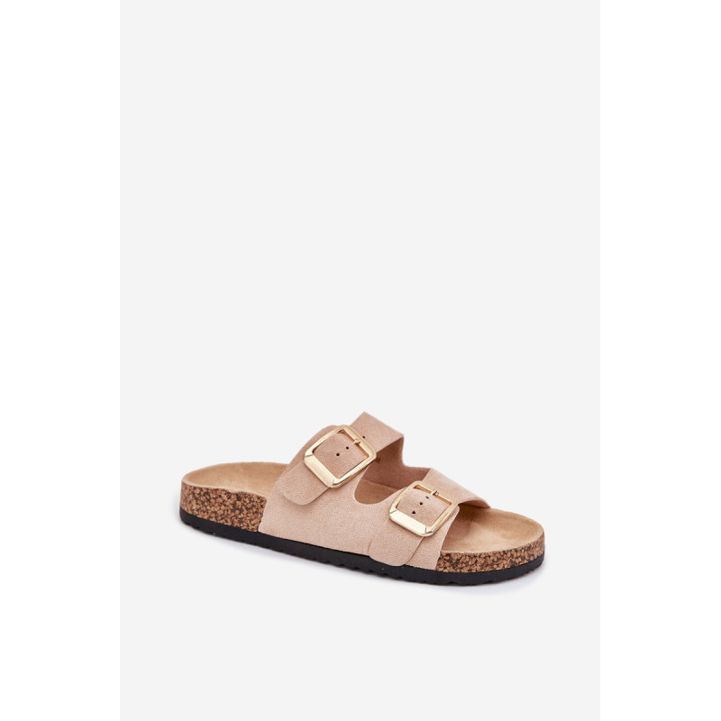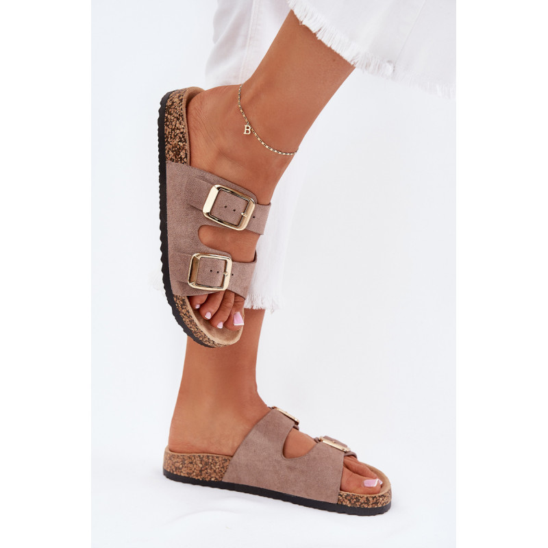 Moteriški šlepetės iš ekokožu ant kamščio pado yra stilingas pasirinkimas šiltoms dienoms. Dvi reguliuojamos dirželiai su auksinėmis sagtimis suteikia joms elegantišką charakterį, o tuo pačiu užtikrina komfortą ir puikų prigludimą. Puikiai tinka kasdieniams stiliams, derina komfortą su madingu įvaizdžiu, idealiai tinka pasivaikščiojimams ar atostogoms. Renkantis dydį, vadovaukitės dydžių lentele.