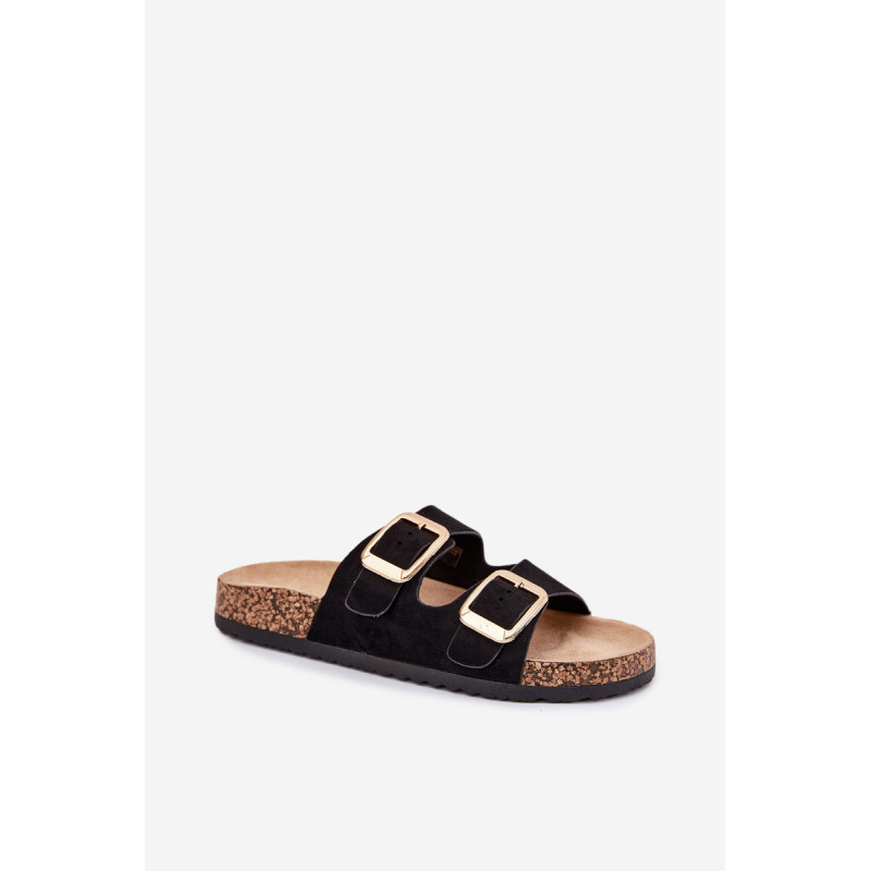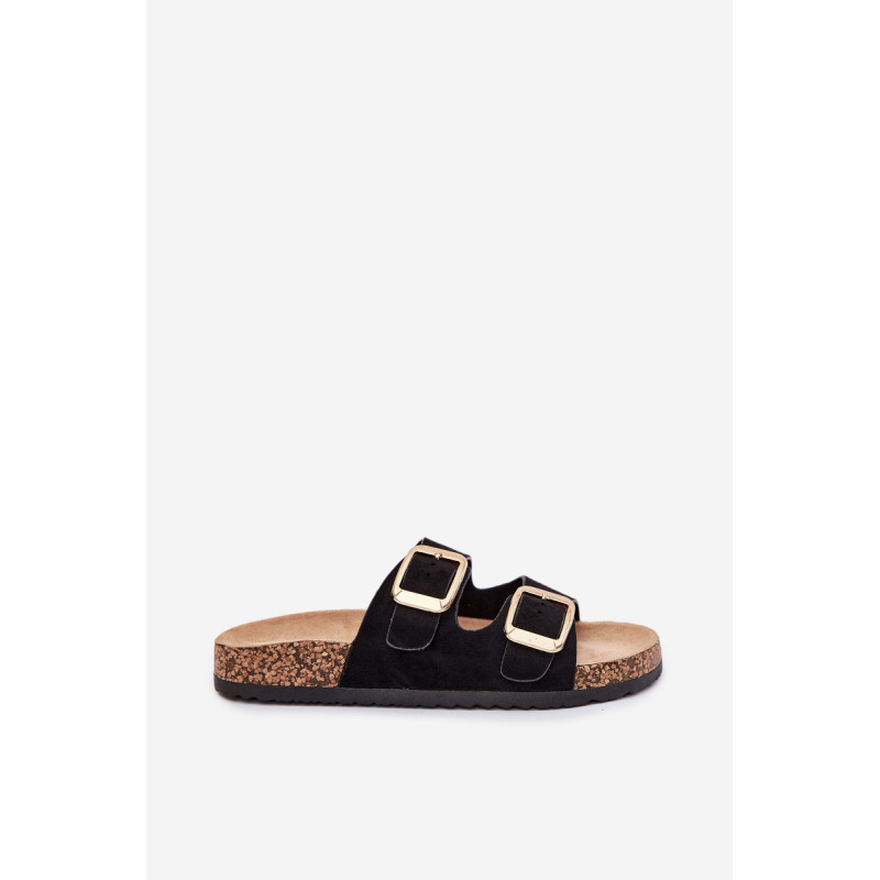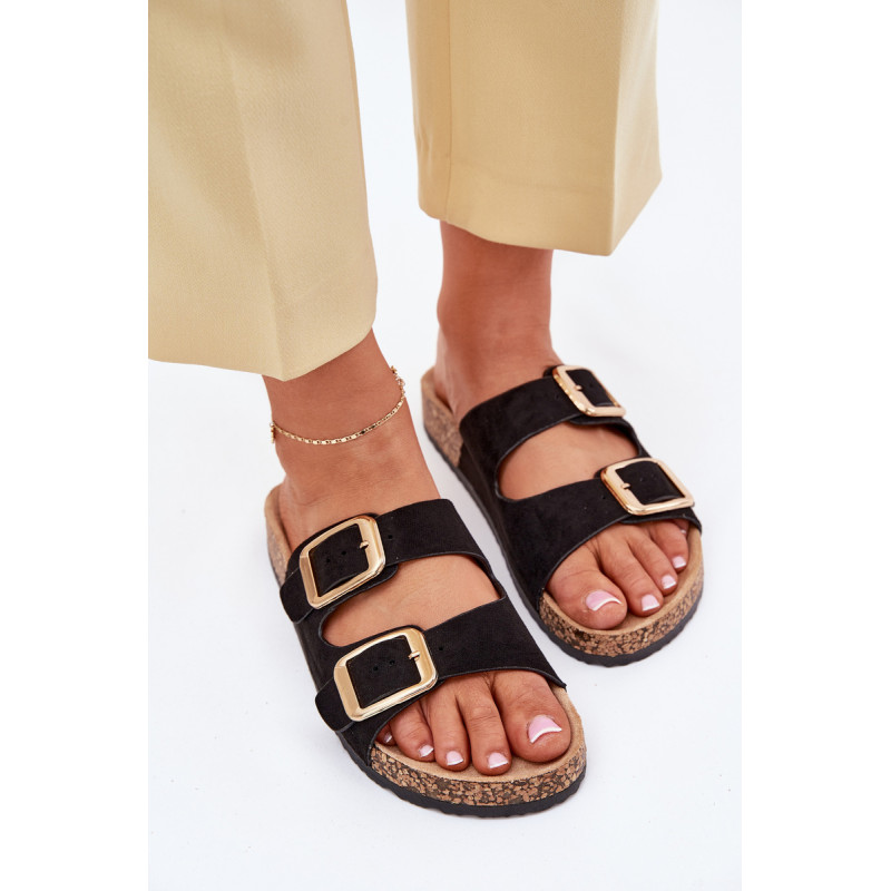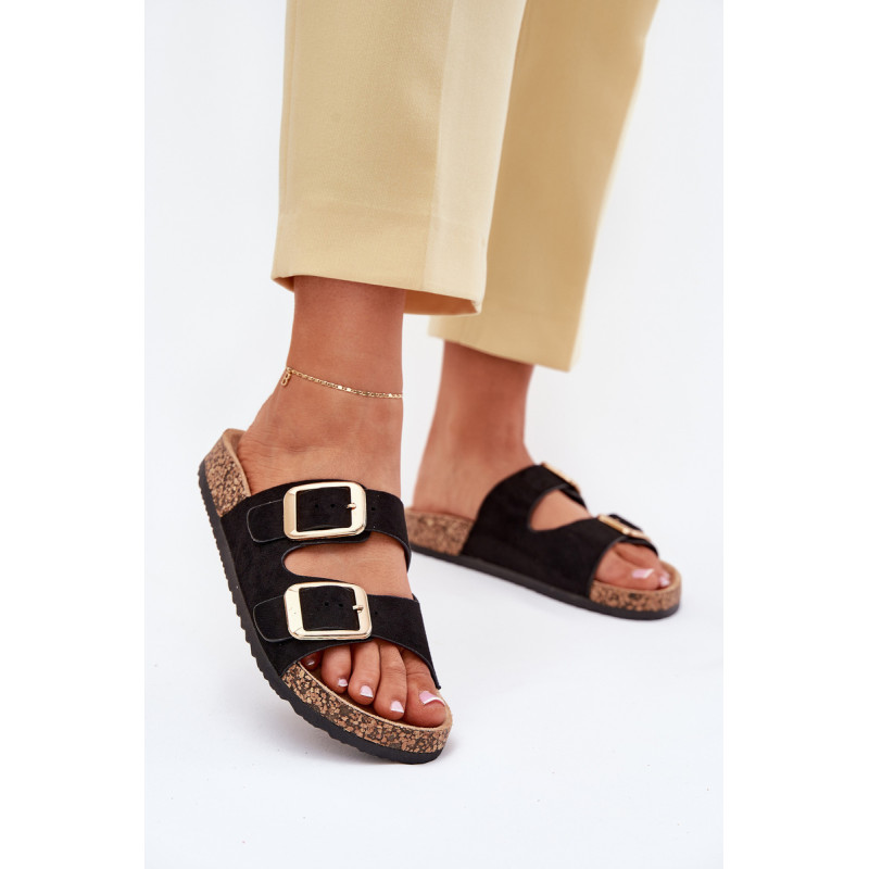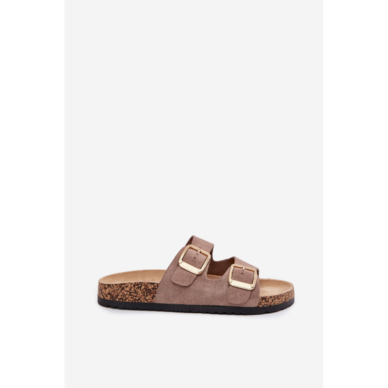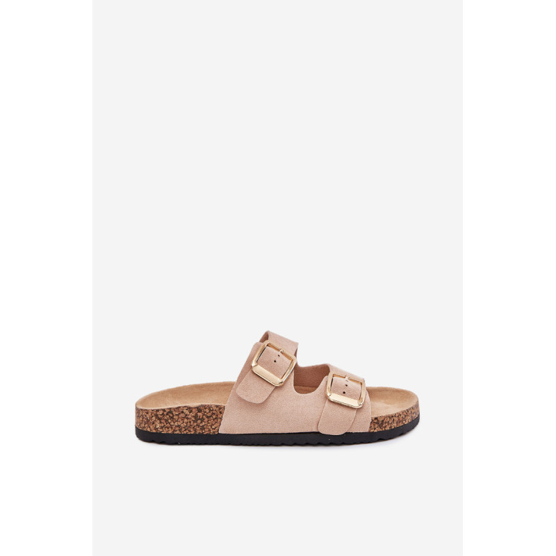 Moteriški šlepetės iš ekokožu ant kamščio pado yra stilingas pasirinkimas šiltoms dienoms. Dvi reguliuojamos dirželiai su auksinėmis sagtimis suteikia joms elegantišką charakterį, o tuo pačiu užtikrina komfortą ir puikų prigludimą. Puikiai tinka kasdieniams stiliams, derina komfortą su madingu įvaizdžiu, idealiai tinka pasivaikščiojimams ar atostogoms. Renkantis dydį, vadovaukitės dydžių lentele.