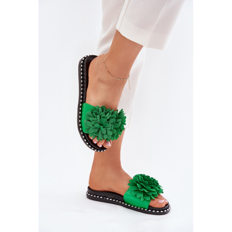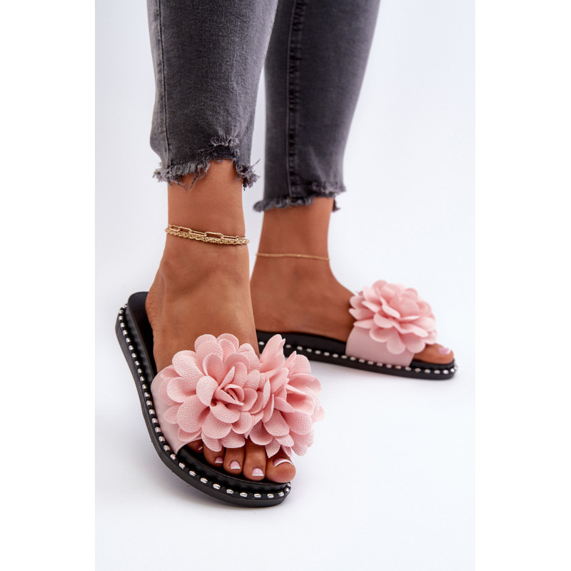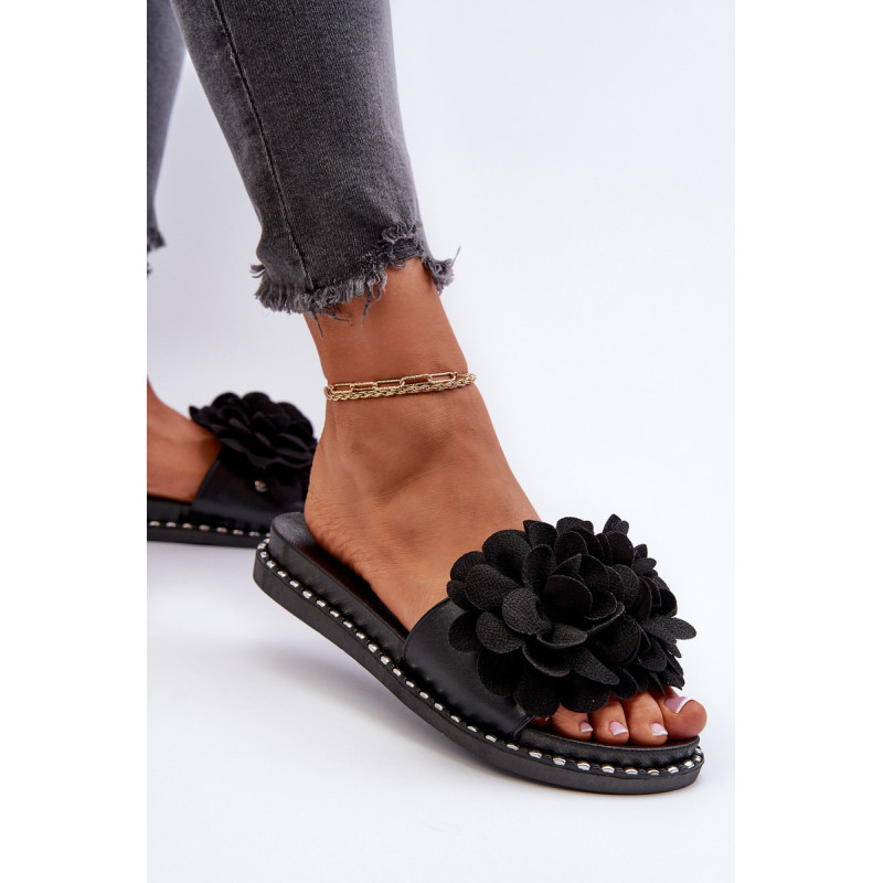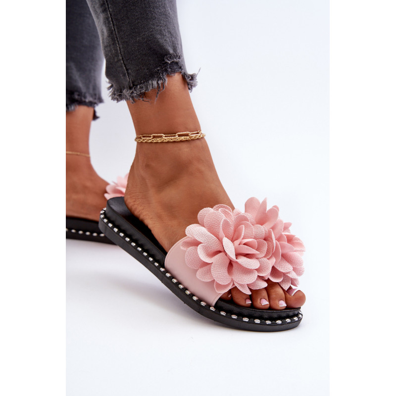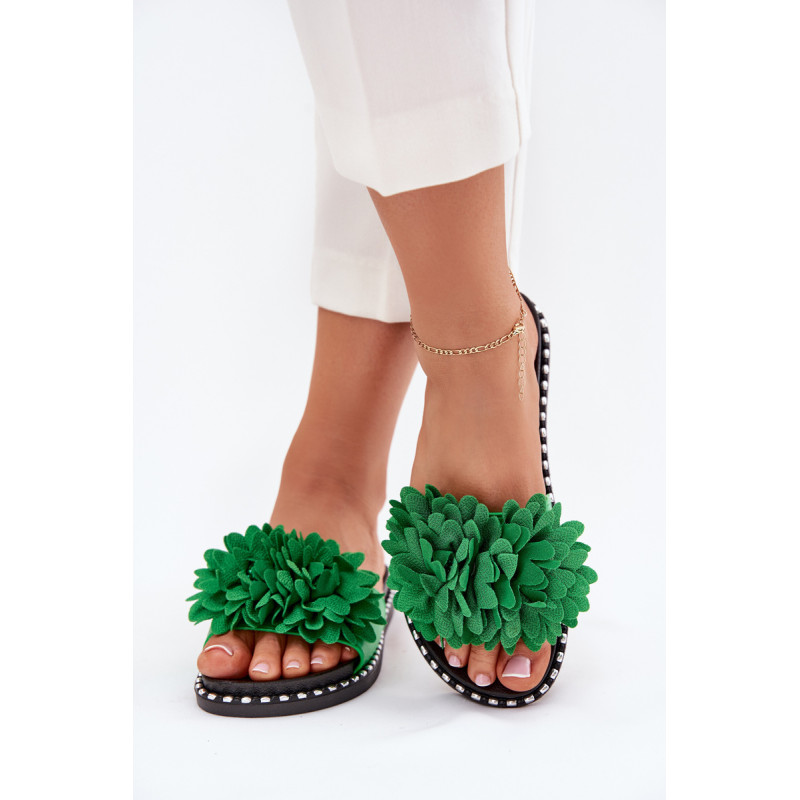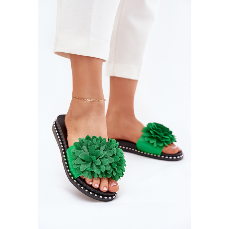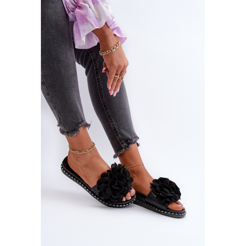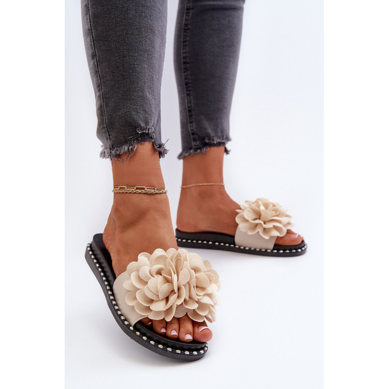 Moteriškos šlepetės su puošniais papuošimais priekyje. Vidpadis ir padas pagaminti iš guminės medžiagos. Dekoracija aplink padą. Jie puikiai tiks karštomis dienomis! Klasikinis stilius, kurį turėtumėte turėti!