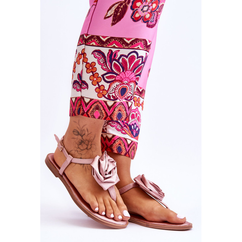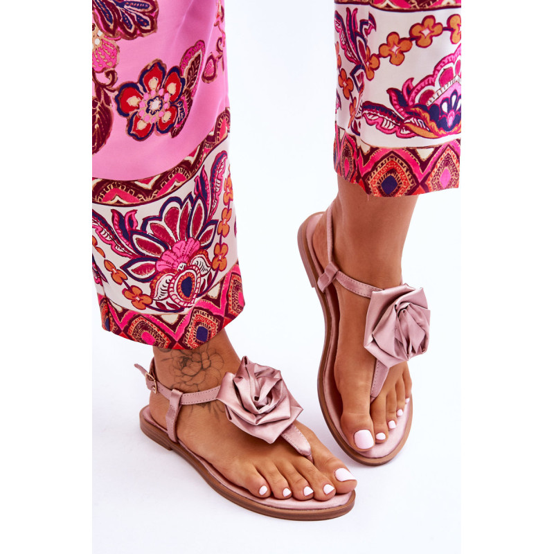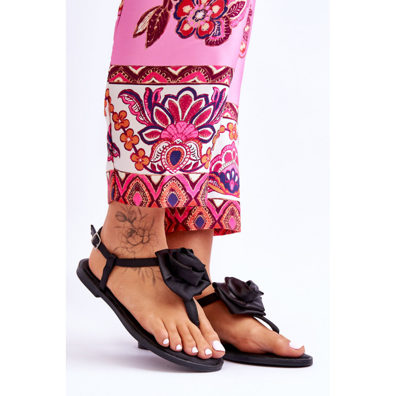 Moteriškos basutės yra pagamintos iš satiną imituojančios tekstilės medžiagos. Dekoruota didele, medžiagine rože viduryje. Šlepetės stiliaus basutės ant plokščio kulno. Jie užsegami reguliuojamu dirželiu su sagtimi. Minkštas vidpadis pagamintas iš medžiagos. Rinkdamiesi dydį, vadovaukitės dydžių lentele.