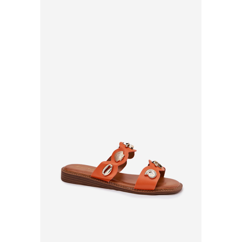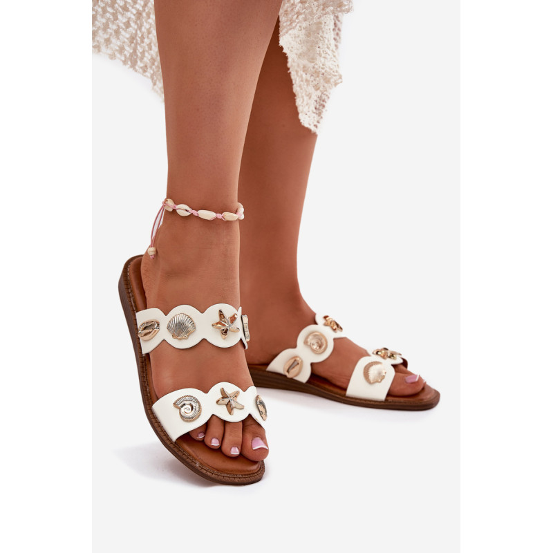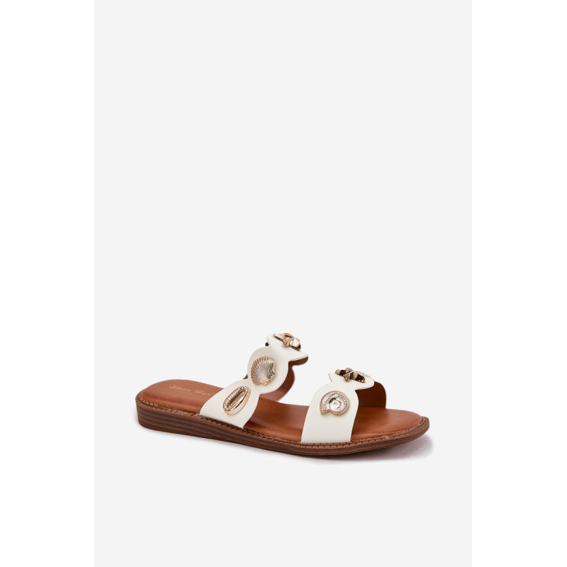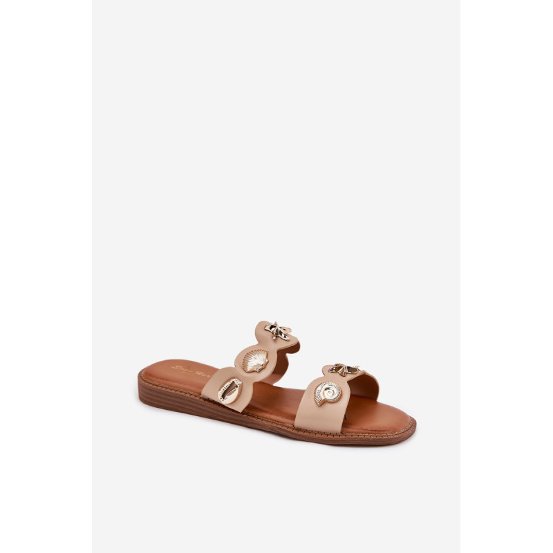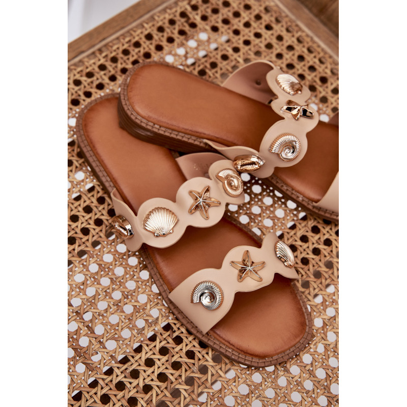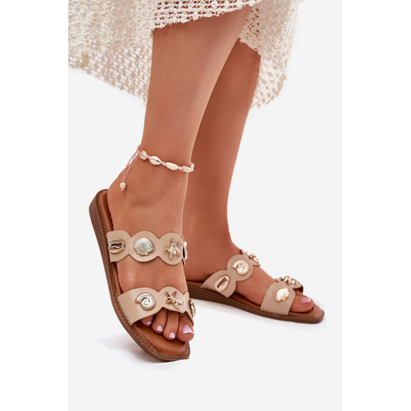 Moteriški šlepetės, pagamintos iš eko odos, yra stilingas pasiūlymas šiltoms dienoms. Sumontuotos ant plokščio kulno, jos užtikrina komfortą visą dieną. Unikalūs auksiniai, jūriniai ženkliukai traukia akį, suteikdami išskirtinį charakterį. Minkšta padas užtikrina komfortą, o jų elegantiška išvaizda puikiai dera su vasaros stiliais, derindama funkcionalumą su madingu akcentu. Renkantis dydį, vadovaukitės dydžių lentele.