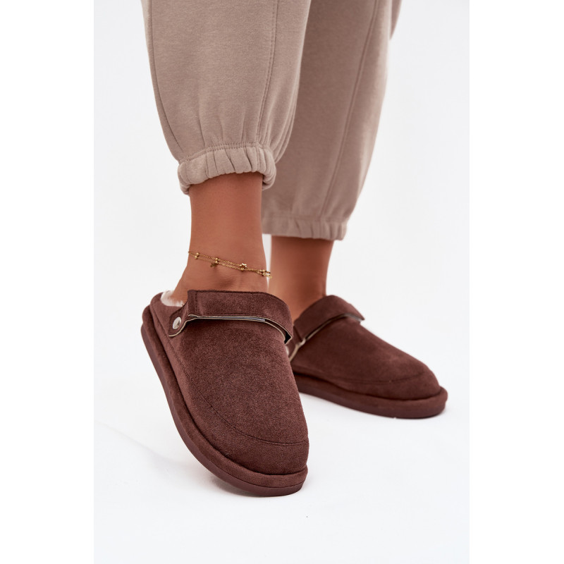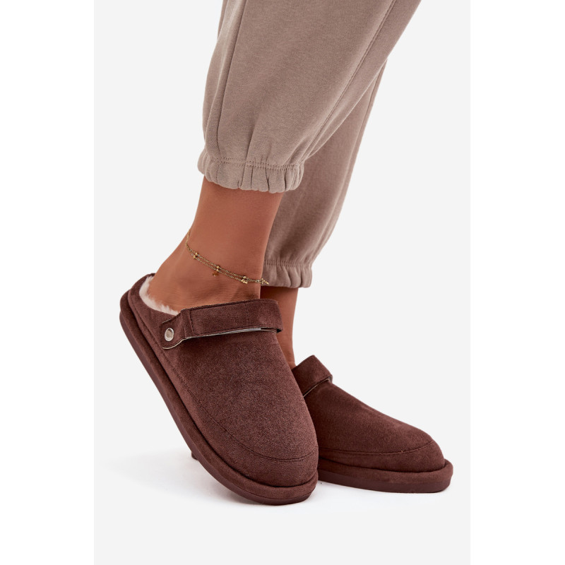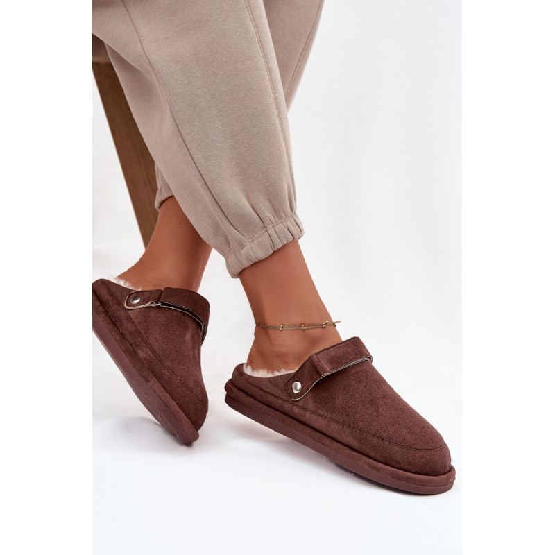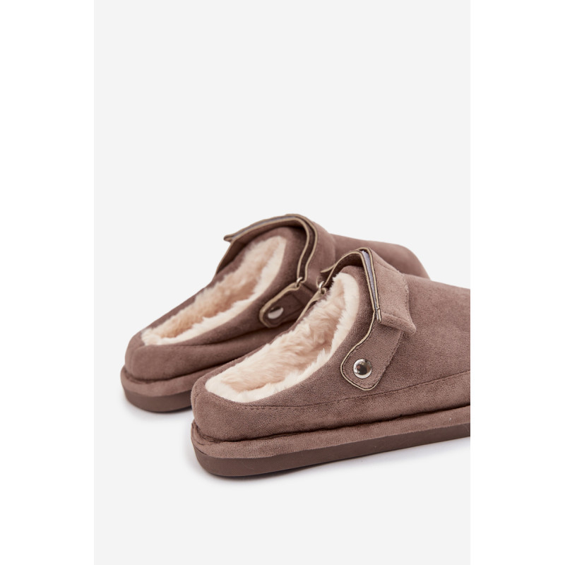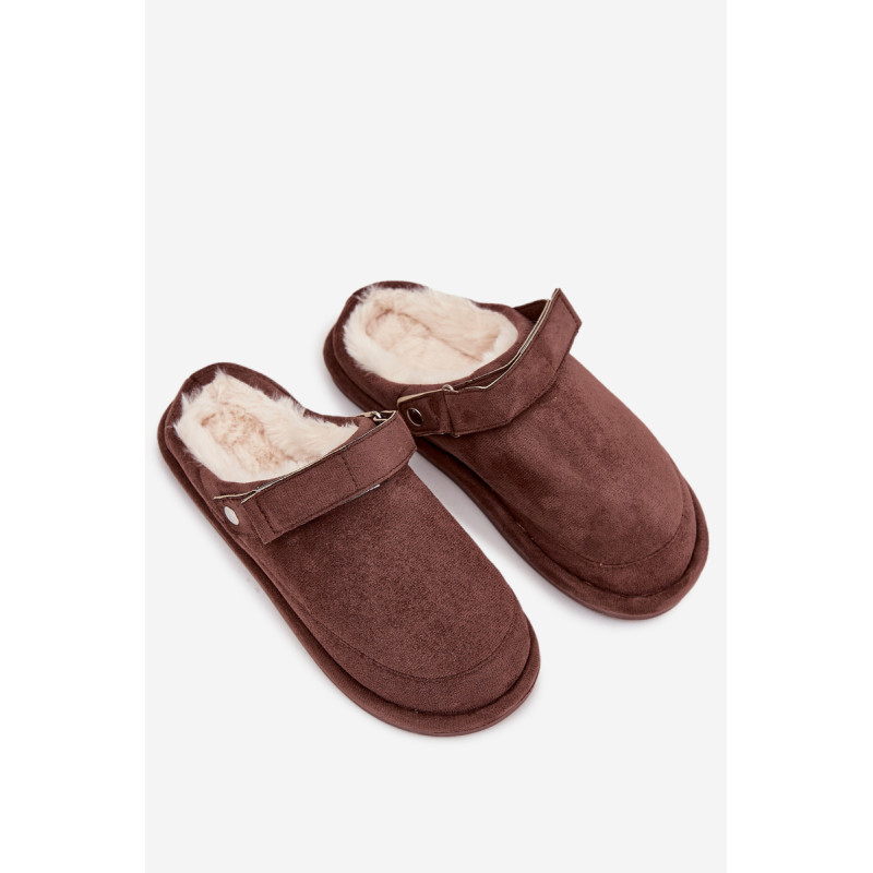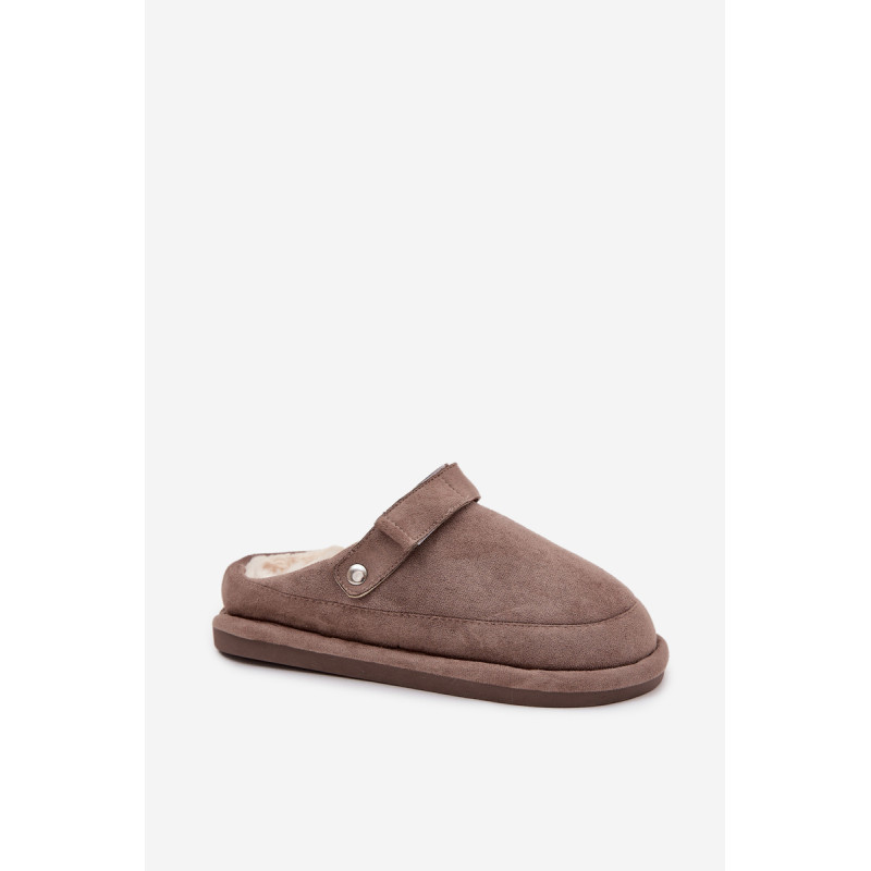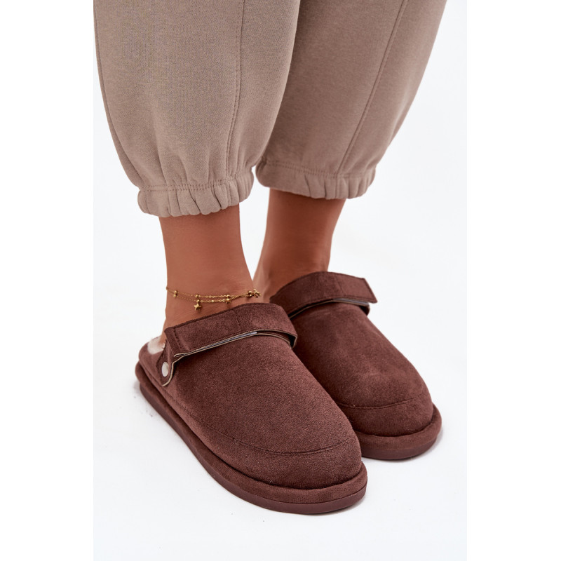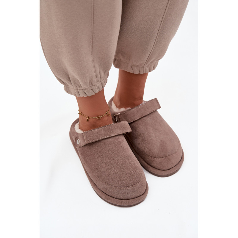 Moteriškos šlepetes, pagamintas iš minkštos ekologiškos zomšos medžiagos, yra patogus ir praktiškas pasirinkimas šalto sezono dienoms. Jos turi guminę pado dalį, užtikrinančią stabilumą ir patogumą vaikščiojant namuose. Apvalios, uždaros nosys pabrėžia klasikinį avalynės išvaizdą, o nuimama juosta su Velcro užsegimu palengvina pritaikymą prie pėdos ir prideda funkcionalumo. Vidus, išklotas minkštu kailiu, garantuoja šilumą ir malonią apkabinimą, todėl šios šlepetės yra ideali namų naudojimui. Renkantis dydį, vadovaukitės dydžių lentele.