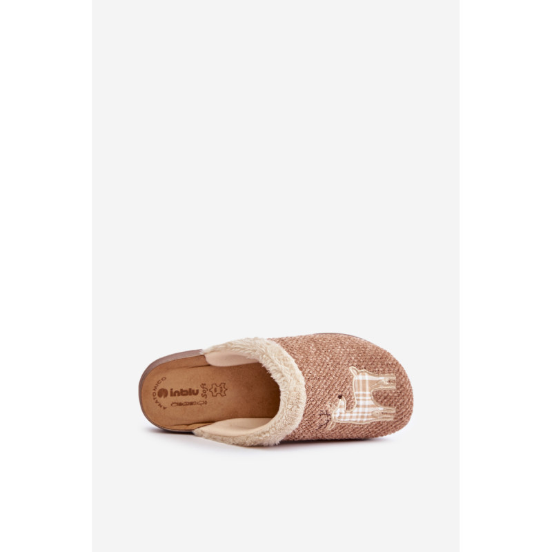 Ženski domači copati blagovne znamke INBLU. Narejeni so iz tekstilnega materiala. Zaradi profilirane notranje podplate zagotavljajo udobje in prijetnost pri nošenju. Ta obutev je še posebej priporočljiva za osebe z občutljivimi in alergičnimi stopali. Profilirana podplat je narejena iz elastičnega, lahkega materiala, kar dodatno povečuje udobje in prijetnost uporabe! Pri izbiri velikosti si oglejte tabelo velikosti.