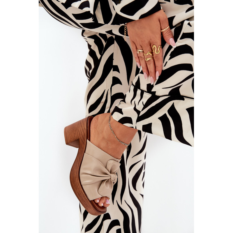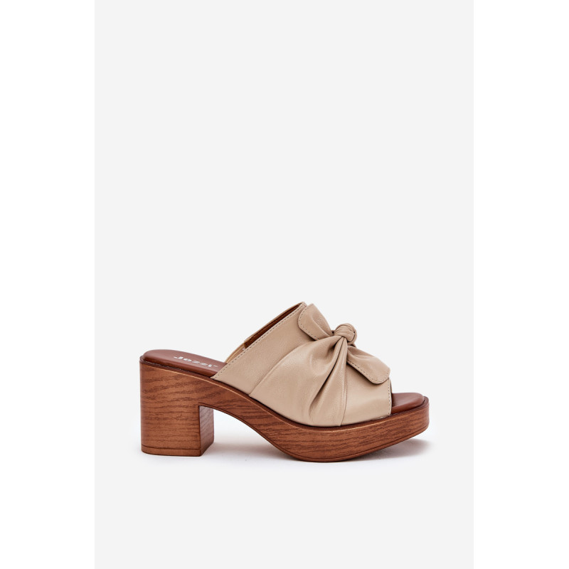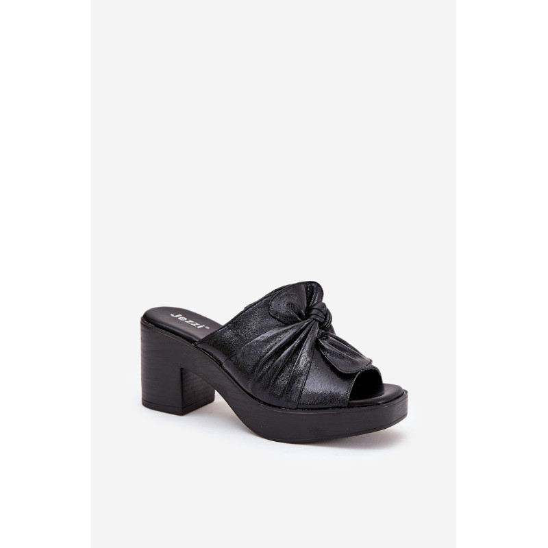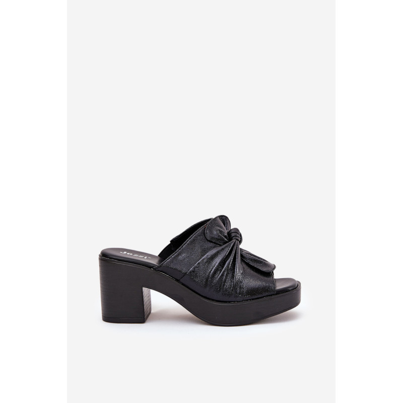 Moteriški šlepetės iš Jezzi prekės ženklo, pagamintos iš ekologiškos odos, siūlo eleganciją, derinamą su komfortu. Jos turi masyvų blokinį kulną. Šlepečių priekinę dalį puošia surištas medžiaga. Šis modelis yra puikus pasirinkimas moterims, ieškančioms moteriško stiliaus ir modernaus įvaizdžio derinio. Puikiai tinka tiek kasdieniams įvaizdžiams, tiek ypatingoms progoms. Renkantis dydį, vadovaukitės dydžių lentele.