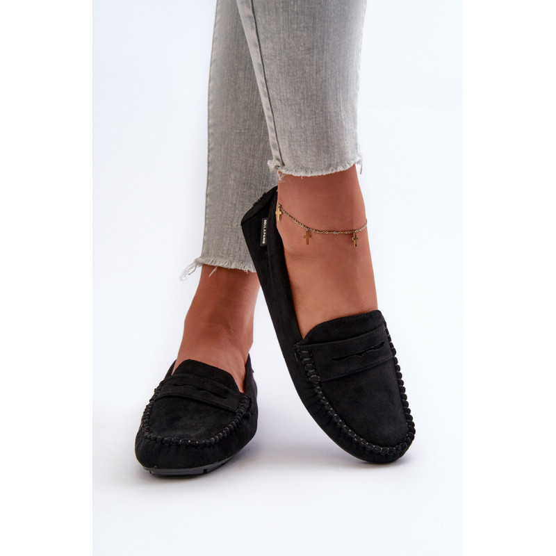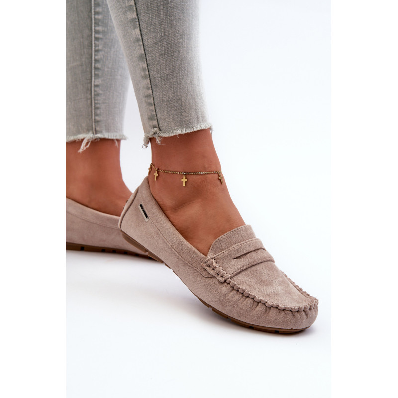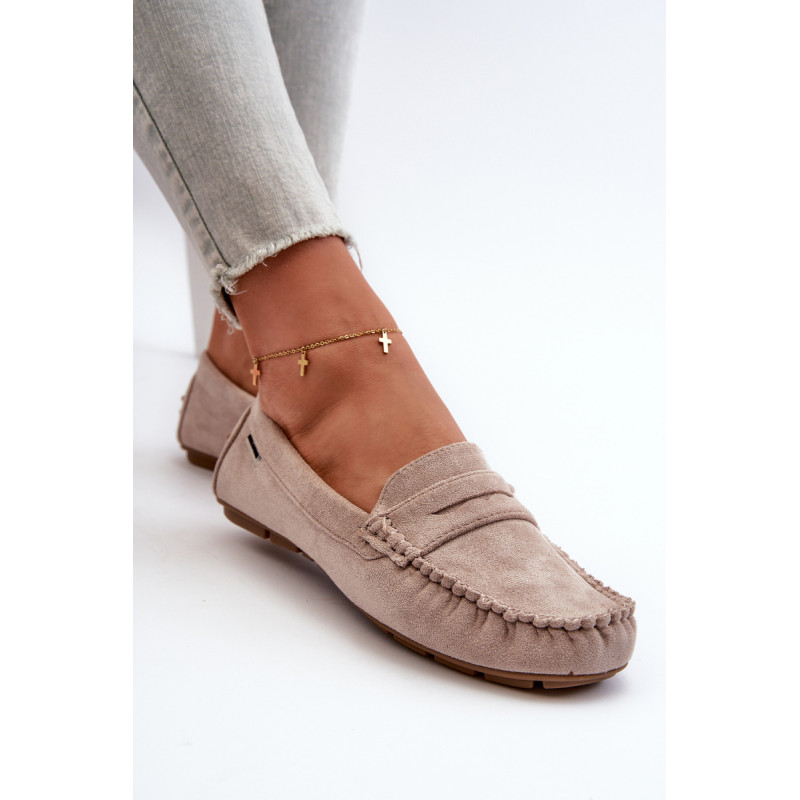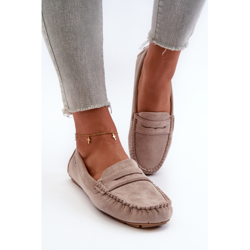 Moteriški mokasinai, pagaminti iš ekologiškos zomšos. Nustatyti ant platformos. Suapvalinti kojų pirštai. Šis modelis turi minkštą vidpadį iš natūralios odos, kuris suteiks komforto dėvint. Maži pakabukai priekyje. Klasikinis kirpimas, kurį galite derinti su daugeliu pavasario-vasaros stilių! Rinkdamiesi dydį žiūrėkite dydžių lentelę.