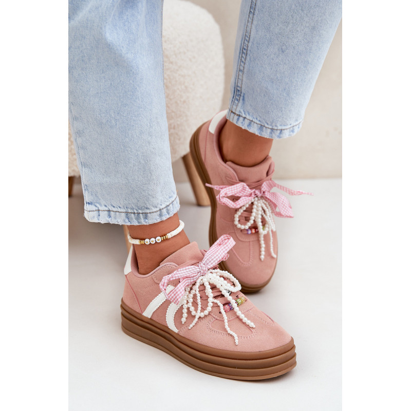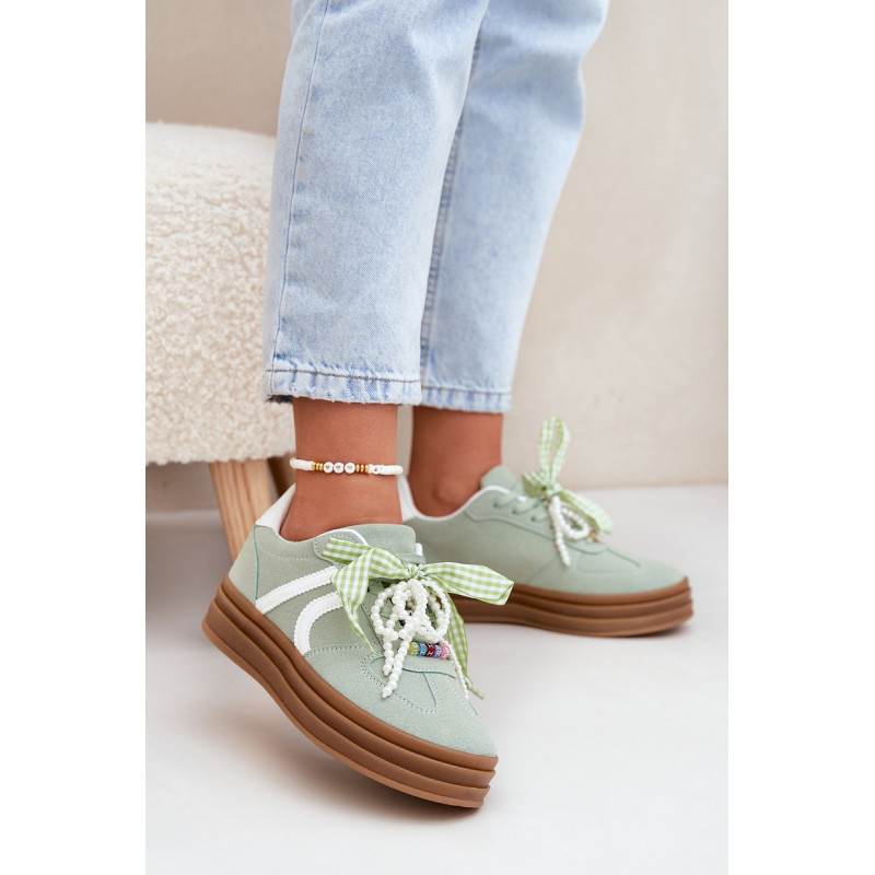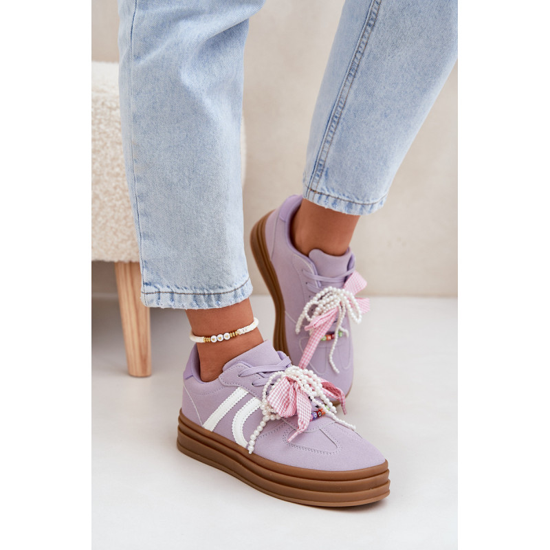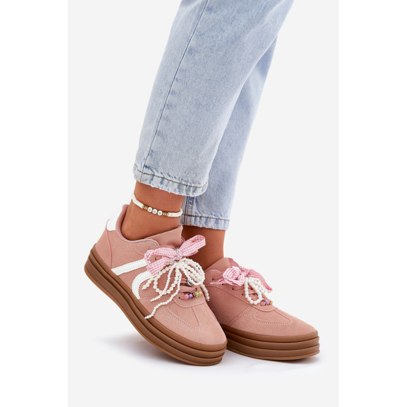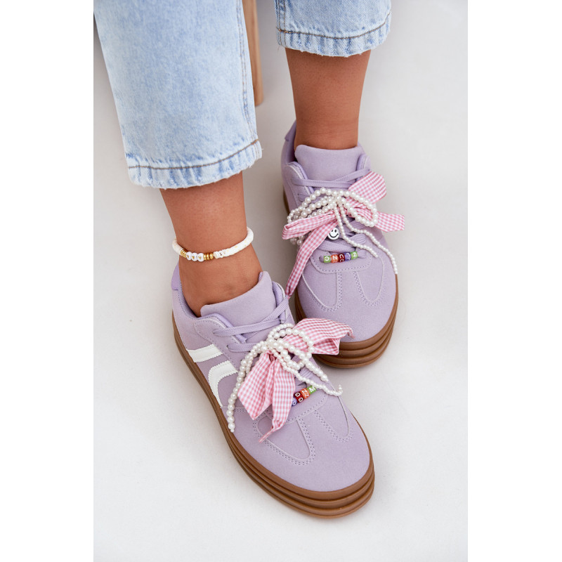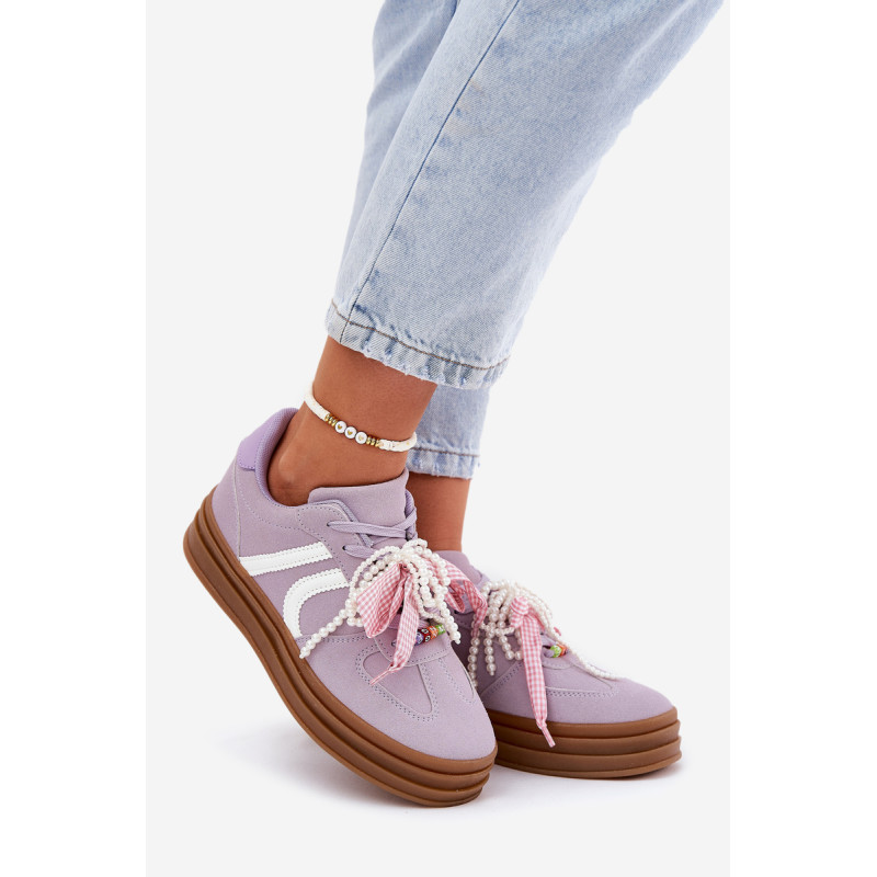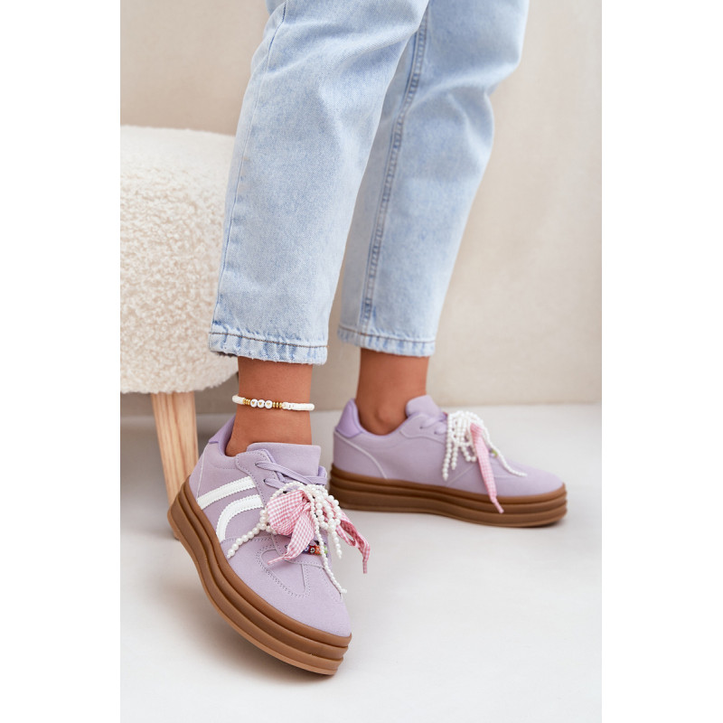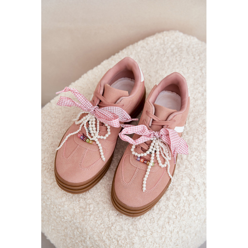 Stilingi sneakers iš ekosuede yra puikus pasirinkimas tiems, kurie vertina komfortą ir madingą išvaizdą. Dėl platformos avalynė ne tik pakelia siluetą, bet ir puikiai pabrėžia šiuolaikinį stilių. Šnūrų dekoracijos su mielomis segtukais suteikia mergaitiško žavesio ir unikalumo. Šie sneakers puikiai tinka kasdieniams aprangoms! Renkantis dydį, vadovaukitės dydžių lentele.