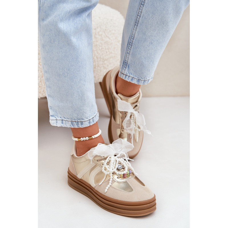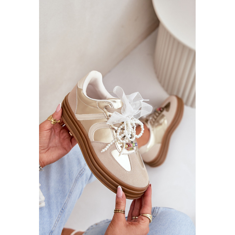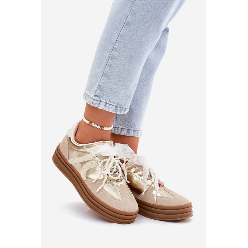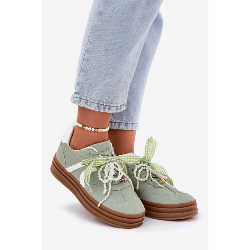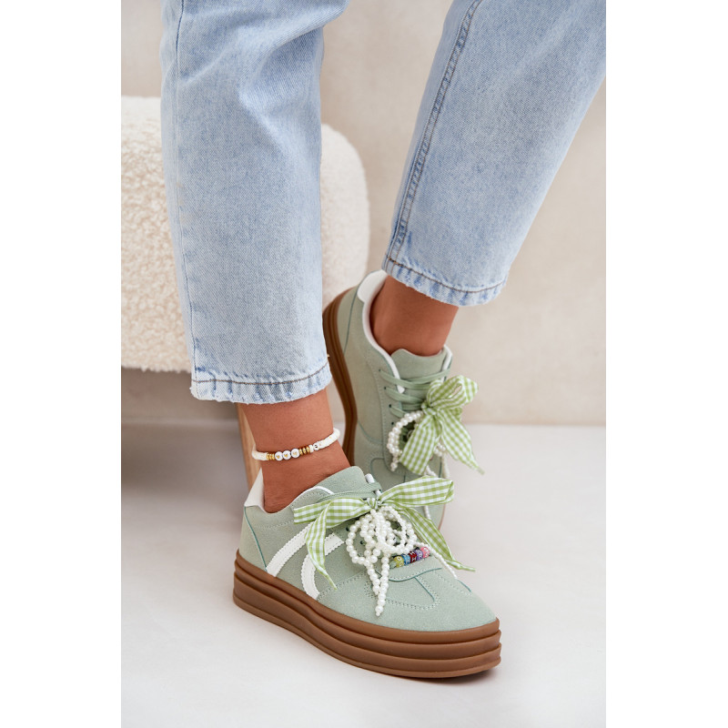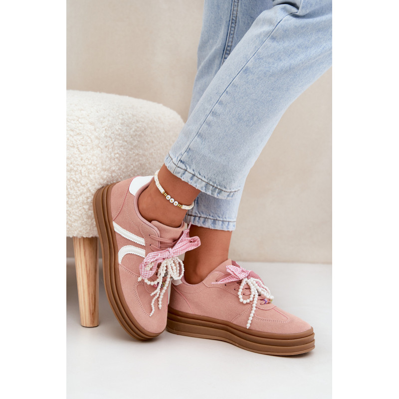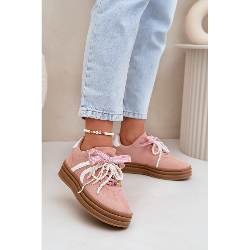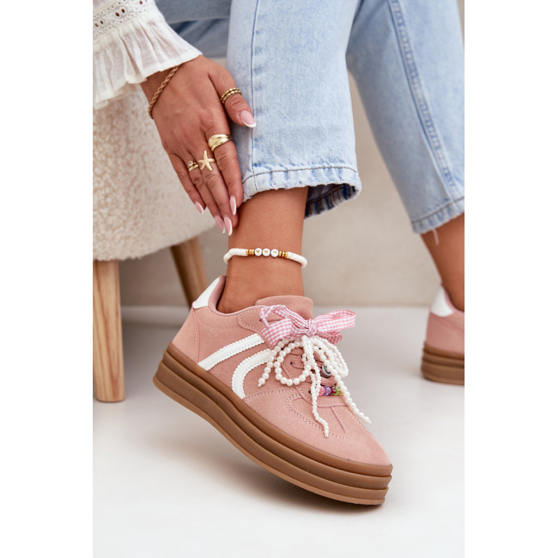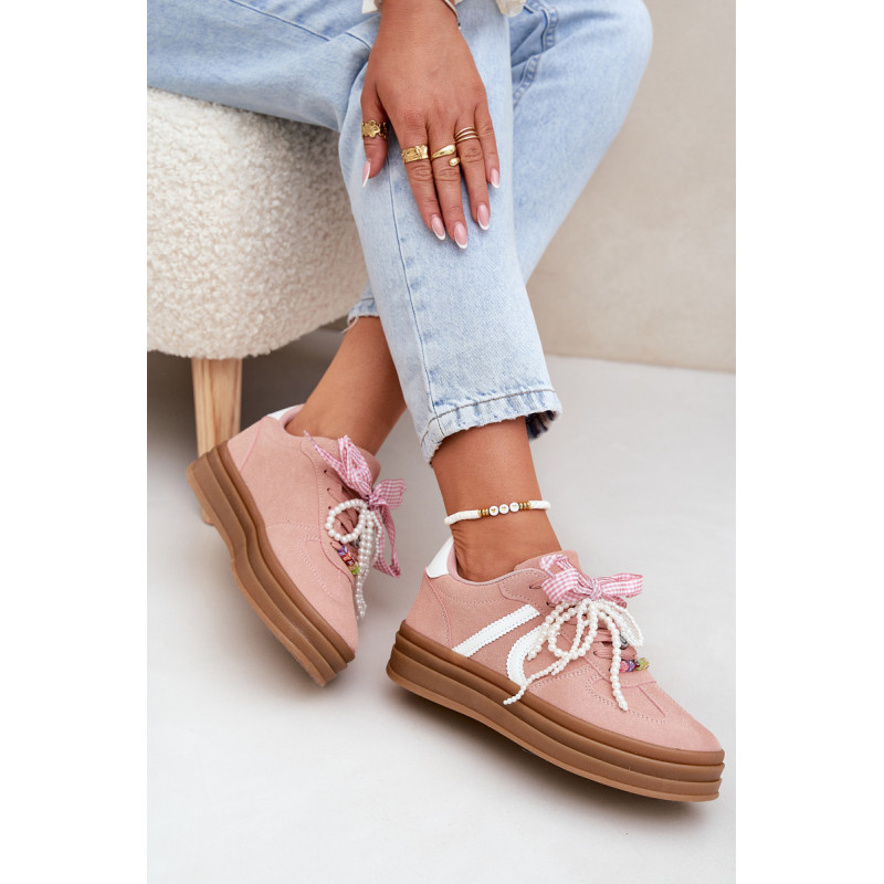 Stilingi sneakers iš ekosuede yra puikus pasirinkimas tiems, kurie vertina komfortą ir madingą išvaizdą. Dėl platformos avalynė ne tik pakelia siluetą, bet ir puikiai pabrėžia šiuolaikinį stilių. Šnūrų dekoracijos su mielomis segtukais suteikia mergaitiško žavesio ir unikalumo. Šie sneakers puikiai tinka kasdieniams aprangoms! Renkantis dydį, vadovaukitės dydžių lentele.