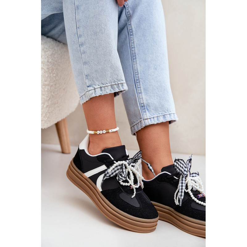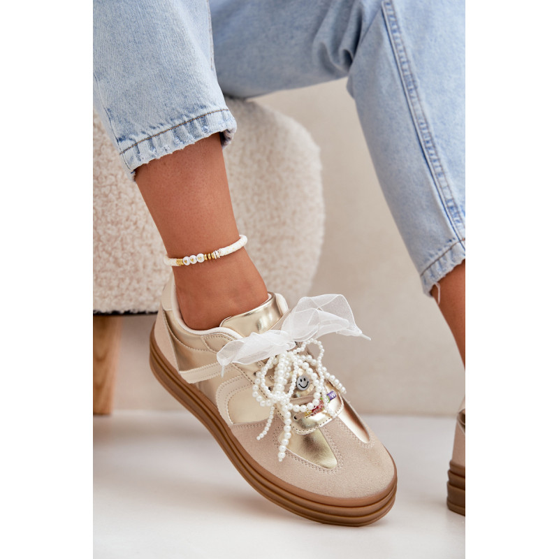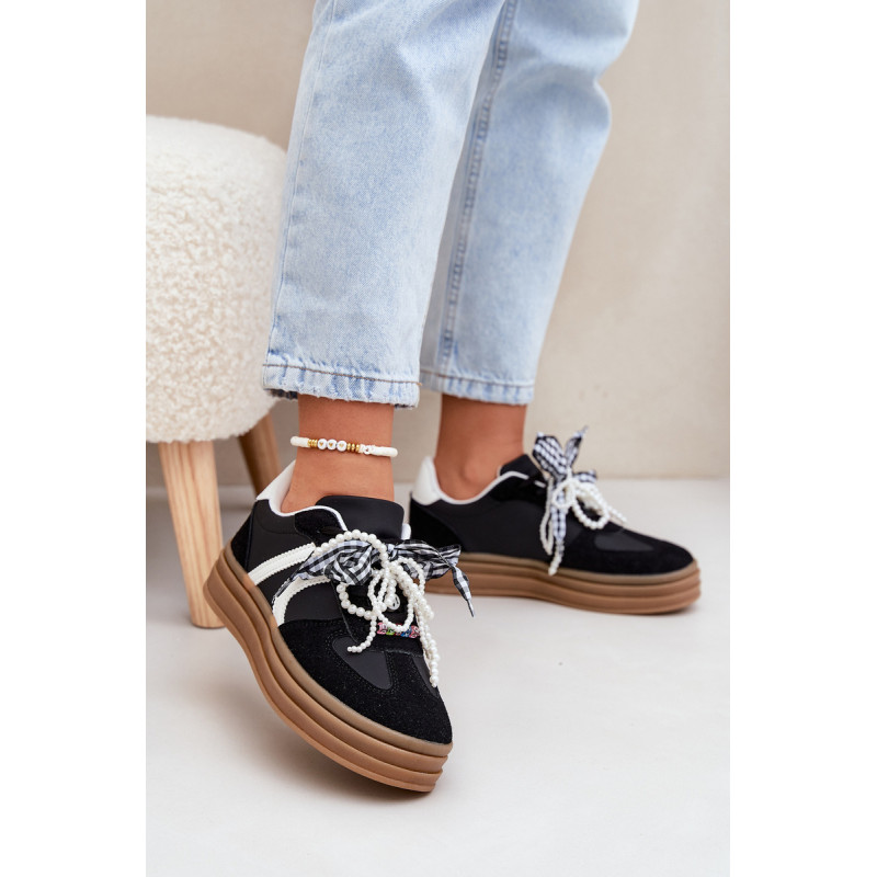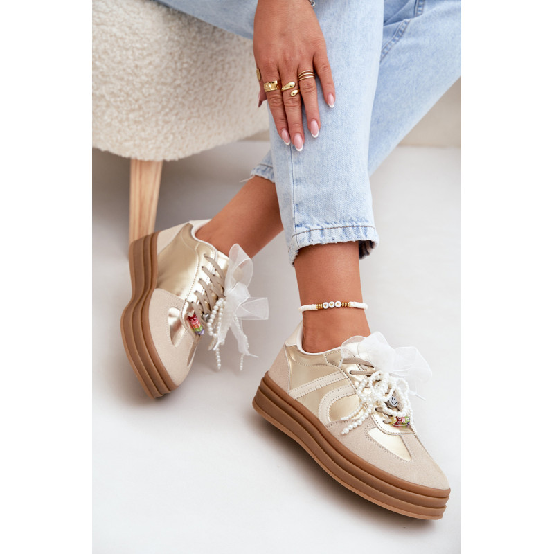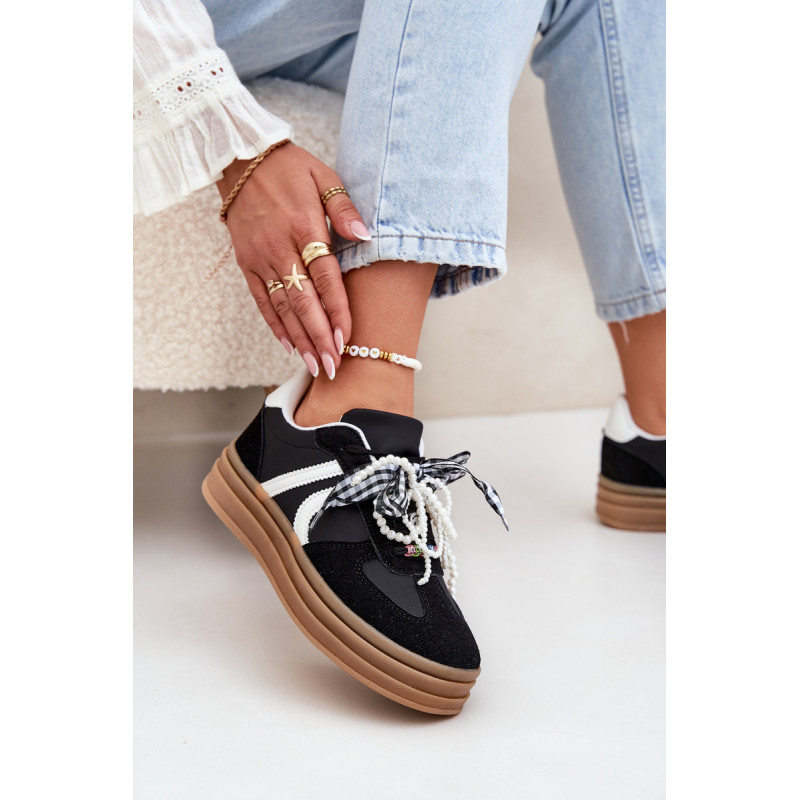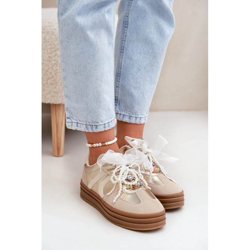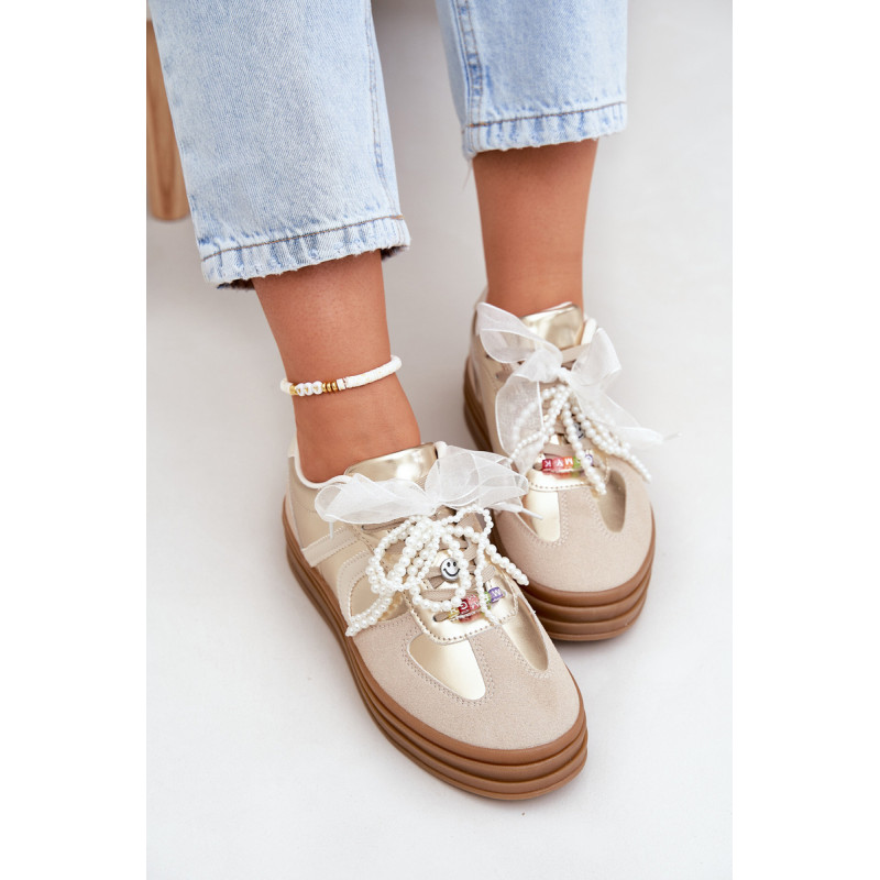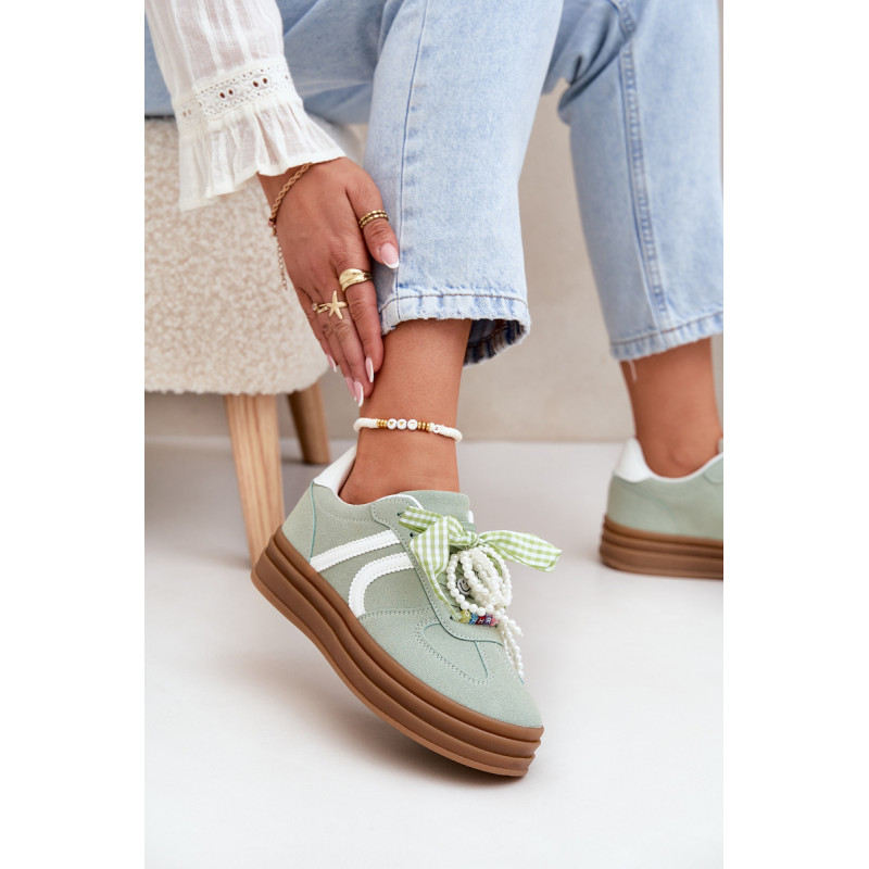 Stilingi sneakers iš ekosuede yra puikus pasirinkimas tiems, kurie vertina komfortą ir madingą išvaizdą. Dėl platformos avalynė ne tik pakelia siluetą, bet ir puikiai pabrėžia šiuolaikinį stilių. Šnūrų dekoracijos su mielomis segtukais suteikia mergaitiško žavesio ir unikalumo. Šie sneakers puikiai tinka kasdieniams aprangoms! Renkantis dydį, vadovaukitės dydžių lentele.