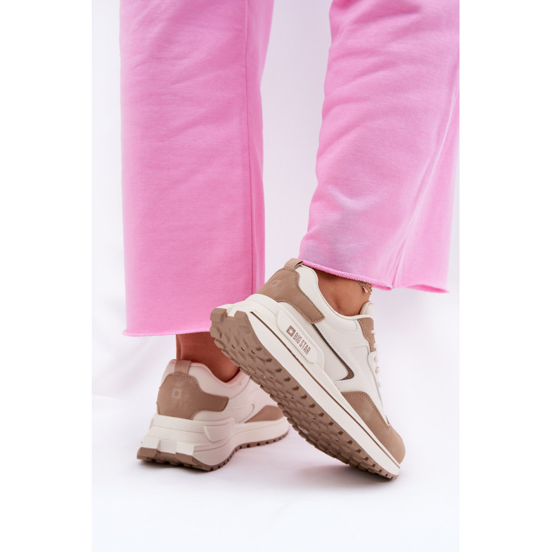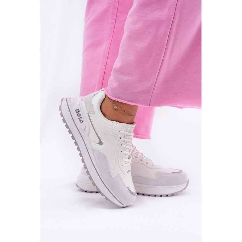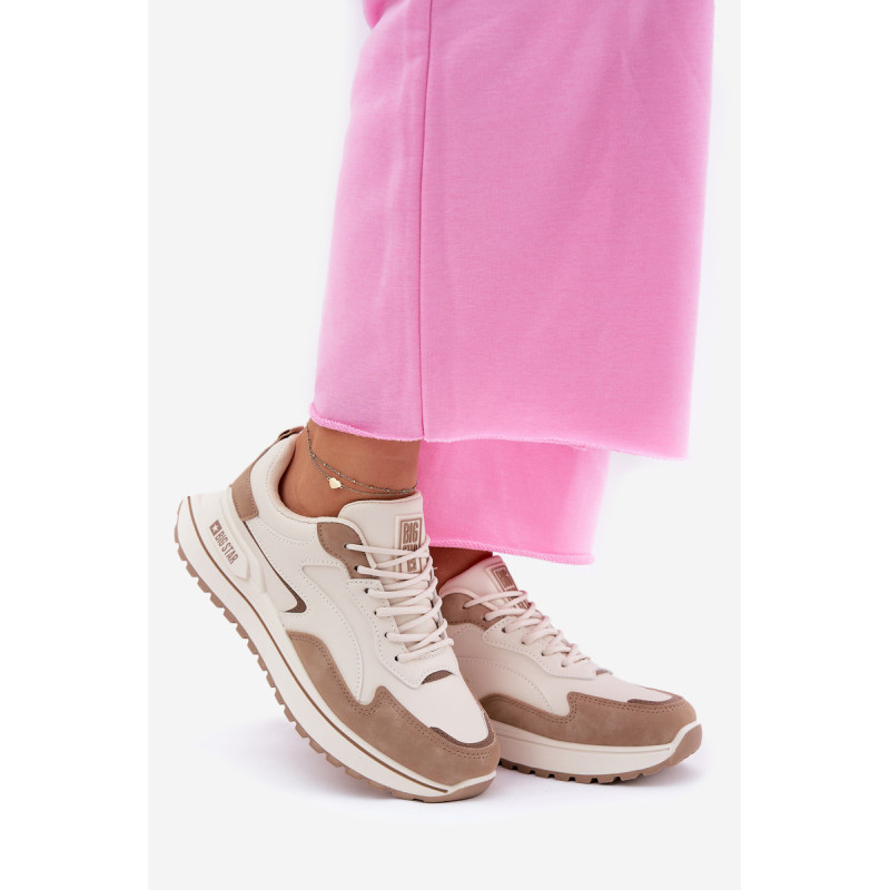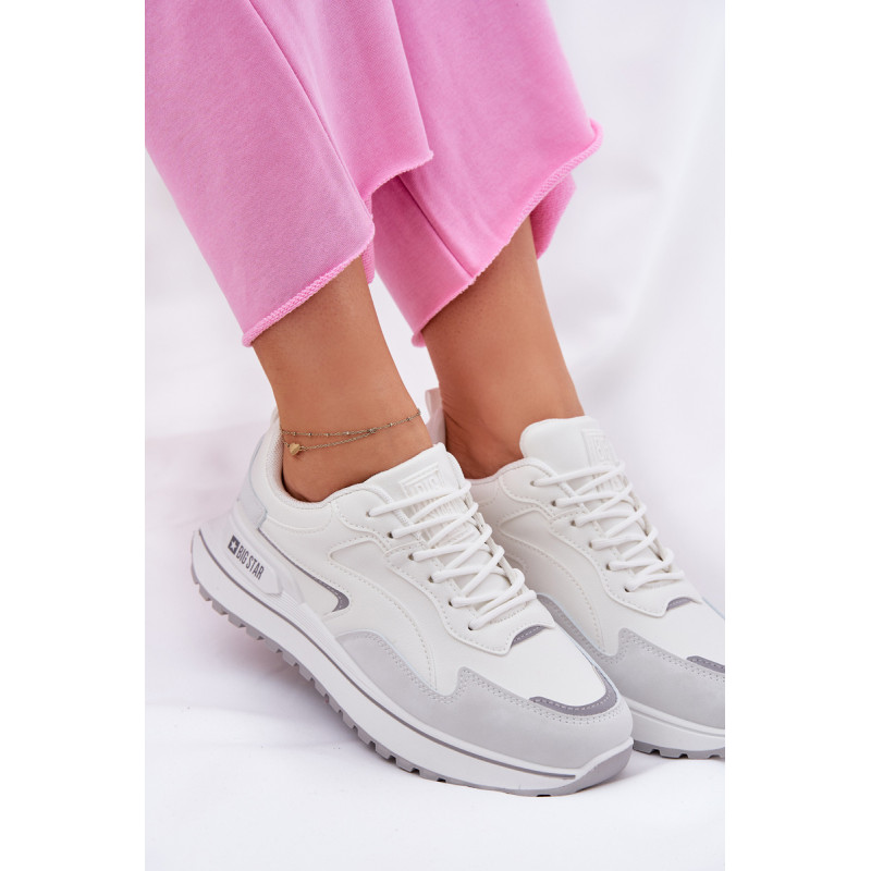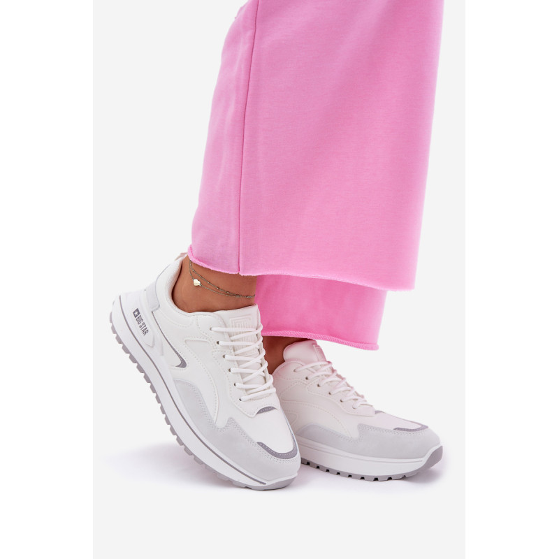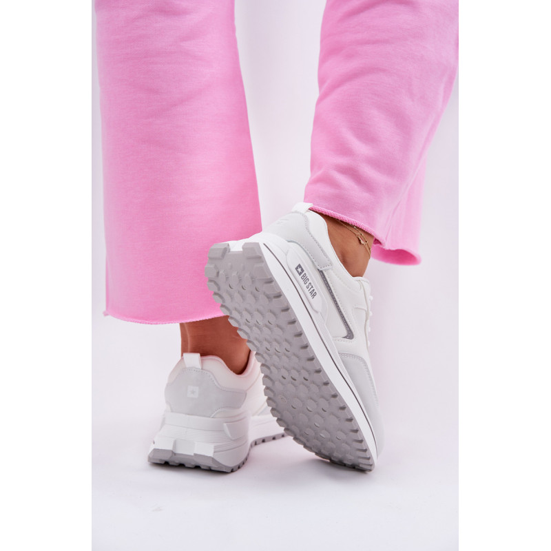 Moteriški sportbačiai iš Big Star prekės ženklo. Pagaminti iš ekologiškos odos. Įrengti ant platformos. Batų pirštai yra apvalūs, todėl visą dieną malonu juos dėvėti. HI-POLY SYSTEM padas, pagamintas iš perdirbtų medžiagų, pasižymi atsparumu dilimui ir deformacijoms, taip pat efektyviai sugeria drėgmę ir sugeria smūgius, užtikrindamas komfortą intensyvių veiklų metu. Ši avalynė derina funkcionalumą su madingu įvaizdžiu. Renkantis dydį, vadovaukitės dydžių lentele.