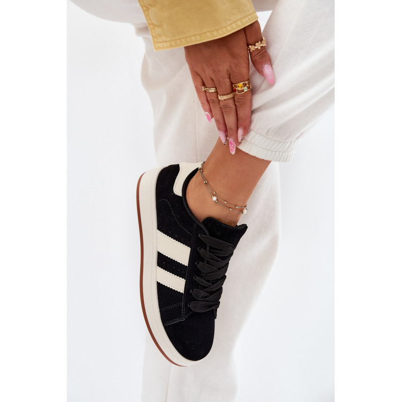 Moteriški sportbačiai iš ekologiško zomšos pasižymi plačiais, suapvalintais pirštais. Išimamas padojys, pagamintas iš putų ir padengtas medžiaga, garantuoja papildomą komfortą ir amortizaciją. Šie madingi sportbačiai yra puikus pasirinkimas kasdieniniams drabužiams. Renkantis dydį, vadovaukitės dydžių lentele.