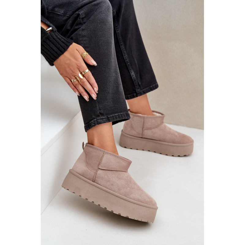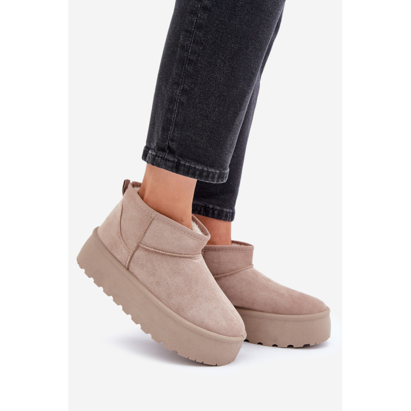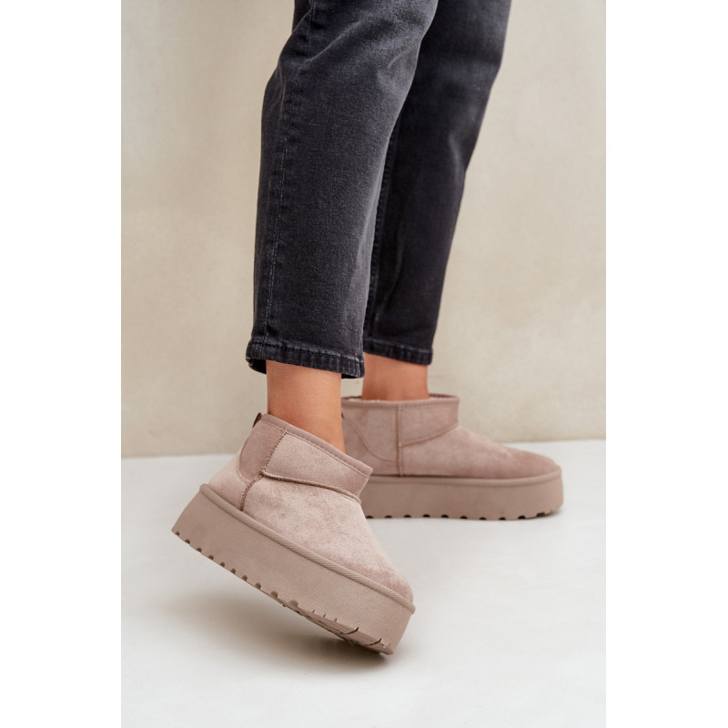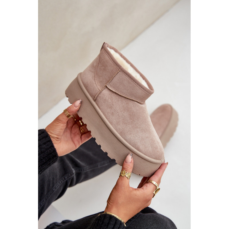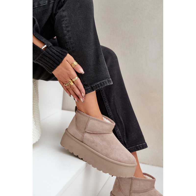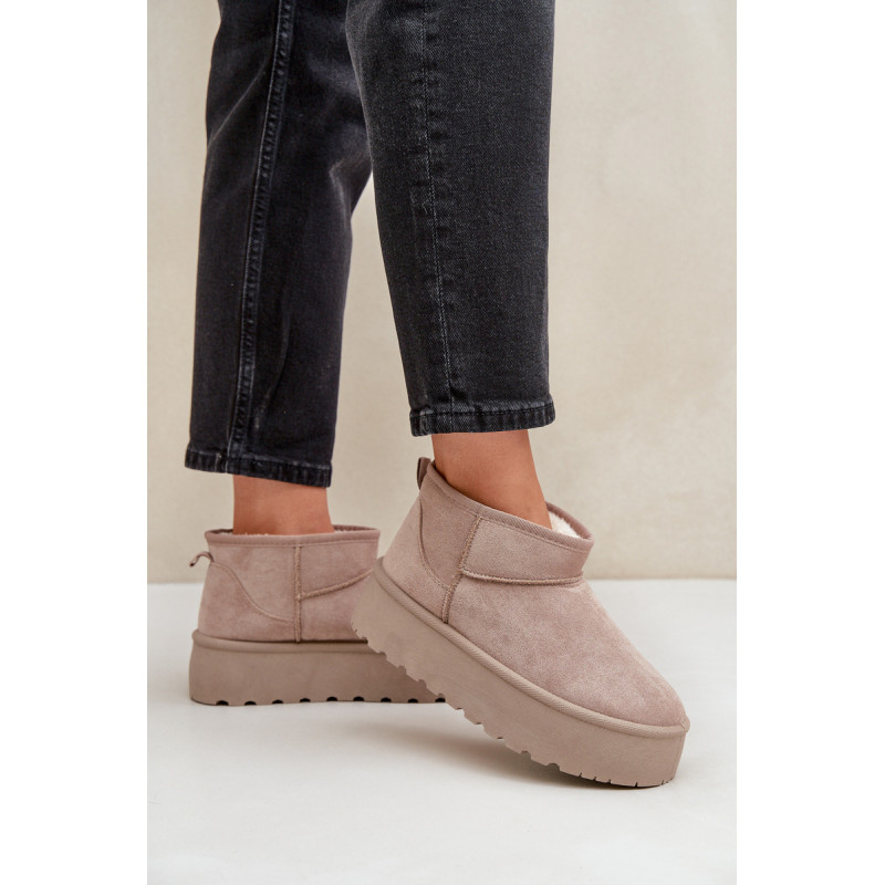 Moteriški sniego batai, pagaminti iš ekologiškos zomšos. Pastatykite ant tvirtos guminės platformos. Kotas iki kulkšnies. Vidus išklotas kailiu. Šis madingas modelis puikiai tiks beveik bet kokiam rudens-žiemos stiliui! Jūs tikrai turėtumėte juos turėti! Rinkdamiesi dydį, žiūrėkite dydžių lentelę.