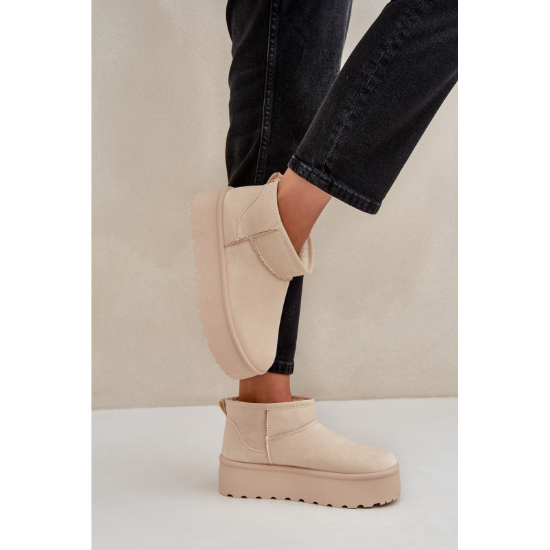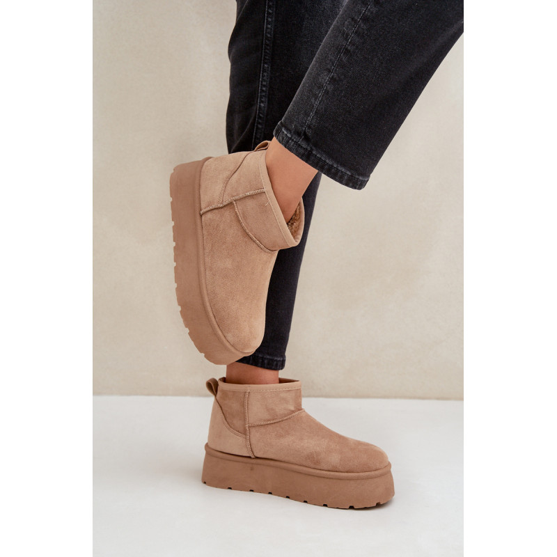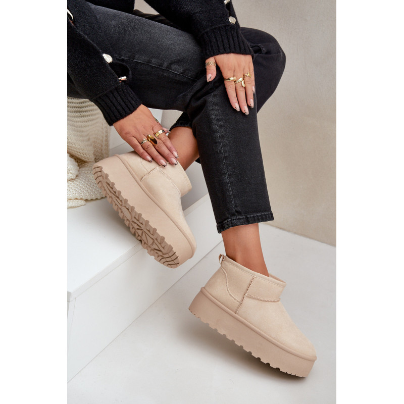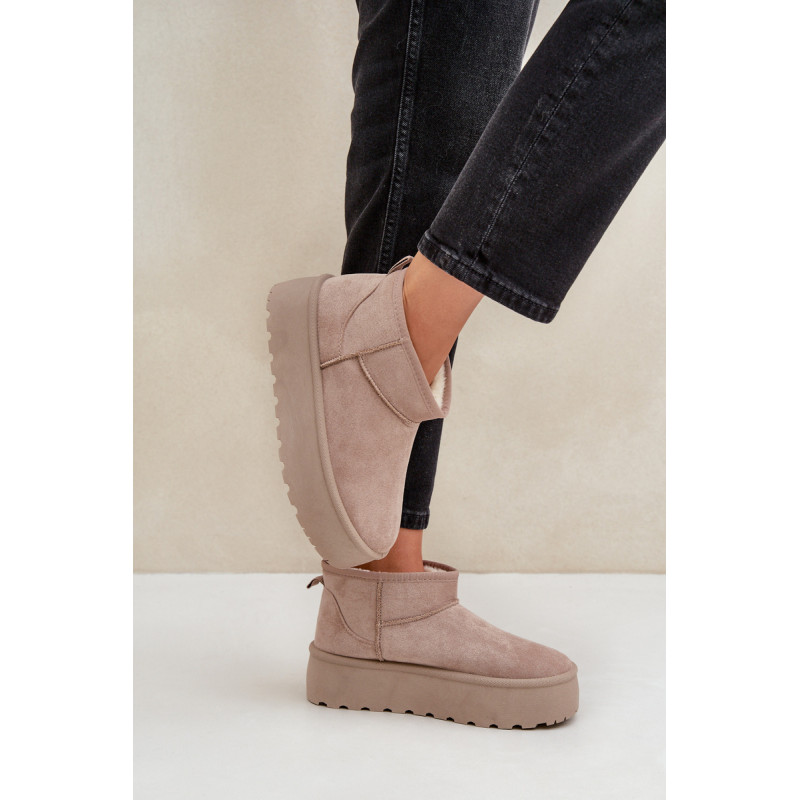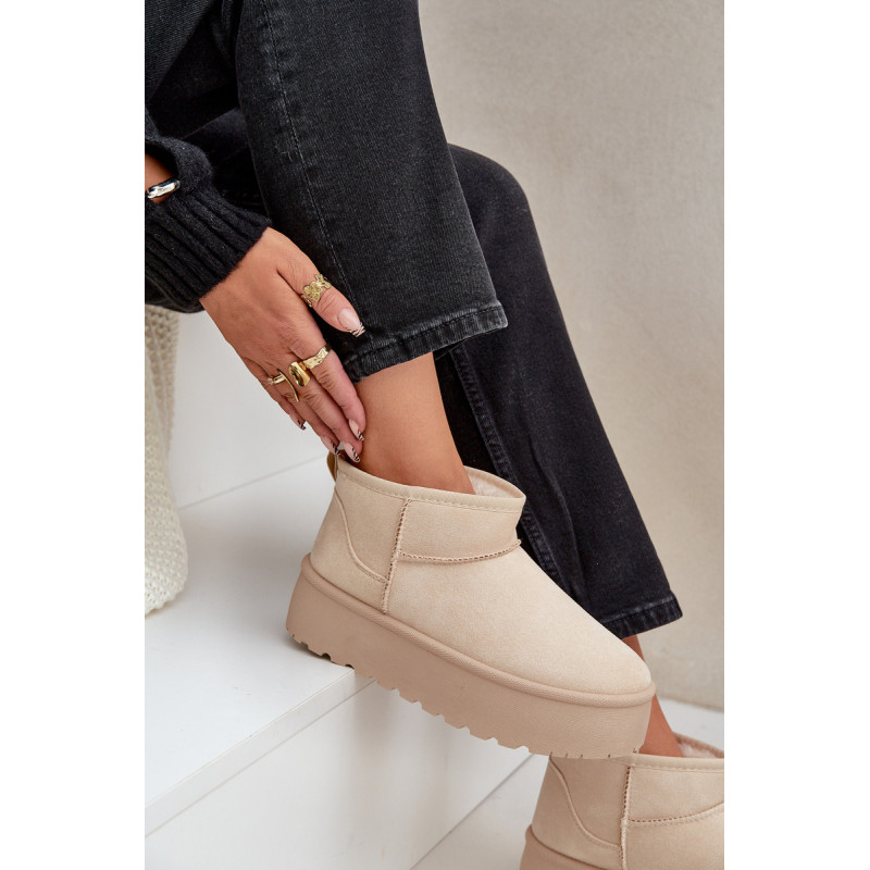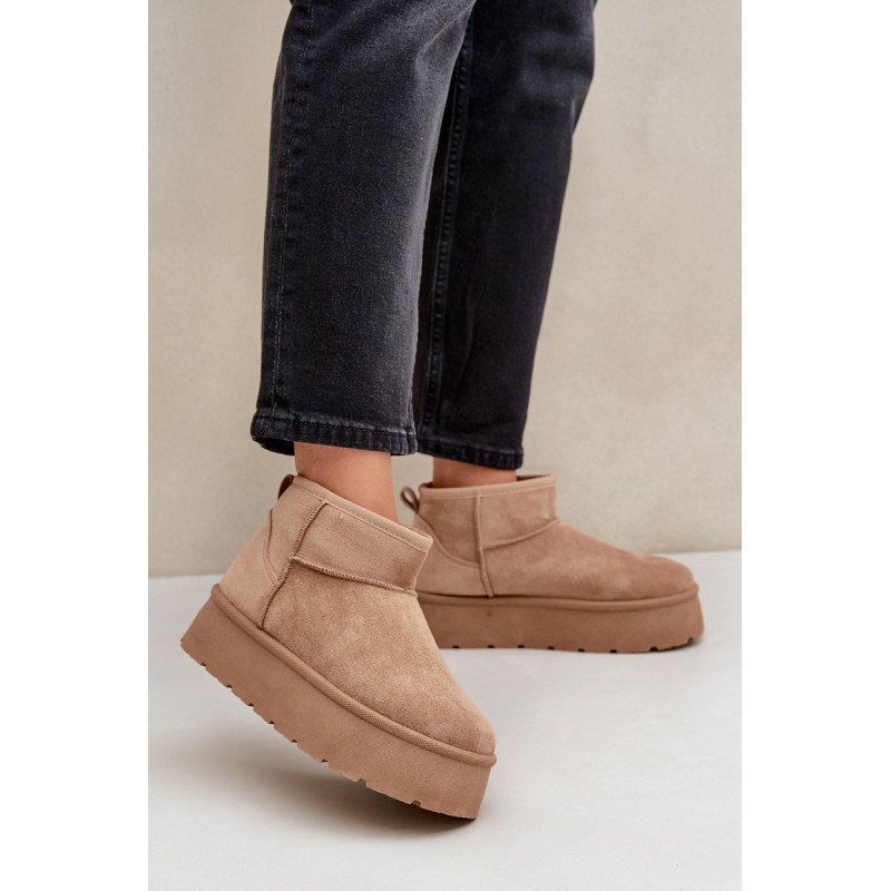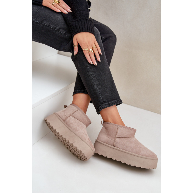Moteriški sniego batai, pagaminti iš ekologiškos zomšos. Pastatykite ant tvirtos guminės platformos. Kotas iki kulkšnies. Vidus išklotas kailiu. Šis madingas modelis puikiai tiks beveik bet kokiam rudens-žiemos stiliui! Jūs tikrai turėtumėte juos turėti! Rinkdamiesi dydį, žiūrėkite dydžių lentelę.