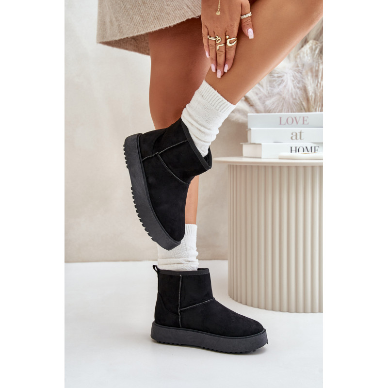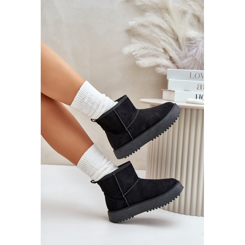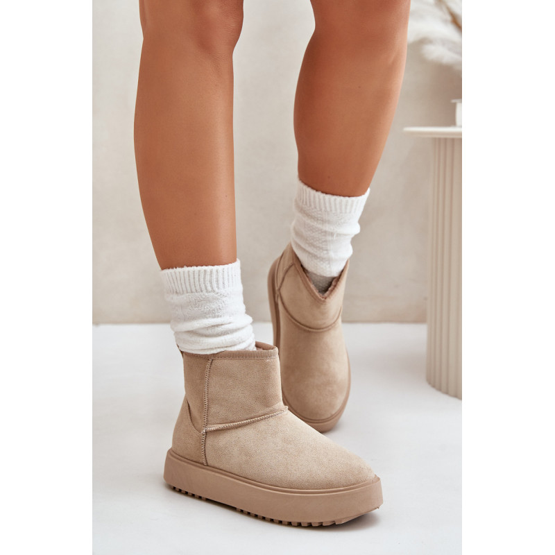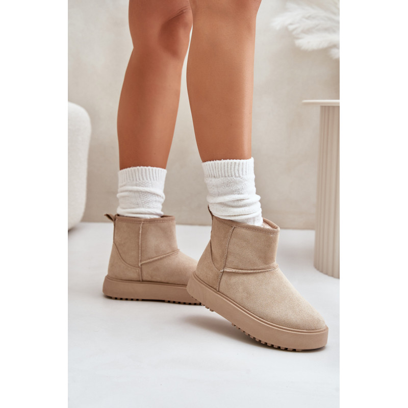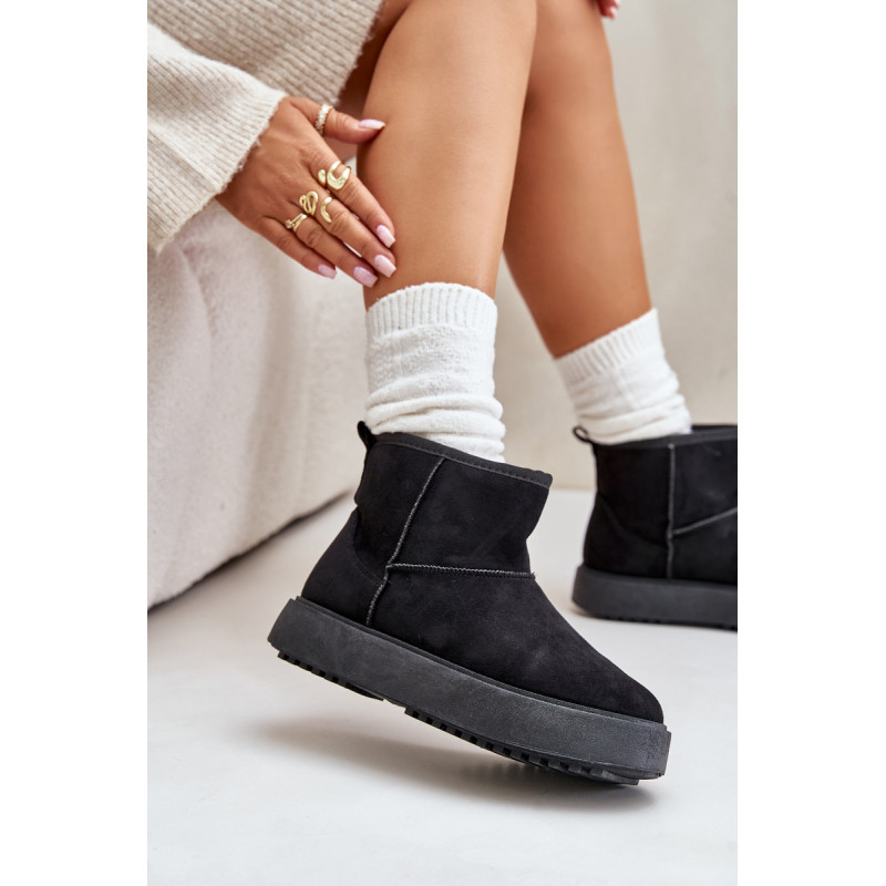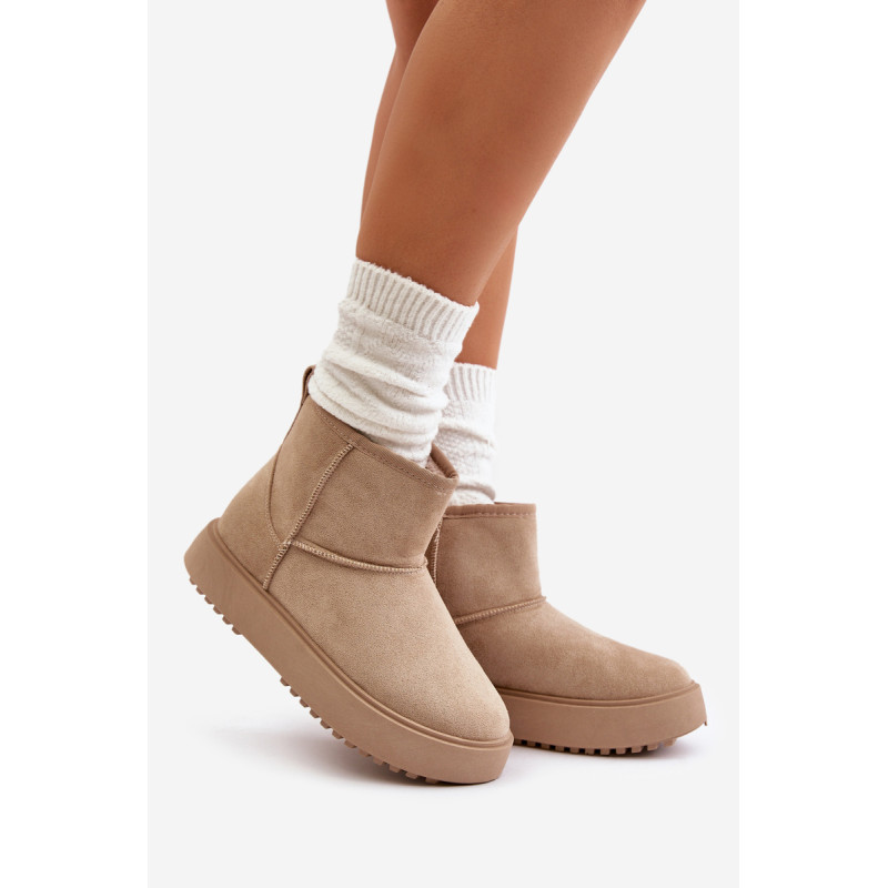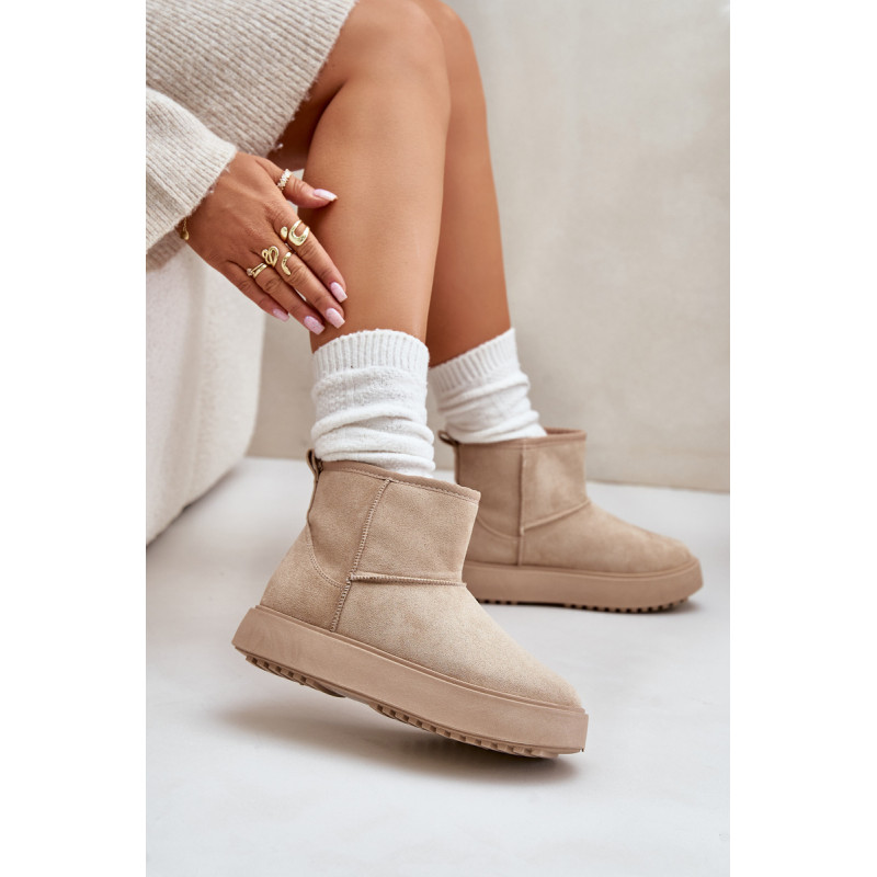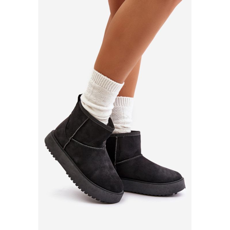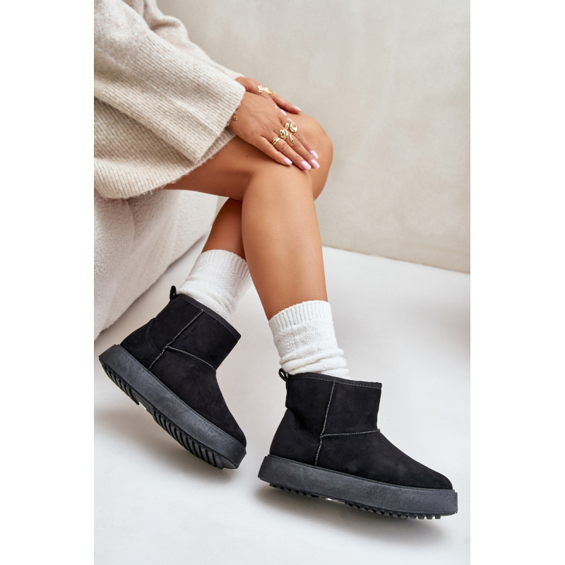 Moteriški sniego batai, pagaminti iš ekologiškos zomšos. Nustatyti ant platformos. Modelis išklotas kailiu, todėl idealus pasirinkimas žiemos dienomis, apsaugantis nuo šalčio ir drėgmės. Madingas šios avalynės dizainas leidžia ją derinti su įvairių stilių, suteikiant charakterį kiekvienai žiemos aprangai! Rinkdamiesi dydį, žiūrėkite dydžių lentelę.
