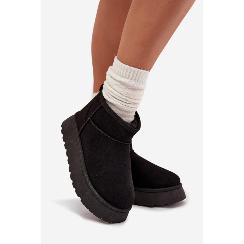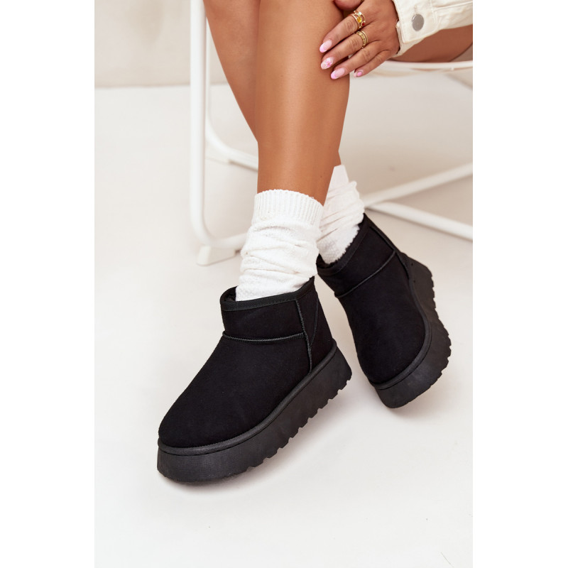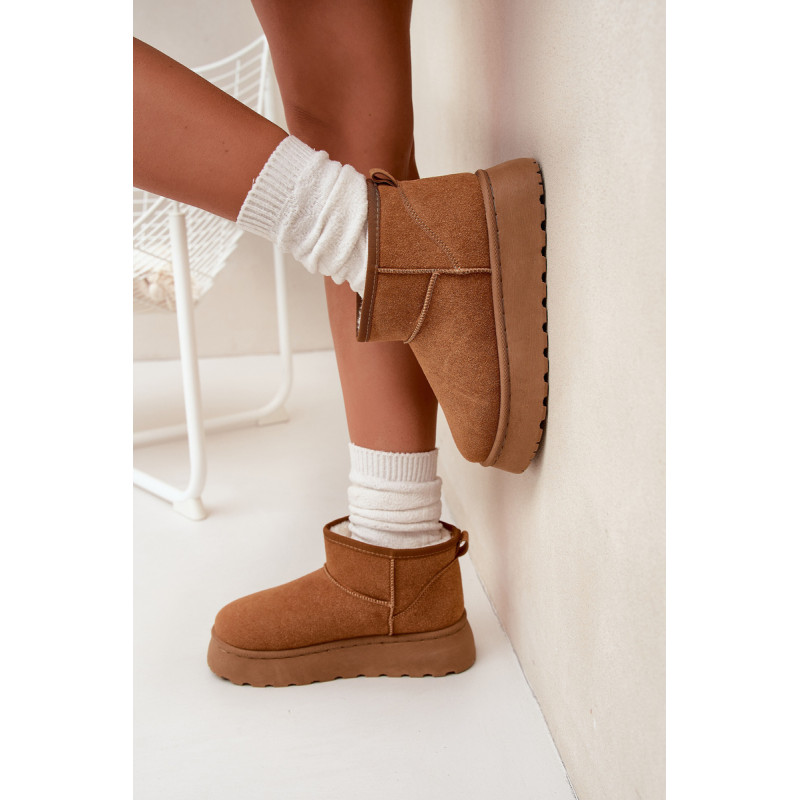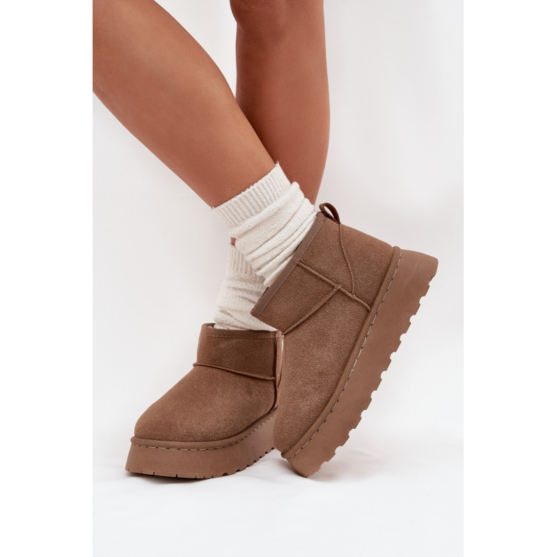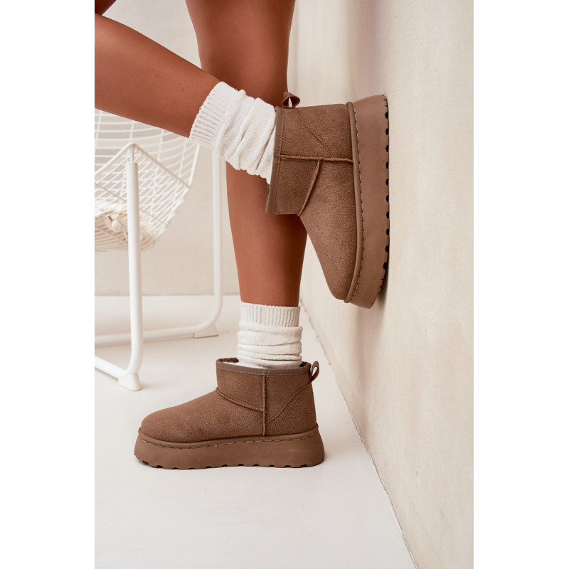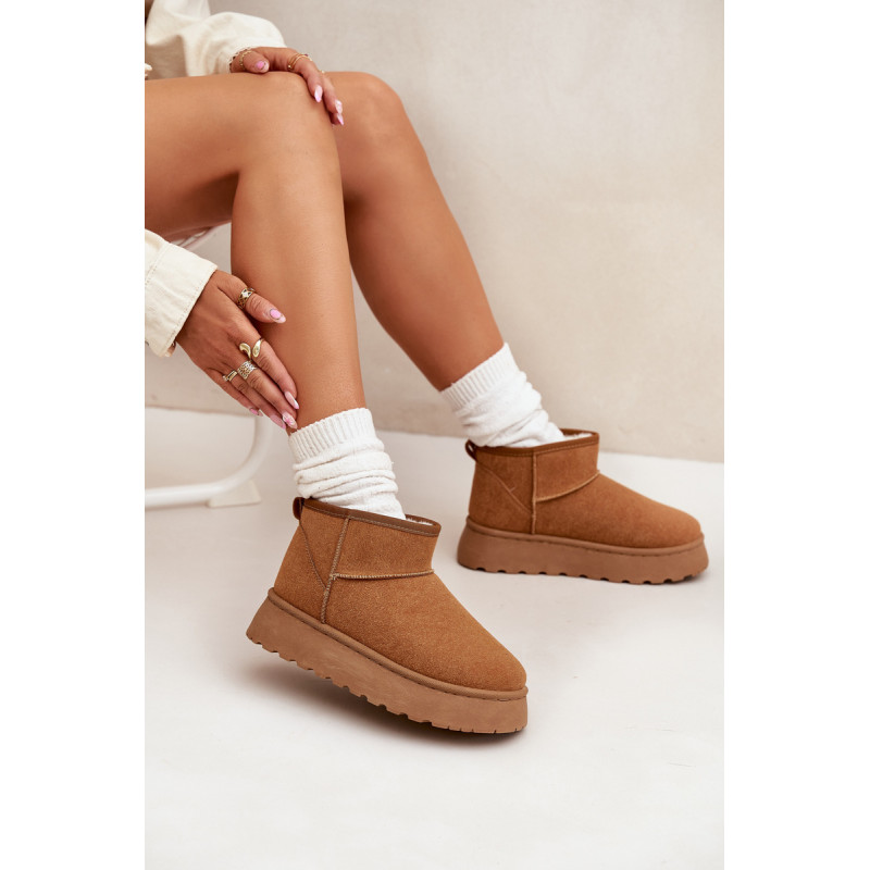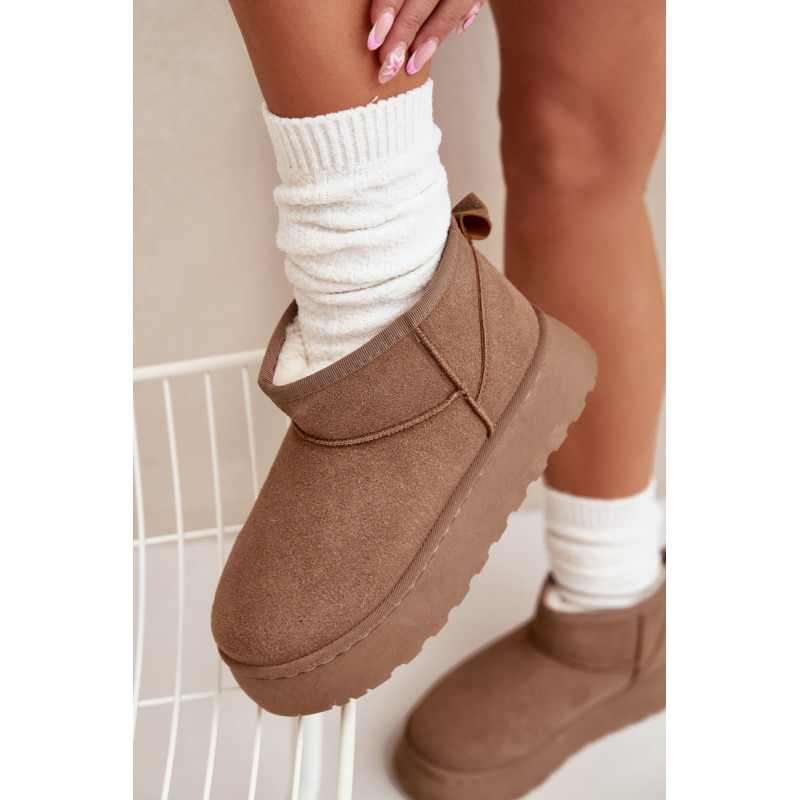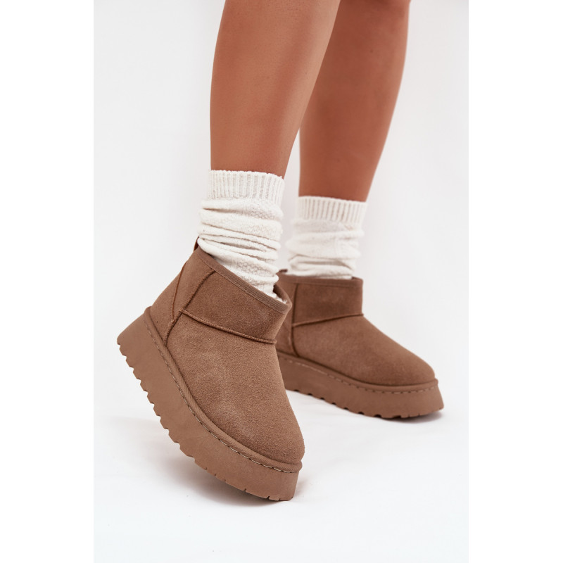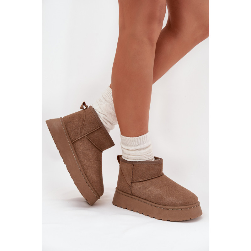 Moteriški sniego batai, pagaminti iš ekologiško zomšo, yra ideali pasirinkimo žiemos dienoms. Šis modelis yra ant platformos, kas suteikia papildomą komfortą ir stabilumą vaikščiojant. Dėl šiltinimo, kojos išliks šiltos net pačiomis šaltomis dienomis. Šie sniego batai bus puikus bet kurio žiemos įvaizdžio papildymas. Renkantis dydį, vadovaukitės dydžių lentele.