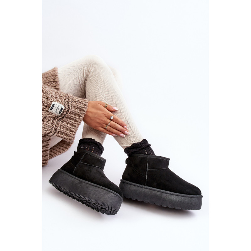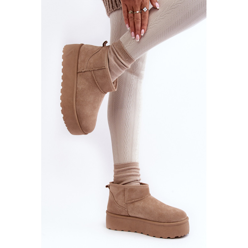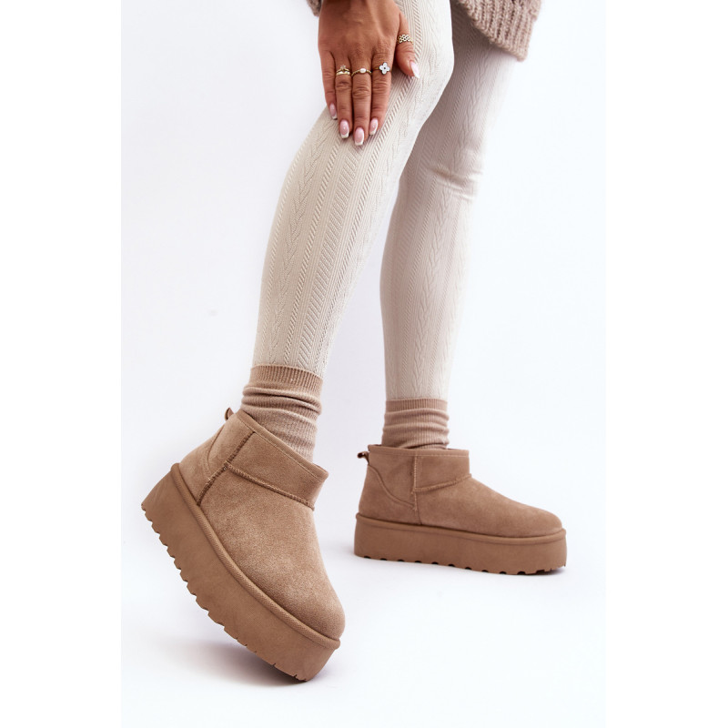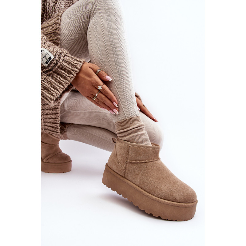 Moteriški sniego batai ant storos platformos, kuri puikiai izoliuos nuo šaltos žemės. Pagaminta iš ekologiškos zomšos. Vidus apšiltintas kailiu. Viršutinė dalis iki kulkšnies. Šis madingas modelis tiks prie daugelio rudens-žiemos aprangų! Rinkdamiesi dydį, vadovaukitės dydžių lentele.