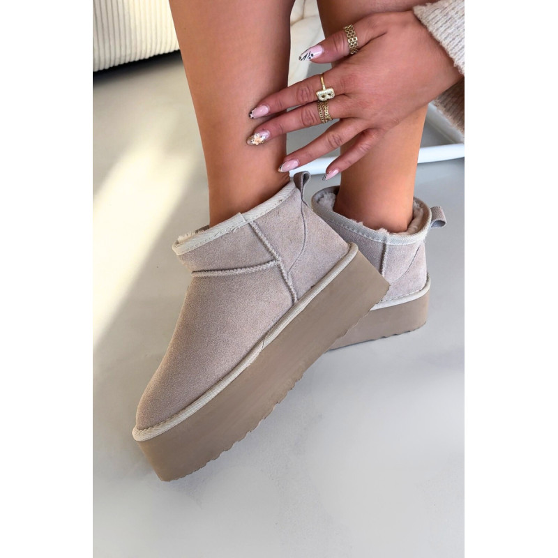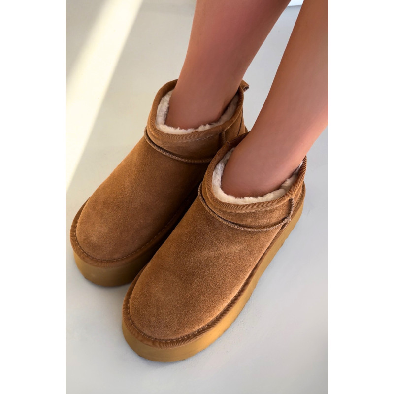 Moteriški žieminiai batai iš natūralaus zomšos yra tvirtas ir stilingas pasirinkimas žiemai. Juos pastatyti ant patogios platformos, jie užtikrina gerą izoliaciją nuo šalto pagrindo ir patogų vaikščiojimą. Viduje yra įlietas storas, minkštas kailis, kuris suteikia išskirtinę šilumą, todėl batai puikiai tinka net ir žemomis temperatūromis. Tai praktiškas ir madingas modelis, idealus kasdieniams žieminiams stiliams. Pasirenkant dydį, prašome vadovautis dydžių lentele. Renkantis dydį, vadovaukitės dydžių lentele.