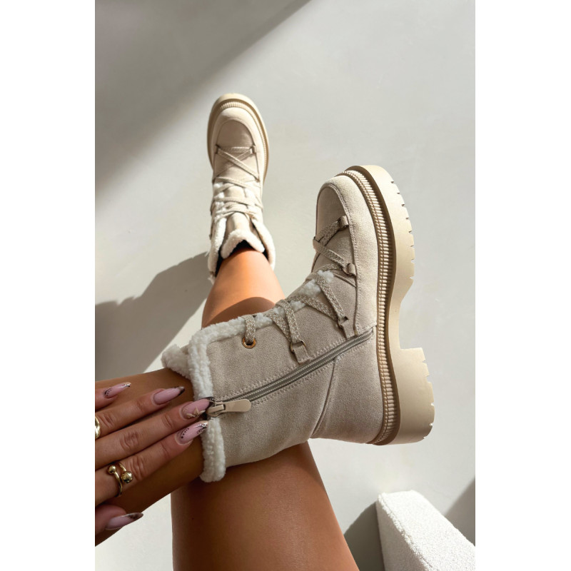 Moteriški snieginiai batai iš ekologiško zomšiaus yra puikus pasirinkimas žiemą. Modelis su užtrauktuku ir papildomu raišteliu užtikrina puikų prigludimą ir patogumą nešiojant. Batų vidus išklotas avalynės antklode, kuri garantuoja šilumą net ir šaltomis dienomis. Viršutinę dalį puošia minkšta, sintetinio kailio apdaila, suteikianti jaukumo ir stiliaus akcentą. Tai praktiški ir madingi sniego batai, kurie puikiai tiks tiek žiemos pasivaikščiojimams, tiek kasdieniams deriniams. Renkantis dydį, prašome vadovautis dydžių lentele. Renkantis dydį, vadovaukitės dydžių lentele.