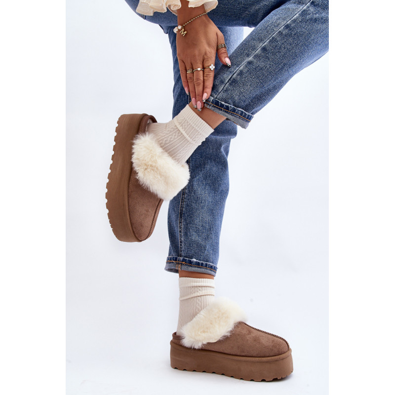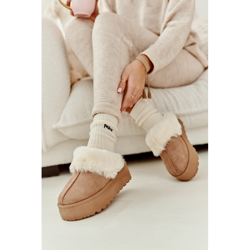 Moteriškos šlepetės puikiai papildys jūsų rudens-žiemos sezono avalynės kolekciją. Pagaminta iš minkštos ekologiškos zomšos. Šis modelis žavi ne tik komfortu, bet ir stilinga apdaila. Pastatytas ant masyvios platformos, pagamintos iš guminės medžiagos. Dėl papildomos izoliacijos su kailiu jie yra idealus pasirinkimas vėsesnėms dienoms. Jūs tikrai turėtumėte juos turėti! Rinkdamiesi dydį, žiūrėkite dydžių lentelę.