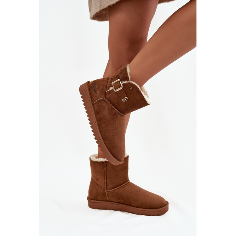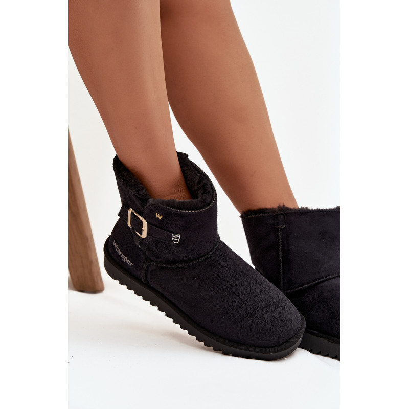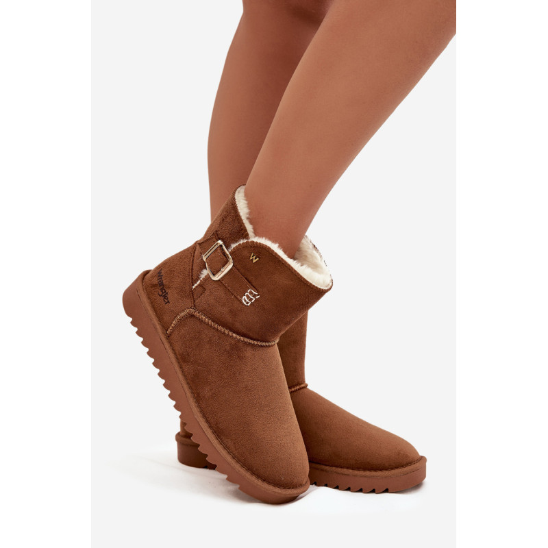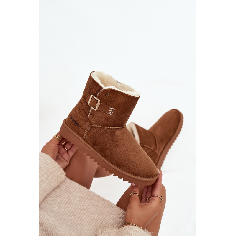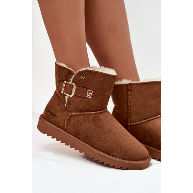 Moteriški sniego batai Wrangler prekės ženklo yra praktiški ir stilingi avalynė žiemai. Pagaminti iš ekologiško zomšos. Minkšta, stora kailinė linija viduje užtikrina šilumą ir komfortą net ilgai būnant šaltyje. Stabilus guminis padas užtikrina gerą sukibimą ant slidžių paviršių, taip padidindamas saugumą sudėtingomis žiemos sąlygomis. Papildomas privalumas yra diržas su sagtimi, esantis šone, kuris tarnauja kaip dekoratyvinis elementas, suteikiantis madingą ir išraiškingą charakterį. Šie sniego batai puikiai tinka kasdieniam žiemos stiliui – tiek pasivaikščiojimams, tiek ir neformaliems išėjimams. Prašome vadovautis dydžių lentele renkantis dydį. Renkantis dydį, vadovaukitės dydžių lentele.