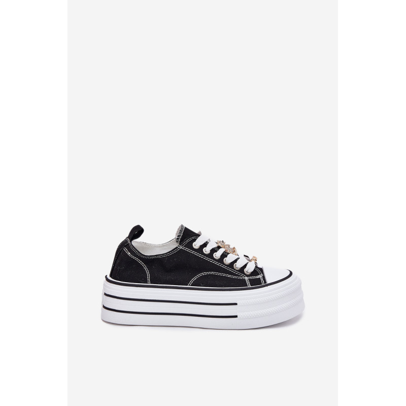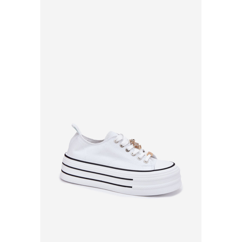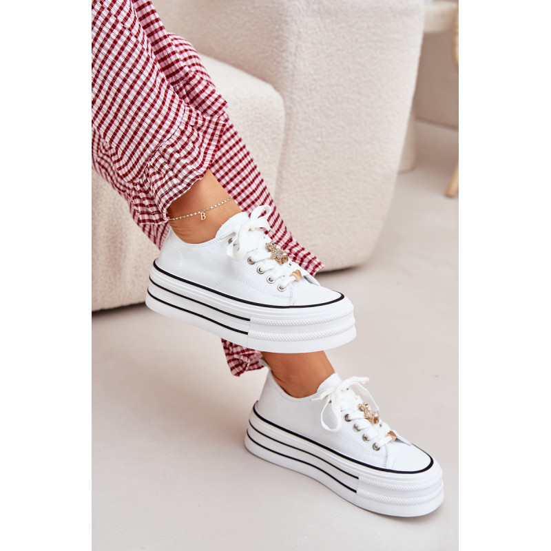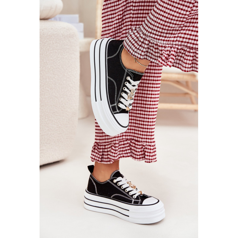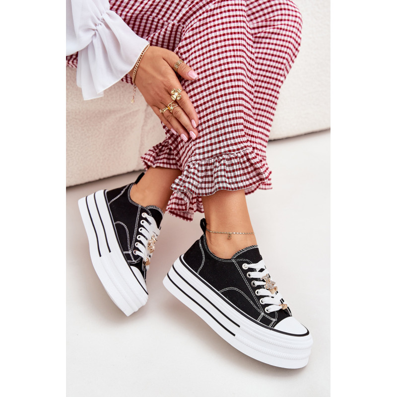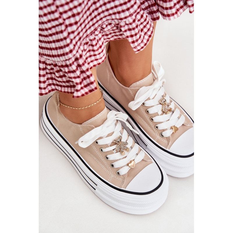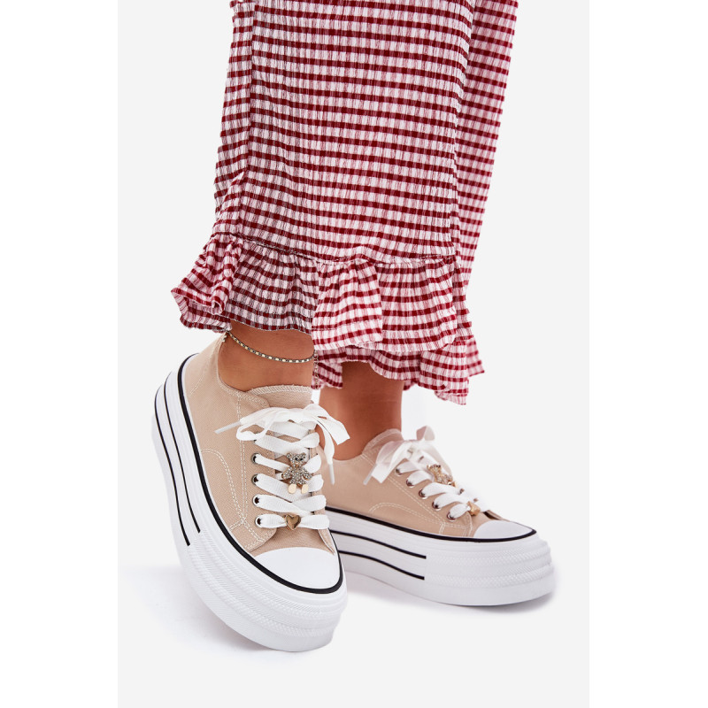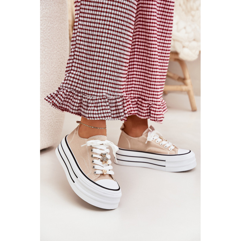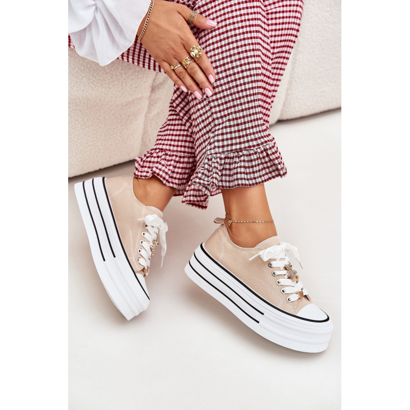 Moteriški sportbačiai, pagaminti iš tekstilės, sumontuoti ant masyvios platformos, yra madingas pasiūlymas kasdienai. Su raišteliais ir papildomais auksiniais priedais, kurie suteikia jiems stilingą akcentą. Puikiai tinka kasdieniams stiliams, derina komfortą su moderniu vaizdu, puikiai tinka tiek kelnėms, tiek suknelėms. Renkantis dydį, vadovaukitės dydžių lentele.