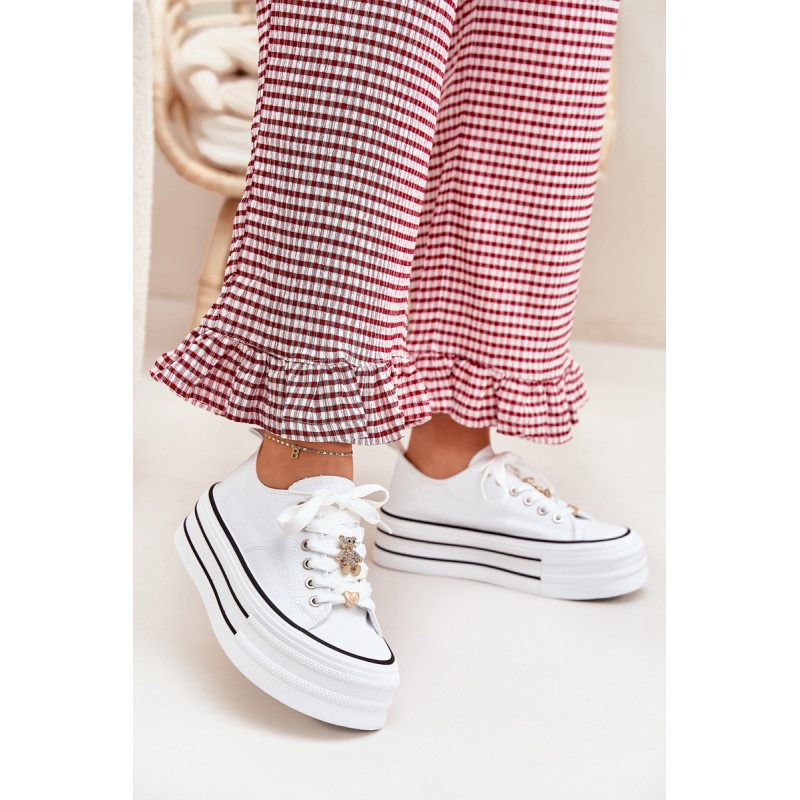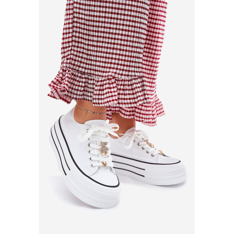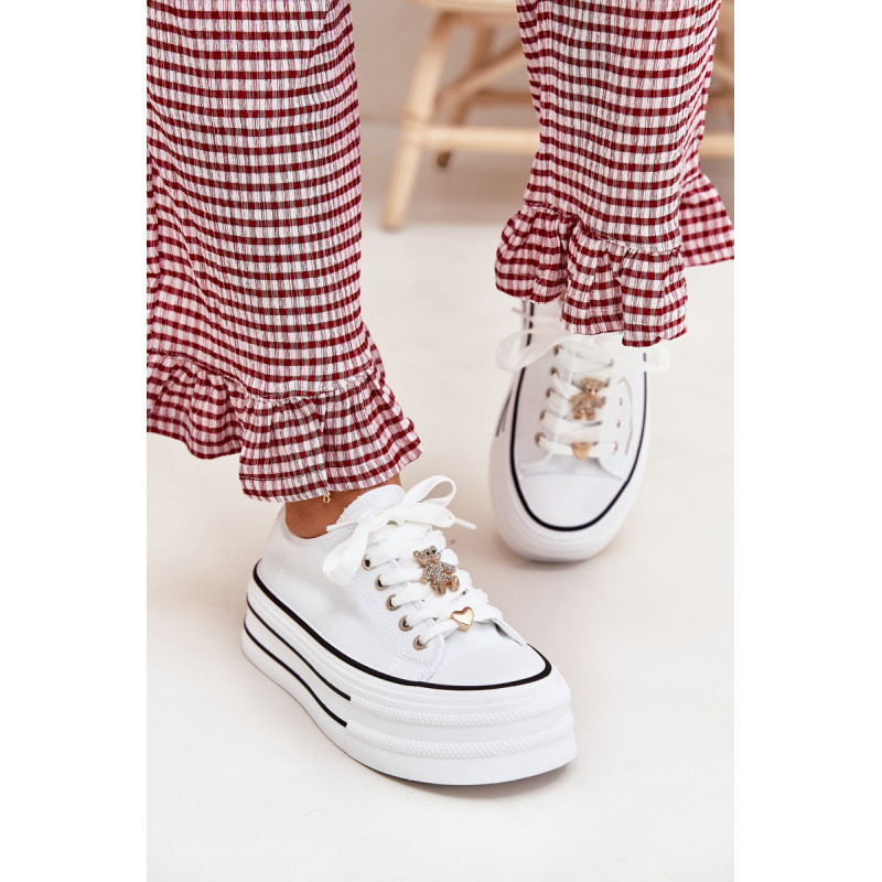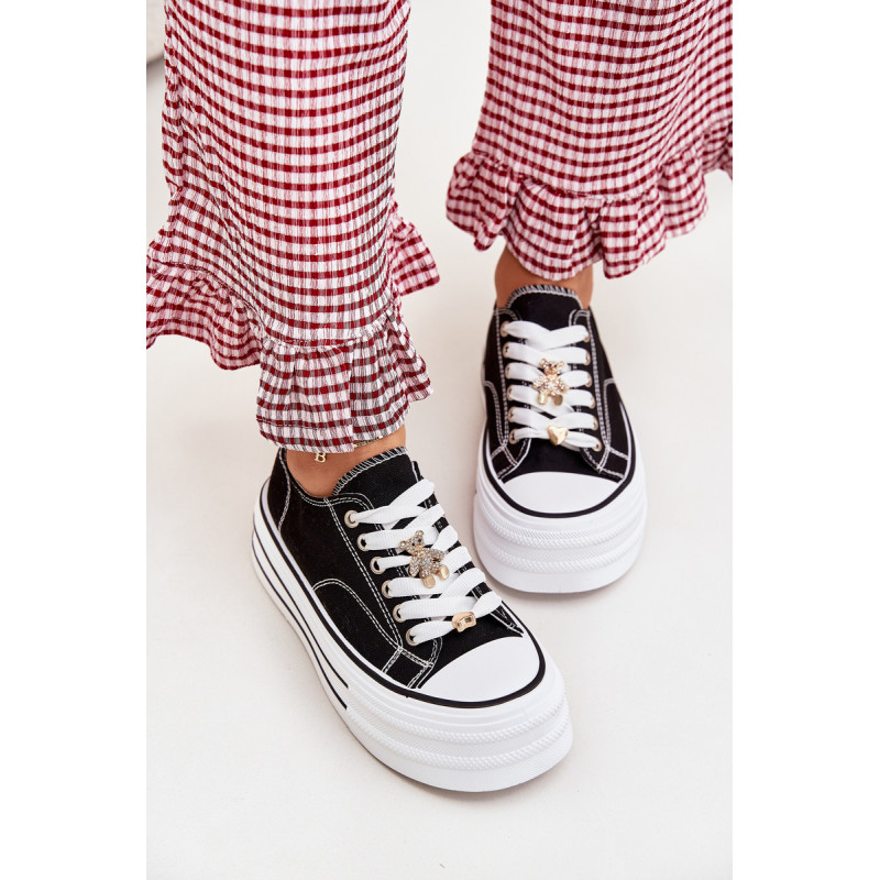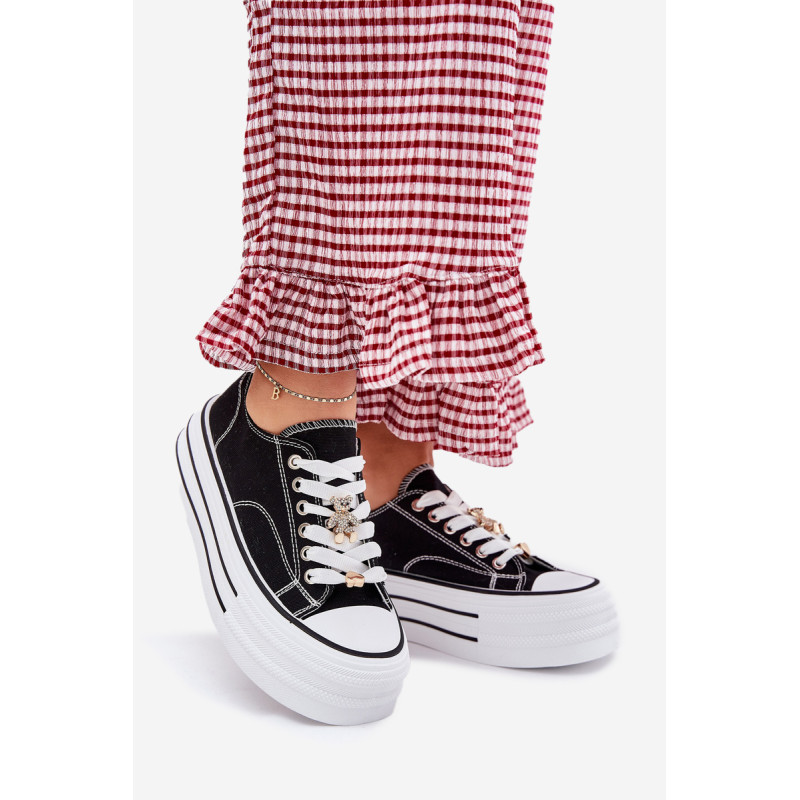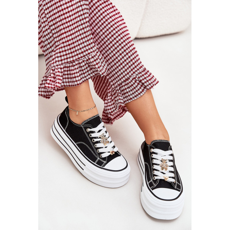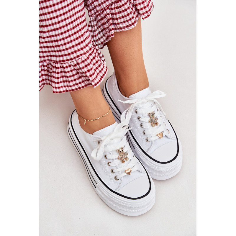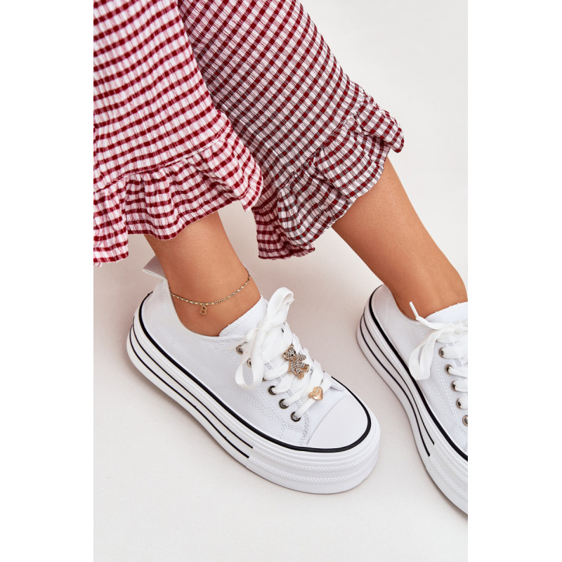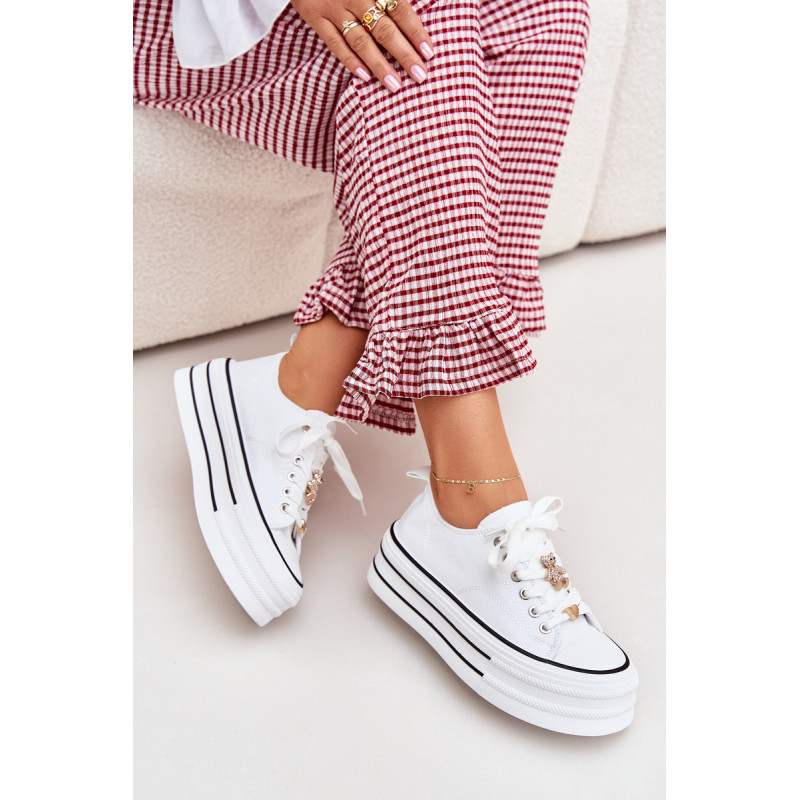 Moteriški sportbačiai, pagaminti iš tekstilės, sumontuoti ant masyvios platformos, yra madingas pasiūlymas kasdienai. Su raišteliais ir papildomais auksiniais priedais, kurie suteikia jiems stilingą akcentą. Puikiai tinka kasdieniams stiliams, derina komfortą su moderniu vaizdu, puikiai tinka tiek kelnėms, tiek suknelėms. Renkantis dydį, vadovaukitės dydžių lentele.