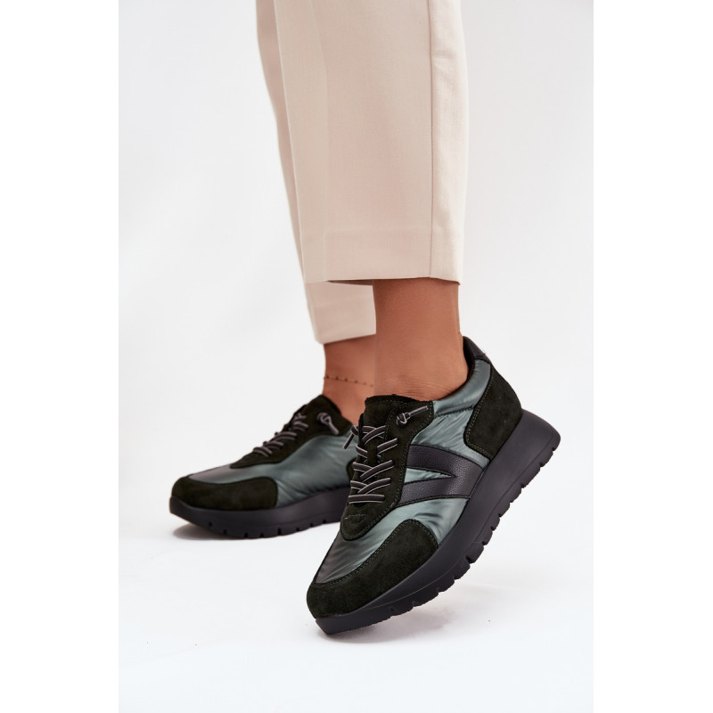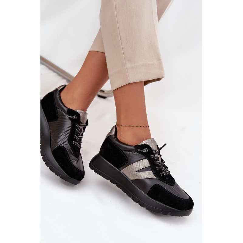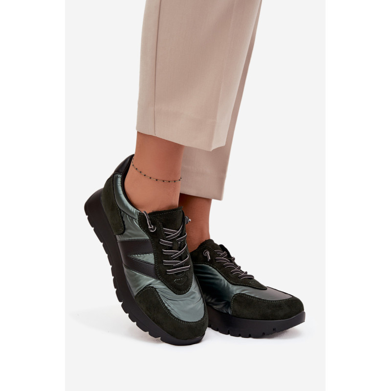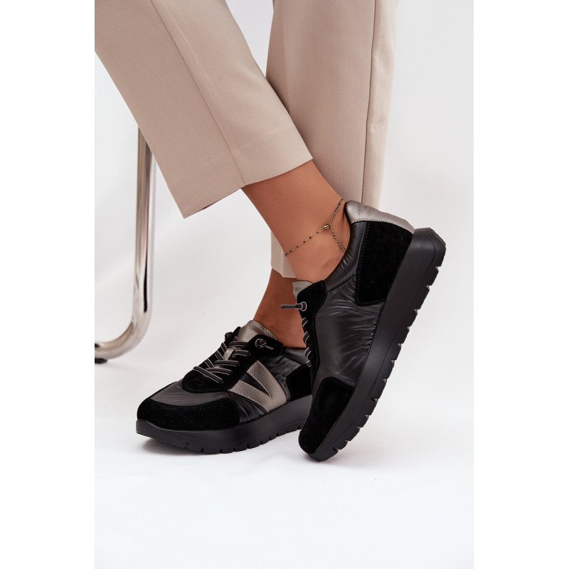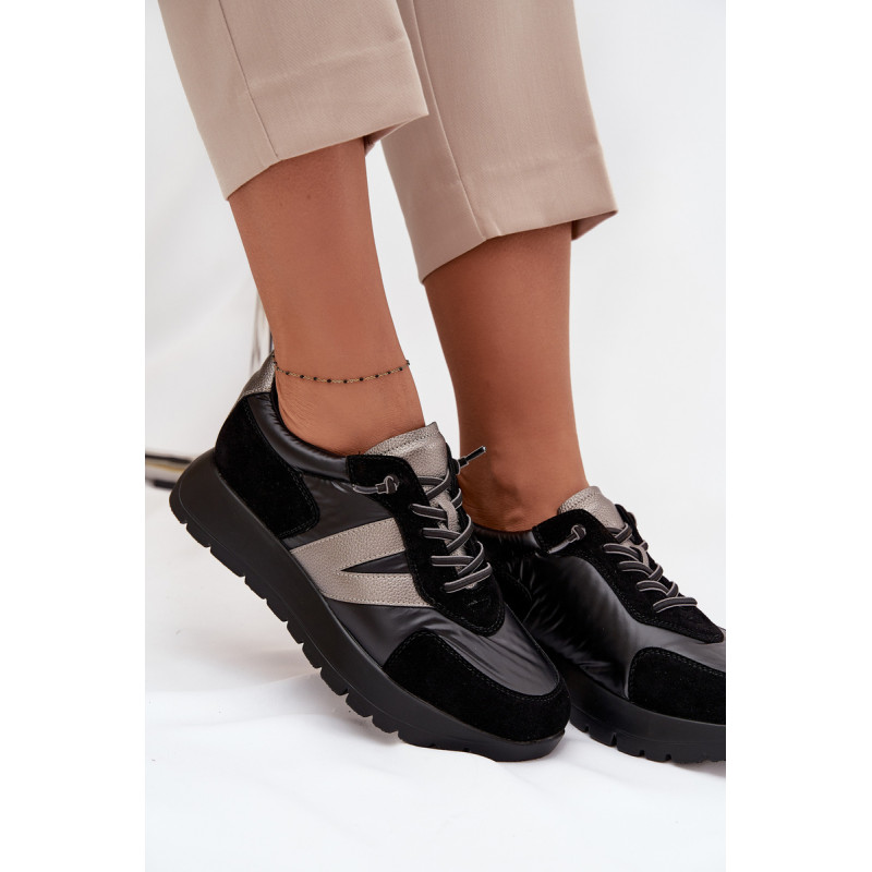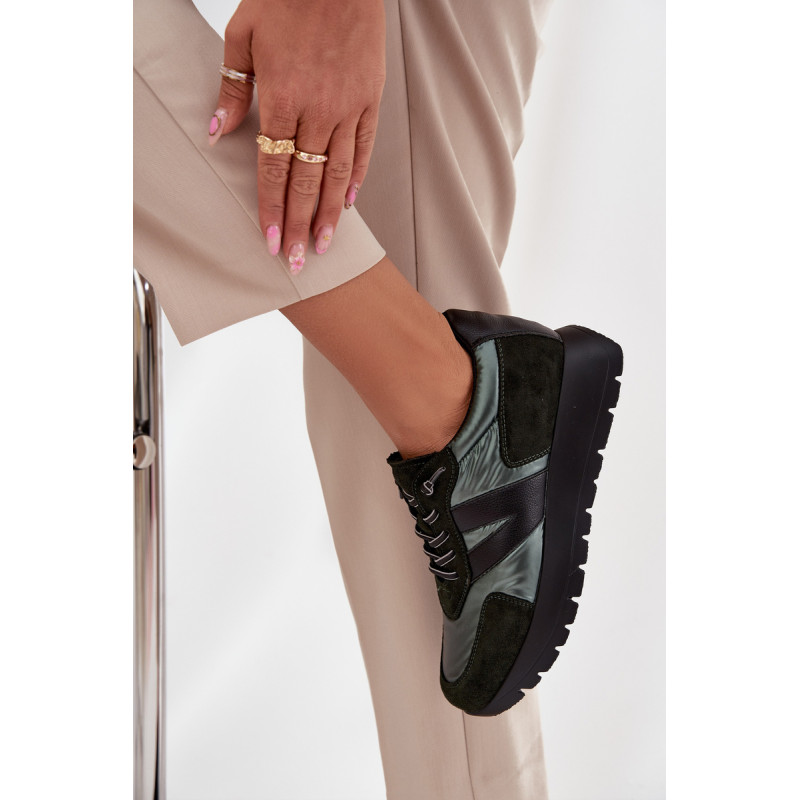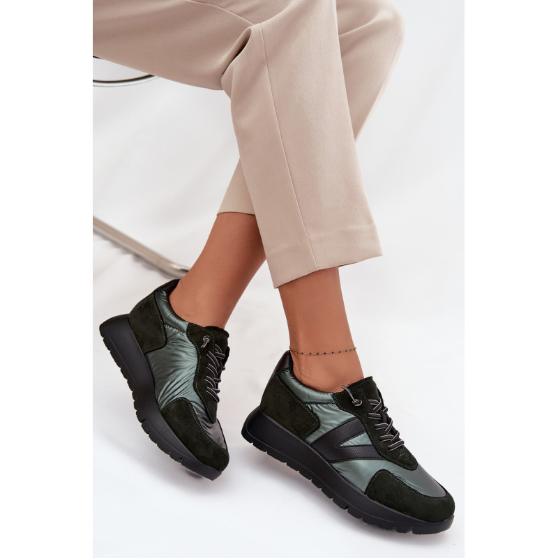 Moteriški Vinceza sportbačiai. Pagaminti iš ekologiškos odos, ekologiško zomšos ir gluda tekstilės medžiagos derinio, atrodo itin madingi ir patraukia dėmesį įdomiu faktūrų deriniu. Pastatyti ant platformos, jie suteikia keletą centimetrų aukščio, tuo pačiu išlikdami patogūs kasdieniam dėvėjimui. Šis modelis turi elastinius raištelius, kurie imituoja raištelius. Odinė įdėklas užtikrina didelį komfortą ir patogumą dėvint. Šie sportbačiai puikiai tiks tiek kasdienio stiliaus, tiek sportiškesniems įvaizdžiams, suteikdami jiems charakterio ir gaivumo. Pasirinkdami dydį, prašome vadovautis dydžių lentele. Renkantis dydį, vadovaukitės dydžių lentele.