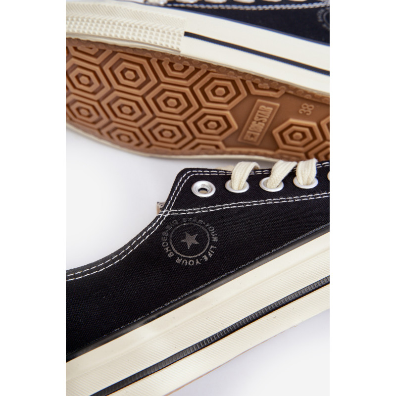 Big Star prekės ženklo moteriški sportbačiai yra modernaus leidimo klasika. Pagaminti iš kokybiškų medžiagų, suteikia ne tik stilingą išvaizdą, bet ir patogumą naudojant. Guminis padas užtikrina gerą sukibimą su žeme, o klasikinis suvarstymas leidžia lengvai prisitaikyti prie pėdos. Puikiai tinka kasdieniam, kasdieniniam stiliui! Rinkdamiesi dydį, žiūrėkite dydžių lentelę.