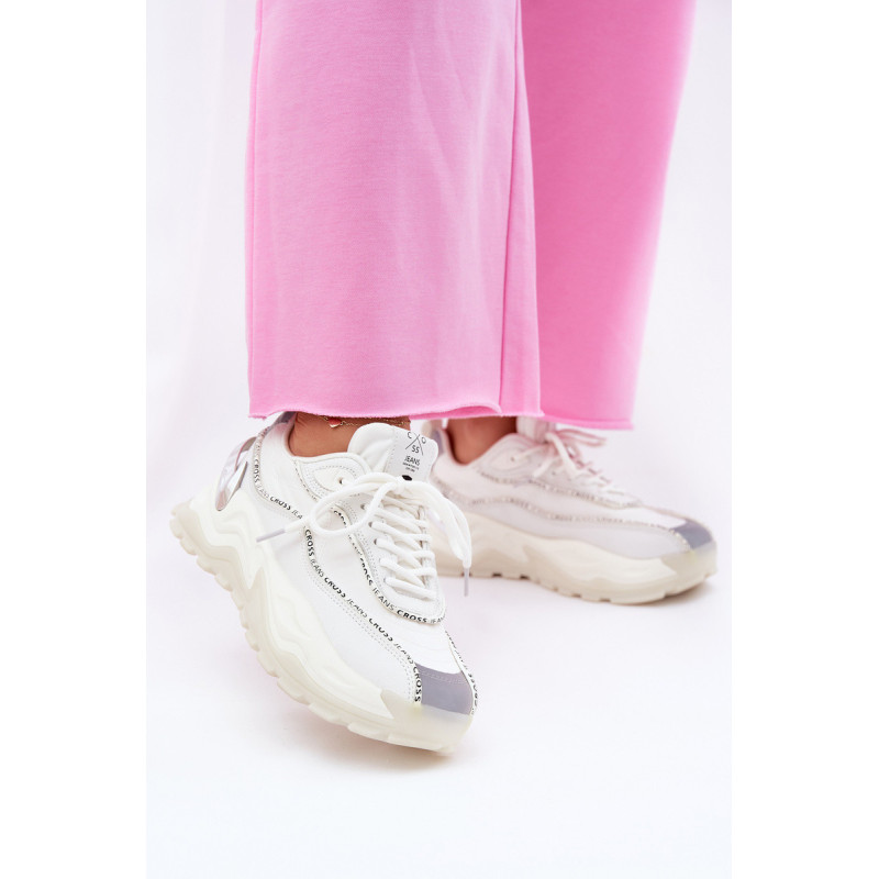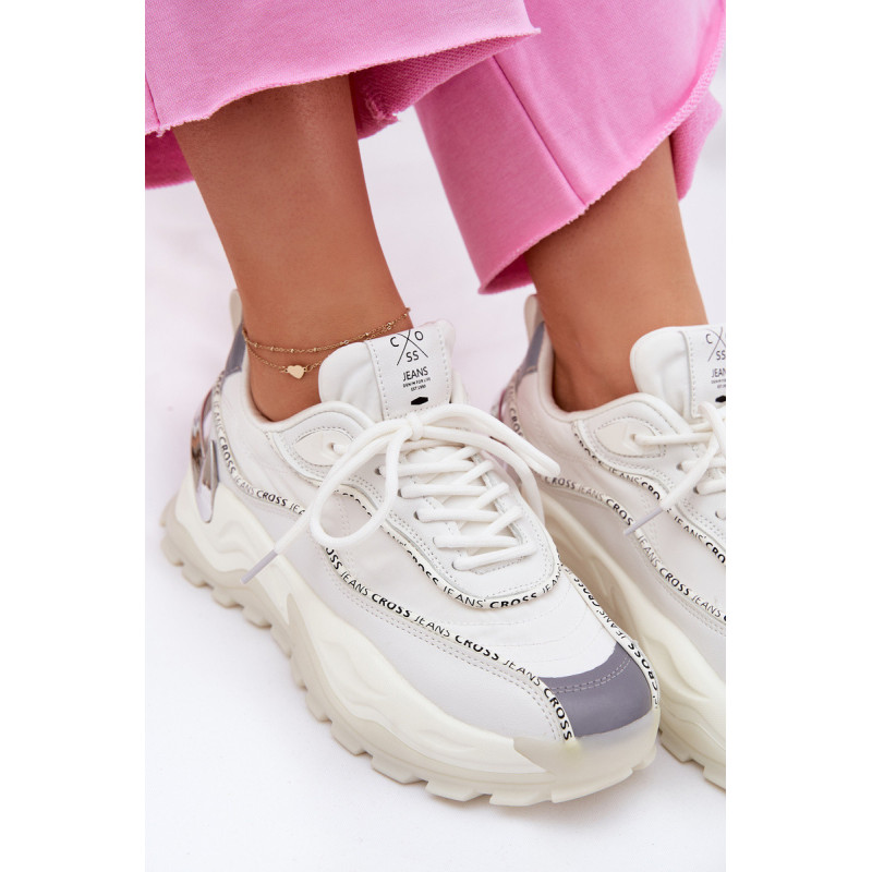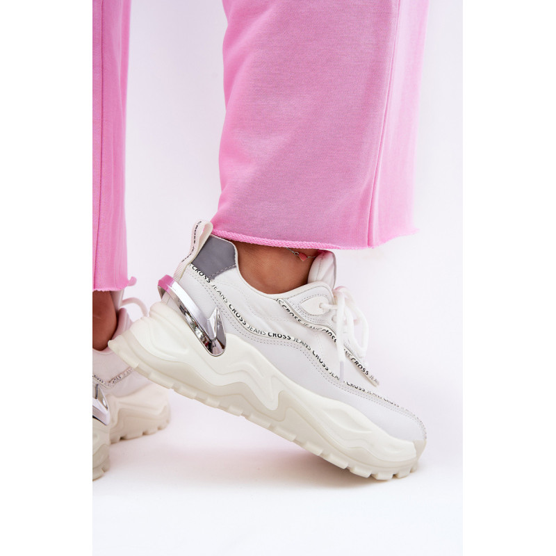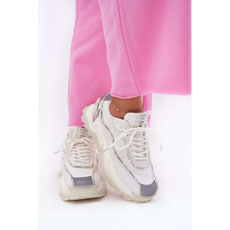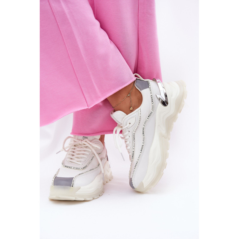 CROSS JEANS moteriški sportiniai bateliai. Viršutinė dalis pagaminta iš eko odos ir audinio derinio. Nuostabūs batai, pro kuriuos nepraeisi abejingas. Visa tai dėka viršutinės dalies su subtiliu dirželiu su Cross Jeans logotipu ir sidabro įdėklu ant kulno. Būtinai peržiūrėkite visą mūsų CROSS JEANS batų kolekciją! Pasirinkdami dydį, vadovaukitės dydžių lentele.