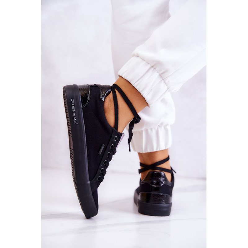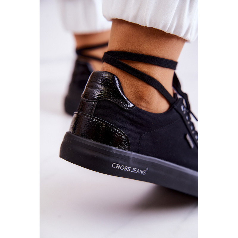 Sportbačiai plokščiu guminiu padu. Viršutinė kulkšnies dalis dekoruota eko odos įdėklu nugaroje. Klasikinis raištytas modelis. Pagaminta iš tekstilės medžiagos. Tai puikus pasirinkimas prie kasdienės aprangos! Viršutinės dalies šone yra lėkštė su Cross Jeans logotipu. Neslystantis padas. Šį modelį tikrai turėtumėte turėti savo garderobe! Renkantis dydį, naudokite dydžių lentelę.