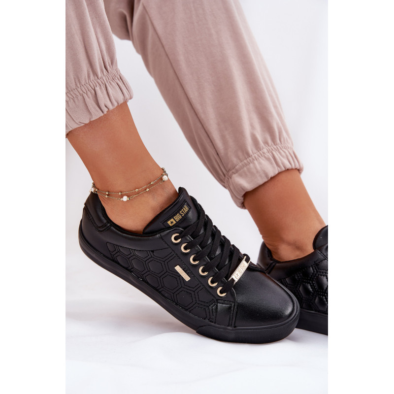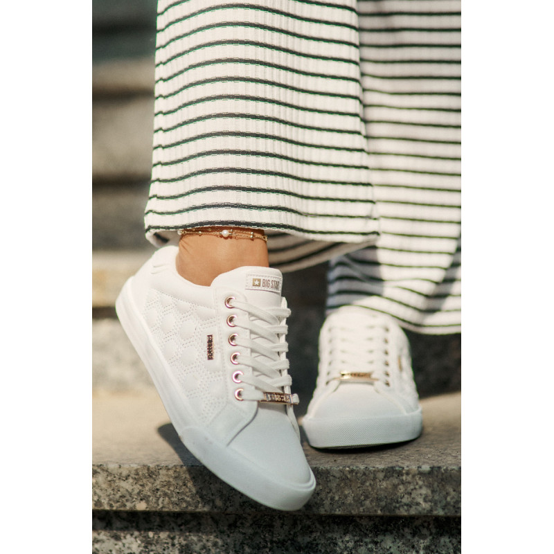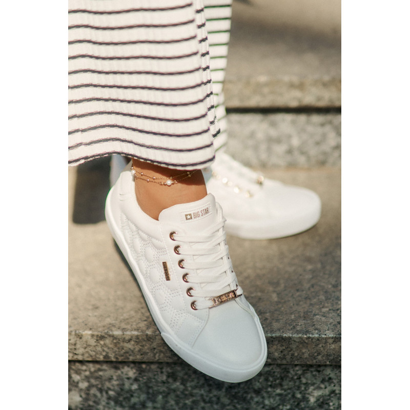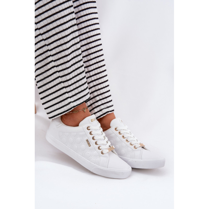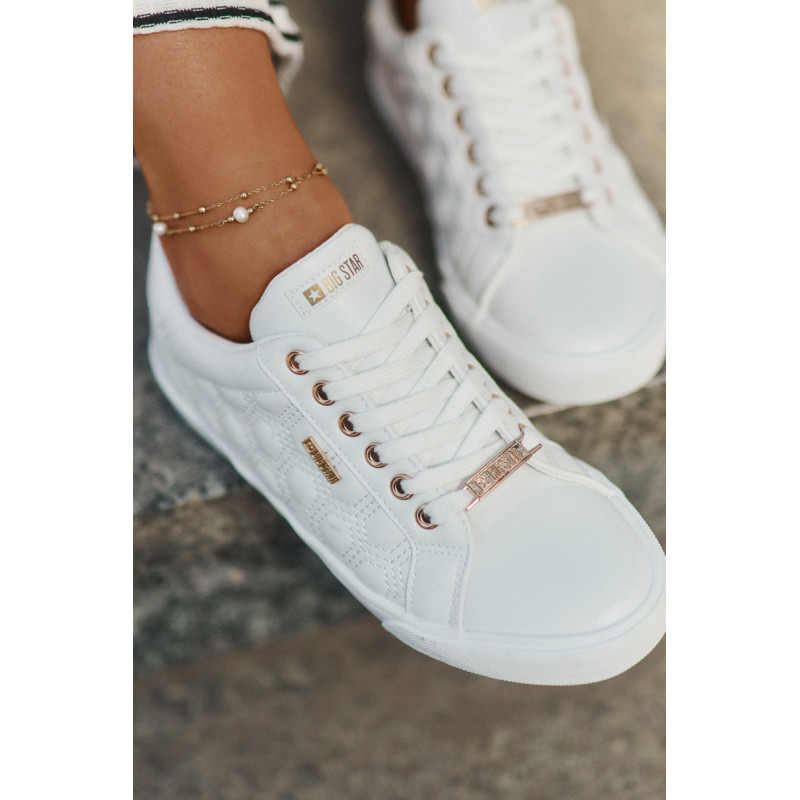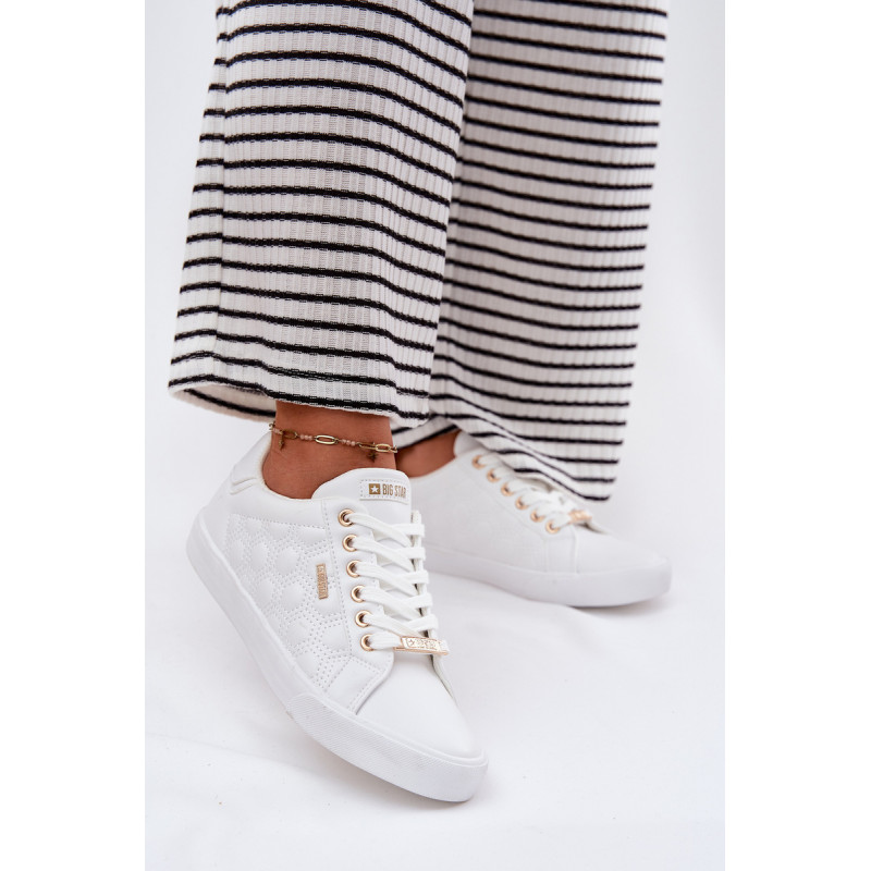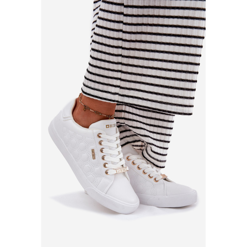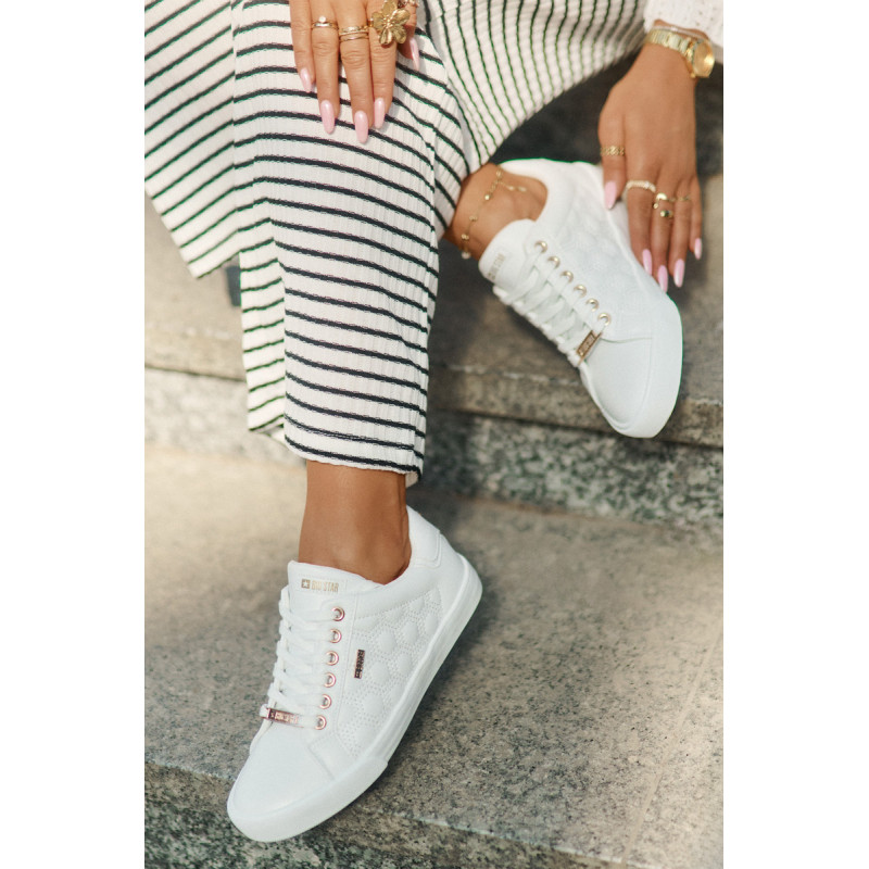 Moteriški sportbačiai iš Big Star prekės ženklo, pagaminti iš ekologiškos odos, yra komforto ir stiliaus derinys. Viršutinė dalis, puošta subtiliomis siūlėmis, suteikia jiems charakterio, o klasikinis raištelių užrišimas leidžia tobulai pritaikyti prie pėdos. Guminė pado užtikrina patvarumą ir komfortą, todėl šie sportbačiai yra puikus pasirinkimas kasdieniniam stiliui. Renkantis dydį, vadovaukitės dydžių lentele.