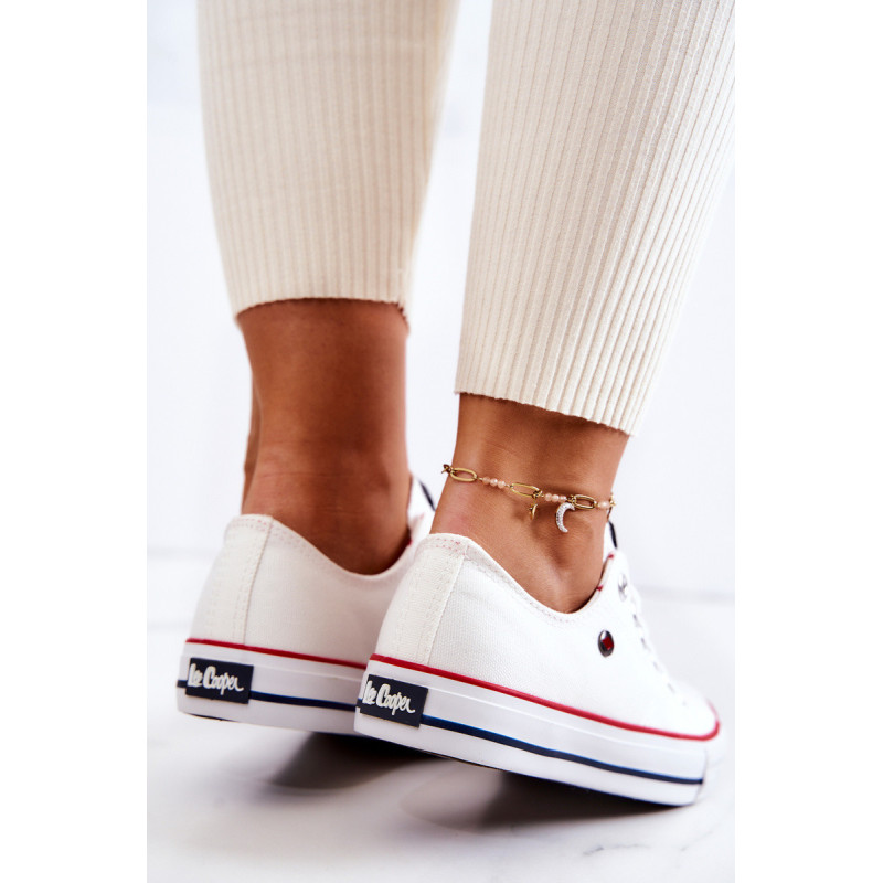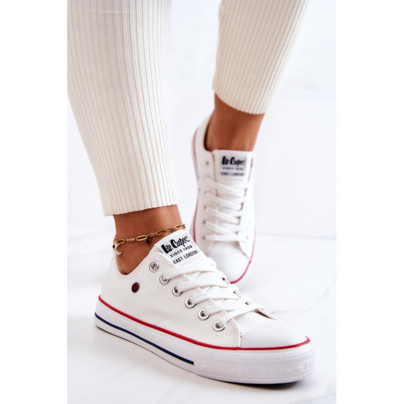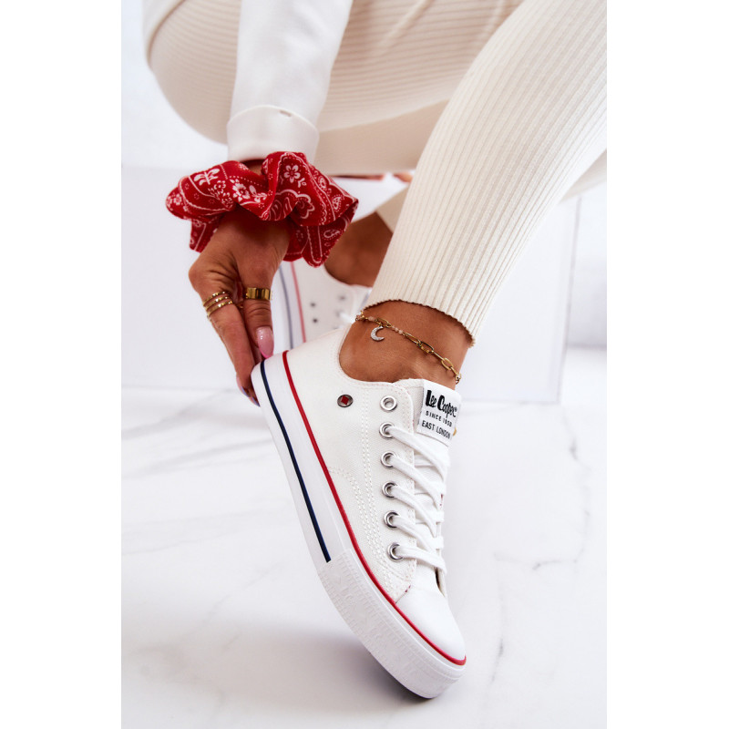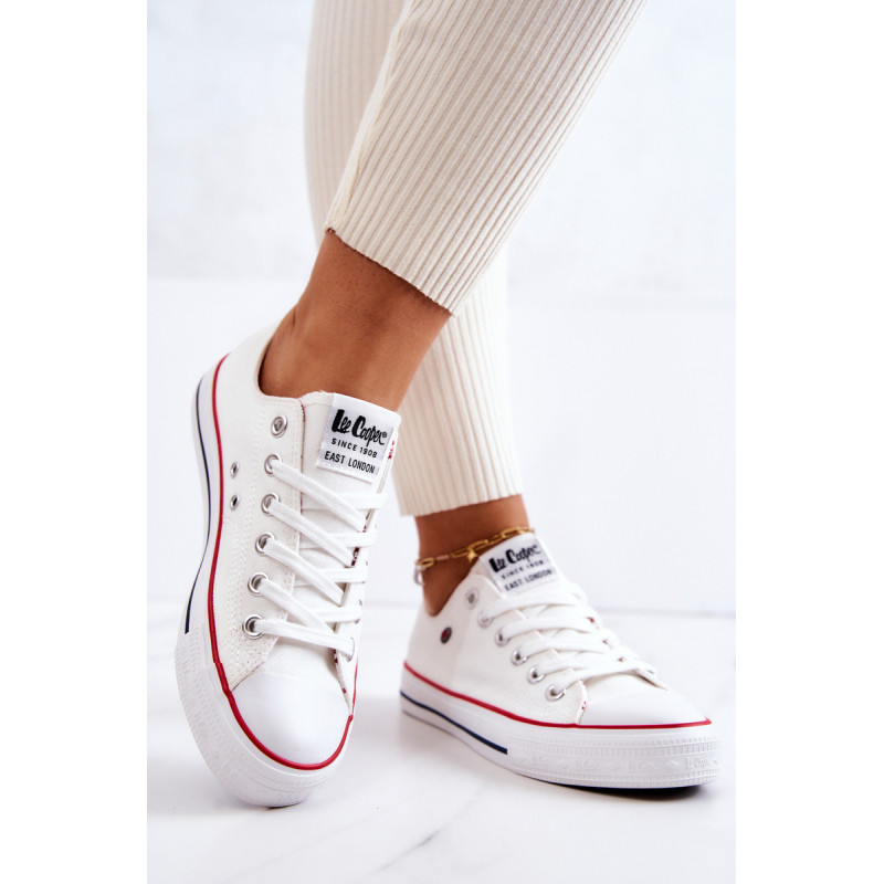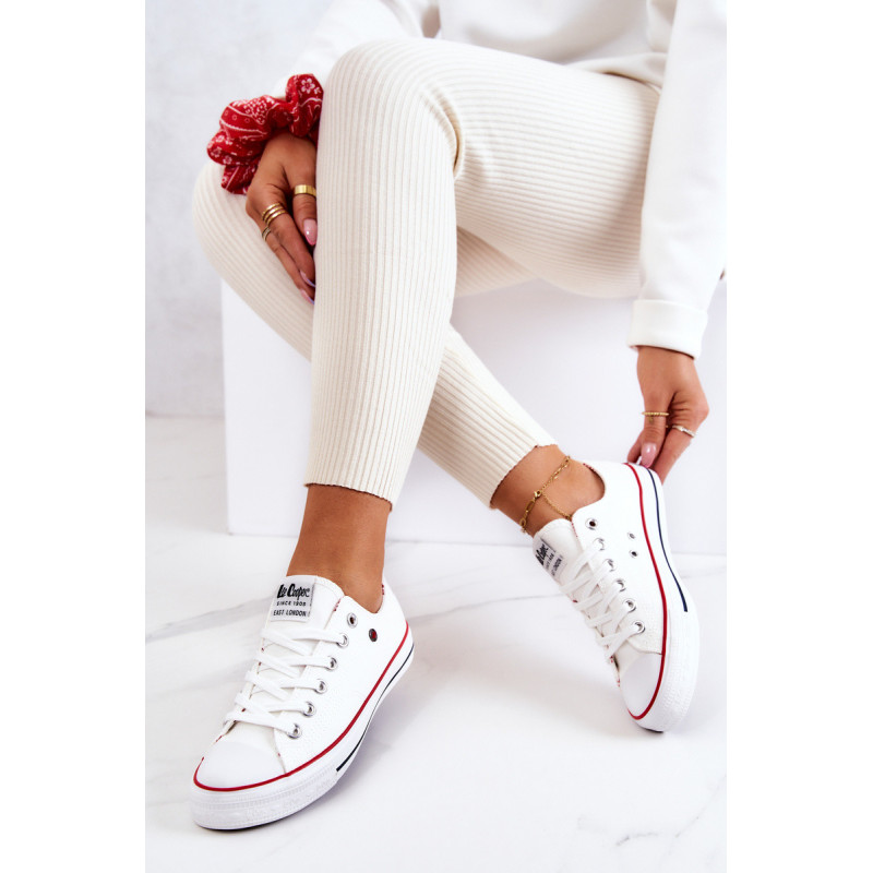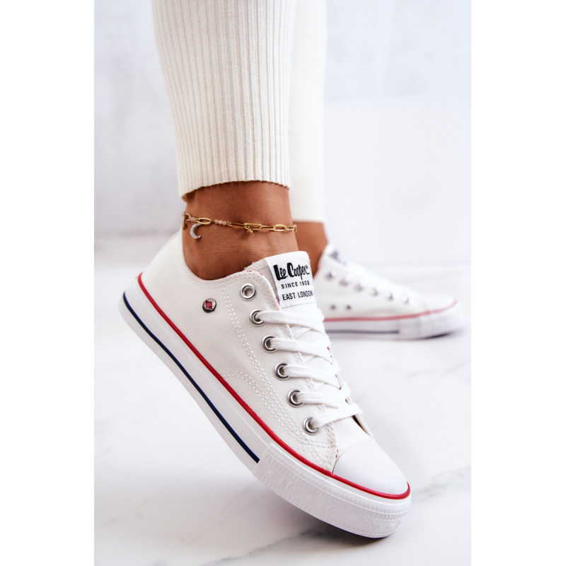 Moteriški Lee Cooper sportbačiai. Klasikinis modelis puikiai derės prie džinsų, bet ir prie erdvių suknelių. Batai turi minkštą, medžiaginį vidpadį ir neslidų padą. Surištas modelis. Pirštas sustiprintas guma. Būtinai peržiūrėkite visą mūsų Lee Cooper batų kolekciją. Renkantis dydį, naudokite dydžių lentelę.